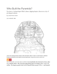 Who Built the Pyramids? Not slaves. Archeaologist Mark Lehner, digging deeper, discovers a city of privileged workers. by JONATHAN SHAW JULY-AUGUST 2003 Lehner’s front photogrammetric elevation of the Great Sphinx. Below: As seen in a north elevation, weathered limestone and bedrock form the Sphinx’s head and upper body. Photogrammetric elevations by Mark Lehner rise inexplicably from the desert at Giza, relics of a vanished culture. They dwarf the approaching sprawl of modern Cairo, a city of 16 million. The largest pyramid, built for the Pharaoh Khufu around 2530 B.C. and intended THE PYRAMIDS AND THE GREAT SPHINX to last an eternity, was until early in the twentieth century the biggest building on the planet. To raise it, laborers moved into position six and a half million tons of stone— some in blocks as large as nine tons—with nothing but wood and rope. During the last 4,500 years, the pyramids have drawn every kind of admiration and interest, ranging in ancient times from religious worship to grave robbery, and, in the modern era, from NewAge claims for healing "pyramid power" to pseudoscientific searches by "fantastic archaeologists" seeking hidden chambers or signs of alien visitations to Earth. As feats of engineering or testaments to the decades-long labor of tens of thousands, they have awed even the most sober observers. Lehner maps a site Photographs by John Broughton The question of who labored to build them, and why, has long been part of their fascination. Rooted firmly in the popular imagination is the idea that the pyramids were built by slaves serving a merciless pharaoh. This notion of a vast slave class in Egypt originated in Judeo-Christian tradition and has been popularized by Hollywood productions like Cecil B. De Mille's The Ten Commandments, in which a captive people labor in the scorching sun beneath the whips of pharaoh's overseers. But graffiti from inside the Giza monuments themselves have long suggested something very different. Until recently, however, the fabulous art and gold treasures of pharaohs like Tutankhamen have overshadowed the efforts of scientific archaeologists to understand how human forces—perhaps all levels of Egyptian society—were mobilized to enable the construction of the pyramids. Now, drawing on diverse strands of evidence, from geological history to analysis of living arrangements, bread-making technology, and animal remains, Egyptologist Mark Lehner, an associate of Harvard's Semitic Museum, is beginning to fashion an answer. He has found the city of the pyramid builders. They were not slaves. as a year-abroad student in 1973," he says, "...and ended up staying for 13 years." His way was paid by a foundation that believed a hall of records would be found beneath the paws of the Sphinx. Young Lehner, a minister's son from North Dakota, hoped to discover if that was true. But the more time he spent actually studying the Sphinx, the more he became convinced that the quest was misguided, and he exchanged its fantasies for a life grounded in archaeological study of the Giza plateau and its monuments. "I FIRST WENT TO EGY PT Lehner works fast to document features briefly exposed by modern construction projects. Photographs by John Broughton Actually, he became, in the words of one employer, an "archaeological bum" who soon found work all over Egypt with German, French, Egyptian, British, and American expeditions. "At the end of these digs, there were lots of maps and drawings left to be done," he adds—steady work once the short dig season was over. Lehner discovered he had a knack for drafting, and got his first lessons in mapping and technical drawing from a German expert. "I fell in love with it," he confesses. His first big break came in 1977, when the Stanford Research Institute conducted a remote sensing project at the Sphinx and the pyramids— a search for cavities using noninvasive technologies. The Sphinx is carved directly from the sedimentary rock at Giza, and sits below the surface of the surrounding plateau. Lehner was put in charge of a group of men cleaning out the U-shaped, cut-rock ditch that surrounds the monument, so that the sensing equipment could be brought in. In order to plot the locations of any anomalies, the largest existing surface maps of the Sphinx—about the length of an index finger—were enlarged and found to be extremely inaccurate. By then a seasoned mapper, Lehner asked the director of the American Research Center in Egypt (ARCE, a consortium of institutions including museums and universities such as Harvard) if they would sponsor his effort to map the Sphinx. But Lehner, despite his experience in the field, didn't have a Ph.D. Running his own "dig" appeared to be out of the question until ARCE assistant director James Allen, an Egyptologist from the University of Chicago, essentially adopted Lehner professionally, took him under the wing of his own Ph.D., and designed a mapping project. The German Archaeological Institute loaned photogrammetric equipment, the sort used by highway departments for taking highly accurate stereoscopic photographs from the air, and Lehner soon produced the first scale drawings of the Sphinx, which are now on display at the Semitic Museum. During the mapping, Lehner's close scrutiny of the Sphinx's worn and patched surface led him to wonder what archaeological secrets it might divulge. "There are layers of restoration masonry going back all the way to pharaonic times," he says, indicating that even then, "the Sphinx was severely weathered." What Lehner saw, in essence, was an archaeological site, in plain view, that had never been described. A workman pulls an intact breadpot, or bedja, from an ancient compartment built into a wall. Bedja came in three standard sizes; this is an example of the largest. Photographs by Mark Lehner To better understand the differential weathering in the natural layers of rock from which the Sphinx is cut, Lehner initially consult