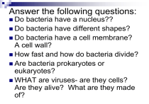 Characteristics of bacteria: