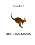 KILLEEN JROTC HANDBOOK 0 JROTC HANDBOOK INDEX SECTION SUBJECT PAGE I General 4 II Cadet Administration and Organization 4 III Cadet Appointments, Promotions and Reductions 7 IV Conduct and Military Courtesy 9 V Discipline 11 VI Awards and Decorations 11 VII Appearance, Uniforms, and Equipment 18 VIII Extracurricular Activities 20 IX Merit and Demerit Program 1 Welcome to the Corps of Cadets. The Junior Reserve Officers Training Corps program provides you with an opportunity for total personal development with an emphasis upon the principles and techniques of leadership. The learning experience in JROTC compliments your other academic studies and will be useful to you in any future career. There are many important lessons you must learn as you prepare to take your place in the world. One of the most important is the true meaning of the American way of life and why millions have freely defended its’ ideals and principles with their lives, their fortunes, and their honor. Through a close relationship with the JROTC instructors, you will learn, firsthand, of our heritage and your responsibilities in maintaining and preserving the freedom we enjoy. Second, you will learn self discipline – an indispensable ingredient of success which involves self-control and a sense of personal responsibility that goes beyond the threat of punishment or mere obedience. Third, you will learn to accept responsibility, not only for your own actions, but also the actions of other cadets for whom you are responsible. Finally, and most importantly, you will learn and practice leadership. You have inherited a great challenge by joining the JROTC program. You will be judged by your attitude, actions and achievements. You are expected to perform every task as faithfully and conscientiously as you would expect it from others. Your actions in the classroom, on campus and in the community, particularly when in uniform, will be observed and evaluated by others. You must set the best possible example. You should manage your time so that it is properly applied between study and recreation. The instructor staff is always available to assist you. My office is always open to you. Welcome to the “Roo” Battalion. Prove by your actions that JROTC is where leaders are made. Your morality, loyalty, integrity and sense of responsibility must be above reproach. I encourage you to work hard and take maximum advantage of the many opportunities available through JROTC. This handbook outlines some of the regulations and procedures by which the Corps of Cadets of Killeen High School operates. These regulations are effective upon receipt for implementation and compliance by all concerned. I wish you the best this school year. JOHN L. STANLEY LIEUTENANT COLONEL (RET), US ARMY SENIOR ARMY INSTRUCTOR 2 MISSION STATEMENT To motivate young people to become better citizens. OBJECTIVES Provide course offerings designed to develop in each cadet – 1. 2. 3. 4. 5. 6. Good citizenship and patriotism. Self-reliance, leadership, and responsiveness to constituted authority. Ability to communicate effectively, both orally and in writing. Appreciation of the importance of physical fitness. Appreciation of the role of the US Army in support of national objectives. Knowledge of basic military skills. SECTION I - GENERAL 1-1 Purpose. To outline those regulations that are necessary for the organization and function of the Corps of Cadets of Killeen High School. 1-2 Objective. Provide the military department, institutional authorities, and each cadet an up-to-date reference of those regulations necessary to the operation of the activities of the Corps of Cadets. 1-3 Organization. The Corps of Cadets is organized along the lines of an Army battalion with modifications as necessary to provide for maximum number of leadership positions. SECTION II - CADET ADMINISTRATION AND ORGANIZATION 2-1 CONDITION FOR ENROLLMENT: Enrollment of all students in the Junior ROTC Program will be in accordance with the provisions of Cadet Command Regulation 145-2. 2-2 ENROLLMENT: a. Qualified students will be enrolled as LET-1 cadets unless they can present satisfactory proof of completion of prior JROTC training. b. As a prerequisite for enrollment in LET-2, 3, or 4, a cadet must have satisfactorily completed the previous LET level of training. Successful completion of the first semester of LET 1 is considered completion of LET 1. 2-3 CREDIT FOR JROTC TRAINING/GRADING PLAN. Pursuant to the authority of Killeen High School, ½ credit will be awarded for satisfactory completion of each 18-week session of military training. Grading will be based op the KHS grading plan approved grading plan. Eighty percent (80%) of the cadet’s grade will be based upon results of appearance, written assignments, subject material, leadership and participation. Twenty percent (20%) will be based upon the 18 week examination. Cadets who fail to wear their uniform for the weekly in ranks inspection will be given a grade of zero. Cadets who are absent from school due to illness or other official events will wear their uniform on the day they return to school. Cadets who are suspended or placed in ISS/TOR on Wednesday will coordinate with their instructor for inspection or receive a grade of 0. 3 2-4 ORGANIZATION OF THE CORPS OF CADETS. The Killeen High School JROTC unit will be organized as follows: a. The unit will be designated as a battalion. b. The battalion will be organized as follows: (1) (2) (3) (4) (5) One company representing each class period. Color Guard (Male, Female, and Coed). Drill Teams (Armed and Non-Service Weapon). Rifle Team (COED). Physical Fitness Team (Male, Female, and COED). c. Each company will consist of a company headquarters (CO, XO, First Sergeant, Guidon Bearer) and as many platoons as required. d. Each platoon will consist of a platoon headquarters (Platoon Leader, Platoon Sergeant) and not more than four squads. The desired number in a squad is six; however, the 