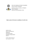 OTTO-VON-GUERICKE-UNIVERSITY MAGDEBURG Faculty of Economics & Management DONETSK NATIONAL TECHNICAL UNIVERSITY Faculty of Management Department of International Business Activity Bank system of Ukraine in conditions of world crisis Selyshchev Kyrylo 50 years of the USSR 143A/37 83100 Donetsk International Economics Specialisation "European Studies" Semester: 3 E-Mail: n1416@matrixhome.net Date of submission: 17.10.2010 Table of content Abbreviations............................................................................................ III Abstract ...................................................................................................... IV 1. Introduction ............................................................................................. 1 2. Stages of a banking crisis in Ukraine .................................................... 3 2.1 I stage. The beginning of the banking crisis. End of September October 2008 ............................................................................................ 3 2.2 II stage of the banking crisis. November-December 2008 ............. 4 2.3 III stage of the banking crisis. January-February 2009 ................ 4 2.4. IV stage of the banking crisis. March-June 2009.. ........................ 5 2.5 V stage of the banking crisis. July - August 2009 ........................... 6 3. Stabilization policies of the banking system of Ukraine during the financial crisis .............................................................................................. 7 4. Improvement of the Ukrainian banking system and its exit from the crisis............................................................................................................10 5. Conclusion. The future of the banking system of Ukraine, forecasts and fears.....................................................................................................14 References .................................................................................................. 18 II Abbreviations AUB Association of Ukrainian Banks bn. Billion GDP Gross Domestic Product JSC Joint Stock Company NBU National Bank of Ukraine UAH. Hryvnia III Abstract This paper describes the stages of a banking crisis in Ukraine during the financial crisis beginning in late September 2008 and ending August 2009. The mechanisms of stabilization of the banking system of Ukraine during the financial crisis. Discusses ways to improve the banking system and out of the crisis. The last section shows the future of the banking system of Ukraine. Keywords: banking system, the global financial crisis, stabilization mechanisms, the banks. IV 1. Introduction In the first half of 2007, the local mortgage market crisis began in the U.S. and very quickly transformed into a national financial crisis, including a banking crisis. In mid2008 grew into a global crisis. What was this? A meltdown in financial markets, the bankruptcy of leading banks in most developed countries, reducing the liquidity of banks and economies of most countries, caused by the rapid outflow of capital from countries that are developing, a decline in foreign investment and the devaluation of national currencies. The further deepening financial crisis, in order to further strengthen its impact on the real sector of the global economy, which produced up to a collapse in demand and prices, as well as unemployment, bankruptcy of mass campaigns, including the presenters. Not gone unnoticed and Ukrainian banks. The global financial crisis has not taken in the real sector and the Ukrainian banks side, which over the high openness of national economies have become too dependent on processes in global markets. The banking system of Ukraine was not ready to test the financial crisis. Before the global crisis, financial analysts gave a positive assessment, as happened the other way around. Has been developed and long-term vision of the banking system of Ukraine, and this despite the fact that in its formation, it is experiencing the third wave decline. Many scientific publications related to the question about the problems of Ukraine's banking system amid the global financial crisis. 1 Ensuring the stability of the banking system is the main guarantee of the effectiveness of counter possible negative effects of the global financial crisis. Analyze the state of the banking system needed in complex with the entire financial system. The financial health of the state as a whole - is the main factor for our business. In a crisis, the banking system in the public mind has lost status as the main engine of the economy. You can talk about a lot of problems that have accumulated in the banking sector: the large and small banks, the short-term liabilities, distressed assets, imperfect methods, obsolete products and much more. To increase the stability of banking systems should quickly establish a new reserve currency, albeit not as global as the dollar, but also capable of protecting the banks from the impact of the crisis. 2 2. Stages of a banking crisis in Ukraine 2.1 I stage. The beginning of the banking crisis. End of September - October 2008 The banking crisis in Ukraine began by raiders' attacks on Prominvestbank. From this bank had a run of money at first - legal entities, but after a while, and physical. If the National Bank of Ukraine has not entered a temporary administration in Prominvestbank, it would be declared bankrupt. But this did not happen. The Bank continued to function, due to the emergence of a new investor. They became Vneshneekonombank Russia. After five months of interim administration in the bank ceased its operation. But she did a lot of effective measures, such as full control over the bank's payment system, implementation of liquidity management, the new wage system. With these activities Prominvestbank back the confidence of customers. In early October, with the liquidity problem facing the bank "Nadra". He was unable to pay 