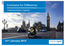 Contracts for Difference Implementation Update 21st January 2015 Welcome, Agenda and Safety 2 Agenda CfD Round 1 Progress and Timeline CfD Allocation Overview Sealed Bids Rules & Form Demo Applicant Processes (Submit & Withdrawals) CfD Contract Signing Process CfD Contract Management LCCC Key Contacts Q&A & Close 121 discussions Contracts for Difference Round 1 Progress and Timeline John Perkins CfD Manager 1. PreApplication Activities 2. Application Applicants 3. Qualification 4. Review 5. Appeal 6. Valuation Request Review Apply 7. Sealed Bids 8. Allocation & Independent Audit 9. Allocation Notification Request Appeal Round Variation / Budget Revision Notices Assess Eligibility RO Check Review Qualified Applicants Appeal 5 1. PreApplication Activities 2. Application 3. Qualification 4. Review 5. Appeal Applicants 6. Valuation 7. Sealed Bids 8. Allocation & Independent Audit 9. Allocation Notification Submit Sealed bids if requested Round Variation / Budget Revision Notices Value qualified applicants Request sealed bids if required Allocation & Independent Audit 6 Applicant Options in a Bid Window Submit Sealed Bids • Defaults to single bid as per original application if none submitted • Note: Potential NDD policy impacts Withdraw Sealed Bids • Ability to submit new sealed bids • Default as above Withdraw Application • Note: Impact on Eligibility for Renewables Obligation 7 1. PreApplication Activities 2. Application 3. Qualification 4. Review 5. Appeal 6. Valuation 7. Sealed Bids Applicants 8. Allocation & Independent Audit 9. Allocation Notification Contract Signature Allocation Reports Review CfD Notification Appeals Register Issue Contract s CfD Register 8 Expected Key Dates Process Step Date DB Notice to SOS SOS Budget Review Auction Notice Sealed Bid Submission 20-Jan 21-27 Jan 28-Jan 29 Jan - 4 Feb Allocation SOS review CFD Notification LCCC prepare Contracts 5-20 Feb 23 & 24 Feb 26 Feb 27 Feb - 12 Mar Contract Signature 13-27 Mar National Grid Contact Details ' Phone: 01926 655300 (calls recorded on this number) * Email: emr@nationalgrid.com website: www.emrdeliverybody.com 10 Contracts for Difference Allocation Rules Yasharn Smith EMR Delivery Manager CfD – Competitive Allocation Principles Used to identify Successful applicants and Strike Prices Years can close independently Allocation in ascending price order (across years) Minimum allocated first Sealed bid process (includes bidder flexibility) Each delivery year has a separate clearing price Triggered by breach of Budget 12 When is an Auction Required Illustration only AUCTION REQUIRED NO AUCTION REQUIRED 13 Budget Notice £m 11/12 prices 15/16 16/17 17/18 18/19 19/20 20/21 Pot 1 (established) 50 65 65 65 65 65 Pot 2 (less established) 0 155 235 235 235 235 Pot 3 (biomass) 0 0 0 0 0 0 Total 50 220 300 300 300 300 Maximum amounts consumers would be expected to fund in each year Conversion factor to translate budget to 2012 prices : 1.0195 CfD Allocation – General Principles Budget Rule • Pot /Budget (Cannot Be Exceeded Except for Pending Projects) • Only competitive where binding constraint (E.g. MIN capacity/Pot Budget) Constraint Across Years Bids/ Prices Pay as Cleared • All projects in same Pot will compete on strike price basis, regardless of delivery year. • Years can close independently • Projects will be awarded in order of lowest to highest strike price • Sealed bid process (includes bidder flexibility) • Clearing Price set by most expensive successful project in each year (subject to cap at the Technology Admin Strike price). Project SP Bid Del Yr MW A2 115 16/17 43 K1 113 18/19 700 G3 112 18/19 5 C2 108 17/18 28 A1 105 15/16 47 C1 105 17/18 38 D6 97 16/17 42 D1 94 16/17 80 H4 93 17/18 35 B2 92 16/17 50 F2 90 17/18 80 E1 88 16/17 63 B7 85 15/16 50 Bids are assessed in order of strike price bid (cheapest first) . If they fit the budget profile after clearing consideration, they are accepted. Close Year A2 K1 Close Year Tiebreak with A1 & C1 G3 C2 Strike Price Bids Flexible Bids- Increasing Price CfD Allocation – Flexible Bids A1 Next cheapest bid is for same project Budget would be exceeded in 16/17 Same Commissioning Year Flexibility B7 If a bid is successful, remove from stack all other bids relating to same project 15/16 C1 Reject all other bids for 16/17 Close Year D6 D1 A1 uses budget best in final year H4 B2 E1 16/17 F2 17/18 18/19 CfD Allocations – Tiebreaker Rules Tie-breaker rules applies where 2 or more projects with the same strike price bid, both cannot be awarded a CfD without exceeding budget limits Confirm projects with same S.P would exceed budget Assess all combination of tied projects which exceeds budget Consider other flex bids for unsuccessful projects Remove other flex bids for successful projects Choose combination of projects which best uses budget For further ties – Random number generator is to be used Contracts for Difference Sealed Bids Giampaolo Panizio EMR CfD - Commercial Analyst Sealed Bids – Relevant Material Sealed Bid Submission User Guide is available on the Delivery Body Portal https://www.emrdeliverybody. com/Pages/AnnouncementDes cription.aspx?CID=98 Sealed Bids Submission Rules General Detail Submit combination of different bid price, capacity, TCW, & TCD No bids above the ASP Max 10 Bids per project No more than 3 bids for the same Delivery Year (DY) No two bids can have the same price Must be same DY or later than original application No bids accepted after window closes Must be same capacity or less than original application TCD must fall within the TCW Relevant ASP is used if no bids are submitted Lowest price in each DY expressed to nearest whole pence (e.g. £100.01) All other bids (except for lowest in each DY) expressed to nearest 0.1 pence (i.e. £100.011) Only 1 Sealed Bid can have the same first DY and capacity as original application For AD, Hydro, Onshore, Solar projects the bid capacity must be > 5 MW Bids must be in 2012 price