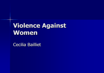 Violence Against Women Cecilia Bailliet UN Special Rapporteur on Violence against Women The Universal phenomenon of violence against women is the result of ”historically unequal power relations between men and women, which have led to domination over and discrimination against women by men and to the prevention of women’s full advancement” CEDAW Gen Rec. # 19 Lack of economic independence forces many women to stay in violent relationships, unable to divorce and maintain custody of children Costa Rica, Honduras, Uruguay and Brazil have laws on economic violence: aggressor wipes out the victim’s economic means of subsistence or property UN Declaration on Violence against Women Article 1 For the purposes of this Declaration, the term "violence against women" means any act of gender-based violence that results in, or is likely to result in, physical, sexual or psychological harm or suffering to women, including threats of such acts, coercion or arbitrary deprivation of liberty, whether occurring in public or in private life. UN Declaration on Violence Against Women Article 2 Violence against women shall be understood to encompass, but not be limited to, the following: (a) Physical, sexual and psychological violence occurring in the family, including battering, sexual abuse of female children in the household, dowry-related violence, marital rape, female genital mutilation and other traditional practices harmful to women, non-spousal violence and violence related to exploitation; (b) Physical, sexual and psychological violence occurring within the general community, including rape, sexual abuse, sexual harassment and intimidation at work, in educational institutions and elsewhere, trafficking in women and forced prostitution; (c) Physical, sexual and psychological violence perpetrated or condoned by the State, wherever it occurs. Article 3 Women are entitled to the equal enjoyment and protection of all human rights and fundamental freedoms in the political, economic, social, cultural, civil or any other field. These rights include, inter alia: (a) The right to life; (b) The right to equality; (c) The right to liberty and security of person; (d) The right to equal protection under the law; (e) The right to be free from all forms of discrimination; (f) The right to the highest standard attainable of physical and mental health; (g) The right to just and favourable conditions of work; (h) The right not to be subjected to torture, or other cruel, inhuman or degrading treatment or punishment. Article 4 States should condemn violence against women and should not invoke any custom, tradition or religious consideration to avoid their obligations with respect to its elimination. States should pursue by all appropriate means and without delay a policy of eliminating violence Inter-American Convention on the Prevention, Punishment and Eradication of Violence Against Women (Convention of Belem do Para) Article 2: Violence against women shall be understood to include physical, sexual and psychological violence: that occurs within the family or domestic unit or within any other interpersonal relationship, whether or not the perpetrator shares or has shared the same residence with the women, including, among others, rape, battery and sexual abuse, that occurs in the community and is perpetrated by any person, including, among others, rape, sexual abuse, torture, trafficking in persons, forced prostitution, kidnapping and sexual harassment in the workplace, as well as in educational institutions, health facilities or any other place; and that is perpetrated or condoned by the state or its agents regardless of where it occurs. Article 3 Every woman has the right to be free from violence in both the public and the private spheres. Article 4 Right to life Physical, Mental and Moral integrity respected Personal liberty and security Right not to be subjected to torture Inherent dignity of her person and protection of family Equal protection before the law and of the law Simple and prompt recourse to a competent court for protection against acts that violate her rights Right to associate freely Freedom of religion and beliefs within the law Equal access to public service¨ Protocol to the African Charter on Human and Peoples’ Rights on the Rights of Women in Africa Article 1 (j) Violence against women means all acts perpetrated against women which cause or could cause them physical, sexual, psychological, and economic harm, including the threat to take such acts; or to undertake the imposition of arbitrary restrictions on or deprivation of fundamental freedoms in private or public life in peacetime and during situations of armed conflicts or of war. Art 3 (4) States parties shall protect women from all forms of violence, particularly sexual and verbal violence Art 4 (2) State parties shall take appropriate and effective measures to enact and enforce laws to prohibit all forms of violence against women including unwanted or forced sex whether the violence takes place in private or public Art 11 States parties undertake to protect asylum seeking women, refugees, returnees and internally displaced persons, against all forms of violence, rape and other forms of sexual exploitation, and to ensure that such acts are considered war crimes, genocide, and/or crimes against humanity and that their perpetrators are brought to justice before a competent jurisdiction. Context of Social Discrimination Gender: Subordinate role in family and community, women define themselves through their relation with a dominant man, family (including other women, uphold norms of conduct upon the woman). Victim blames man’s violent childhood, substance abuse, etc. for violence, not socially imposed codes of behaviour. Ethnicity Socio-Economic Status: high correlation between poverty and violence Migrant/Displaced Status Rural status Lack of education as pertaining human rights and protection procedures, Fear of social stigmatization 