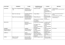 WEBSITE (EUROPE) http://www.europeansociology .org/ EUROPEAN SOCIOLOGICAL ASSOCIATION Carmen Leccardi http://www.iisoc.org/ INTERNATIONAL INSTITUTE OF SOCIOLOGY INTERNATIONAL SOCIOLOGICAL ASSOCIATION Craig Calhoun http://www.isa-sociology.org/ NAME CHAIRPERSON and/or CONTACT PERSON COUNTRY (BALKAN) BALKAN SOCIOLOGICAL FORUM (NORDIC SOCIOLOGICAL ASSOCIATION) NORDIC SOCIOLOGICAL ASSOCIATION (AFRICA) ARAB SOCIOLOGICAL ASSOCIATION (ASIA) http://www.apsasociology.org/ ASIA PACIFIC SOCIOLOGICAL ASSOCIATION Michael Burawoy E-MAIL carmen.leccardi@ unimib.it; gisele.tchindaesa@pouchet.cnrs .fr; c.calhoun@lse.ac. uk; info@iisoc.org; burawoy@berkel ey.edu; tuys@uj.ac.za Tina Uys (Vice President for National Associations) Svetla Koleva (President) svetlakoleva2002 @yahoo.com; Ali Pajaziti (Vice a.pajaziti@seeu.e President) du.mk; Jonida Lamaj (General bsocforum@gmai Secretary) l.com; Christofer Edling Christofer.Edling (Leader) @soc.lu.se; Lars-Erik Becken leb@proba.samfu (Secretary) nnsanalyse.no; Mohsen Bouazizi mohsen_bouazizi (Secretary General) @yahoo.fr Tahar Labib (Honorary tahar.labib@yaho President) o.fr Ruchira Ganguly-Scrase Ruchira.GangulyScrase@acu.edu.a u REVIEW 1. European Societies 2. European Journal of Cultural and Political Sociology 1. Annals of the International Institute of Sociology 2. International Review of Sociology 1. International Sociology 2. Current Sociology Acta Sociologica (LATIN AMERICA) http://www.alas.fsoc.uba.ar/ http://w3.aislf.univ-tlse2.fr/ ALBANIA www.instituti-sociologjise.al ANGOLA ARGENTINA http://aasociologia.wordpress.c om http://www.cps.org.ar ARMENIA www.asa.sci.am AUSTRALIA http://www.tasa.org.au ASOCIACIÓN LATINO AMERICANA DE SOCIOLOGÍA ASSOCIATION INTERNATIONALE DES SOCIOLOGUES DE LANGUE FRANÇAISE ALBSA (Albanian Sociological Association) SASO Sociedade Angolana de Sociologia Asociación Argentina de Sociología Consejo de Profesionales en Sociologia ASA Armenian Sociological Association TASA The Australian Sociological Association Marcelo Arnold Catalifau correoalas@gmail .com Didier Vrancken Didier.Vrancken @ulg.ac.be SociologieS Lekë Sokoli (President) lsokoli@hotmail. com; noramalaj@yaho o.com; afrimkrasniqi@g mail.com; victorkajibanga@ fcs.uan.ao Studime sociale (Social Studies) Horizontes Sociológicos. Revista de la Asociación Argentina de Sociología horizontessociologicos@gmail.com Ernesto Fernando Villanueva aliciaipalermo@g mail.com Asociacionargenti nadesociologia@ yahoo.com.ar presidencia@cps. org.ar; Gevorg Poghosyan gevork@sci.am; Jo Lindsay (President) jo.lindsay@mona sh.edu; admin@tasa.org.a u Nora Malaj (Vice President) Afrim Krasniqi (Vice President) Victor Kajibanga Alicia Itatí Palermo (President) Sally Daly (Executive officer) Revista Angolana de Sociologia RAS. Revista Argentina de Sociología revistasociologia@cps.org.ar 1. Journal of Sociology 2. Nexus 3. Health Sociology Review AUSTRIA http://www.oegs.ac.at AZERBAIJAN www.asa.internet.az BANGLADESH BELARUS BELGIUM BRAZIL ÖGS Österreichische Gesellschaft für Soziologie ASA Azerbaijanian Sociological Association www.bsabd.org/# Bangladesh Sociological Associaton http://socio.bas-net.by Belarusian Sociological Association www.sociologie.be VVS Vlaamse Vereniging voor Sociologie (Flemish Sociological Association) http://www.sbsociologia.com.b Sociedade Brasileira r de Sociologia BULGARIA http://www.bsa-bg.org Bulgarian Sociological Association CANADA www.csa-scs.ca The Canadian Sociological Association Helmut Staubmann (President) Alexander Bogner (Vice President) Katharina Scherke (Vice President) Rufat Guliyev Helmut.Staubman n@uibk.ac.at; Alexander.Bogne r@oeaw.ac.at; katharina.scherke @uni-graz.at; oegs@uibk.ac.at; azsocas@azdata.n et Österreichische Zeitschrift für Soziologie aminuls2000@ya hoo.com Yevgenii Mihailavic Babosov isst@socio.basnet.by Mieke van Houtte Mieke.VanHoutte @ugent.be Kurt.DeWit@do wb.kuleuven.be; Kurt De Wit (ViceChairman) Irlys Barreira (President) Luiz Lourenço (General Secretary) Mihail Mirchev Patrizia Albanese (President) ialencar21@uol.c om.br; luiz.lourenco@uo l.com.br; mihailmirchev@y ahoo.com; bulgariansociolog y@gmail.com palbanes@soc.rye rson.ca; president@csascs.ca; 1. Sociologias 2. Dados 3. Revista Brasileira de Ciências Sociais Sociological Problems Canadian Review of Sociology / Revue Canadienne de Sociologie CAPE VERDE CHILE CHINA COLOMBIA CROATIA Associaçâo CaboVerdiana de Sociologia http://www2.udec.cl/~sociowe Sociedad Chilena de b/schs Sociologia http://www.sociology.cass.cn/e Chinese Sociological nglish/Associations/CSA/ Association http://www.acsociologiacolom Asociación bia.org/asociacion.html Colombiana de Sociología http://www.hsd.hr/portal/index .php CYPRUS www.sociology.org.cy CZECH REPUBLIC http://www.ceskasociologicka. org DENMARK http://www.sociologi.dk Hrvatsko Sociološko Društvo (Croatian Sociological Association) Sinthesmos Koinoniologon Kyprou (Cyprus Sociological Association) MČSS Masarykova česká sociologická společnost (The Masaryk Czech Sociological Association) Dansk Sociologforenings Sherry Fox (Office Manager) Claudio Alves Furtado office@csascs.ca; cfurtado_98@yah oo.com; Eduardo Aquevedo socioweb@udec.c l; ios@cass.org.cn; Li Peilin Ana Lucia Paz (Vice President) Saša Božić (President) Jaka Primorac (Contact person) Constantinos Phellas Jiri Burianek (Chair) 1. Sociology Research 2. Youth Studies apazrueda@icesi. edu.co; asociacioncolomb ianasociologia@g mail.com; sasa.bozic@unizd .hr; sbozic@unizd.hr; jaka@irmo.hr; info@hsd.hr; phellas.c@unic.ac .cy; csa@unic.ac.cy; Revista de Sociología jiri.burianek@ff.c Sociologický časopis (Czech Sociological Review) Revija za Sociologiju uni.cz; Hynek Jerabek (Vice Chair) Martin D. Munk (Chairman) mcss@seznam.cz; mdm@dps.aau.dk ; apt@socsci.aau.d k; Dansk Sociologi ESTONIA http://www.sotsioloogia.ee ETHIOPIA www.essswa.org.et EUSKADI http://www.avsp.es/ FINLAND www.westermarck.fi www.sosiologia.fi http://www.afs-socio.fr FRANCE http://www.