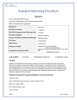 Standard Operating Procedure Styrene Print a copy and insert into your Laboratory Safety Manual and Chemical Hygiene Plan. Refer to instructions for assistance. Department: Chemistry Date SOP was written: 11/20/2012 Date SOP was approved by PI/lab supervisor: Principal Investigator: Richmond Sarpong Internal Lab Safety Coordinator/Lab Manager: Lab Phone: 1/13/2013 Rebecca Murphy 510-643-2485 Office Phone: 510-643-6312 Emergency Contact: Rebecca Murphy (510-643-2485) Location(s) covered by this SOP: Latimer 834, 836, 837, 838, 839, 842, 844, 847, 849, 907 (Name and Phone Number) (Building/Room Number) Type of SOP: ☐ Process ☒Hazardous Chemical ☐ Hazardous Class Purpose Styrene is a flammable liquid that is also an irritant, and should be treated with care by researchers. Styrene is a hazard due to peroxide initiation of polymerization. It is generally used as a monomer for radical polymerizations. This compound should be inspected prior to use for peroxide crystals that may have collected around the cap, on the inside, or on the outside of the bottle by a starch iodide test paper. Styrene should be in a secondary container labeled with “peroxide forming chemical,” and should be stored in a cabinet with the same label. Physical & Chemical Properties/Definition of Chemical Group CAS#: 100-42-5 Class: Flammable liquid, Carcinogen, Irritant, Peroxide Former Molecular Formula: C8H8 Form (physical state): Liquid Color: Colorless Styrene. 1 Date: 1/10/2013 Boiling point: 145 - 146 °C Flash Point: 31oC (88oF) Closed Cup Potential Hazards/Toxicity Acute toxicity Oral LD50 LD50 Oral - rat - 2,650 mg/kg Remarks: Behavioral:Somnolence (general depressed activity). Liver:Other changes. Inhalation LC50 LC50 Inhalation - rat - 4 h - 12,000 mg/m3 Skin corrosion/irritation Skin - rabbit - Skin irritation Serious eye damage/eye irritation Eyes - rabbit - Eye irritation - 24 h Germ cell mutagenicity Laboratory experiments have shown mutagenic effects. Cal-OSHA Permissible Exposure Limit (PEL): 50 ppm (210 mg/m 3) Engineering Controls NOTE: Lab-specific information on engineering controls may be included in the Protocol/Procedure section. Work with styrene should be conducted in a fume hood. Sash height should be kept low to avoid escaping fumes. Use explosion proof equipment like a blast shield to protect from explosions in the case of peroxide detonation. Personal Protective Equipment (PPE) NOTE: Lab-specific information on PPE selection may be included in the Protocol/Procedure section. Respiratory Protection NOTE: Lab personnel intending to use/wear a respirator mask must be trained and fit-tested by EH&S. This is a regulatory requirement. Respirators should be used only under any of the following circumstances: As a last line of defense (i.e., after engineering and administrative controls have been exhausted). When Permissible Exposure Limit (PEL) has exceeded or when there is a possibility that PEL will be exceeded. Regulations require the use of a respirator. An employer requires the use of a respirator. There is potential for harmful exposure due to an atmospheric contaminant (in the absence of PEL) As PPE in the event of a chemical spill clean-up process Styrene. 2 Date: 1/10/2013 Hand Protection Gloves must be worn with when handling peroxide-forming chemicals. Gloves must be inspected prior to use. Use proper glove removal technique (without touching glove's outer surface) to avoid skin contact with this product. Wash and dry hands. NOTE: Lab-specific and chemical-specific information on glove selection may be included in the Protocol/Procedure section. Refer to glove selection from the link below: For glove selection, go to: http://ehs.berkeley.edu/hs/63-laboratory-safety/94-glove-selection-andusage.html Eye Protection Safety glasses with side shields or tightly fitting safety goggles. Use goggles and face shield (8inch minimum) when appropriate. Only use equipment for eye protection tested and approved under appropriate government standards such as ANSI Z 87.1, NIOSH (US), or EN 166(EU). Skin and Body Protection Long pants, closed-toed and closed-heeled shoes, cotton-based clothing/attire (no exposed skin below waist), and flame resistant lab coat must be worn for protecting against chemical hazards. No exposed skin is allowed from waist down. Hygiene Measures Handle in accordance with good industrial hygiene and safety practice. Wash hands before breaks and at the end of workday. First Aid Procedures Notify supervisor and EH&S immediately. Follow up with a call to 510-642-9090 to report the incident. Refer to specific chemical SOPs and SDSs for specific first aid procedures. General First Aid Procedures If inhaled If breathed in, move person into fresh air. If not breathing, give artificial respiration. Immediately seek medical attention. In case of skin contact Remove contaminated clothing. Wash off with soap and plenty of water. Seek medical attention. Styrene. 3 Date: 1/10/2013 In case of eye contact Rinse thoroughly with plenty of water using an emergency eyewash station for at least 15 minutes and seek medical attention. If swallowed Do NOT induce vomiting unless directed otherwise by the SDS. Never give anything by mouth to an unconscious person. Rinse mouth with water. Seek medical attention. Special Handling and Storage Requirements NOTE: Laboratory-specific information on handling and storage may be included in the Protocol/Procedure section. Refer to specific chemical SOPs and SDSs for specific handling and storage requirements. Working alone Certain extremely hazardous operations should not be performed if the PI or Lab Safety Contact(s) are not present. Never work alone with extremely hazardous materials/operations. See the Protocol/Procedure section for specific prohibitions (if any) on working alone. Precautions for Safe Handling Avoid contact with skin and eyes. Avoid inhalation of vapor or mist. Keep away from sources of ignition No smoking. Take measures to prevent t