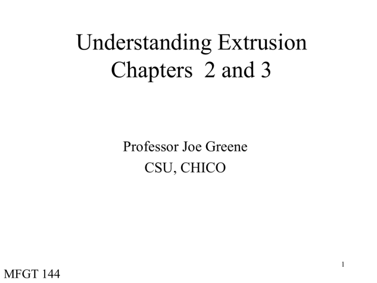 Understanding Extrusion Chapters 2 and 3 Professor Joe Greene CSU, CHICO 1 MFGT 144 Chapter 2: Instrumentation and Control and Extrusion Lines • Instrumentation – – – – One of the most essential elements of an extruder Measure important process parameters Window to the process Essential to troubleshoot problems 2 Instrumentation • Most Important Parameters – – – – – Melt Pressure Pressure Transducers Temperature Measurement Melt Temperature Measurement Barrel Temperature Measurement • Temperature Control – On-Off Control – Proportional Control – Fuzzy Logic Control 3 Most Important Parameters • Melt Pressure – Diehead pressure (pressure necessary to overcome resistance in die) determines the output of the extruder. – When diehead pressure changes with time, the output changes as do the dimensions of the product. • • • • Pressure Transducers Temperature Measurement Melt Temperature Measurement Barrel Temperature Measurement 4 Most Important Parameters • Melt Pressure – Diehead pressure (pressure necessary to overcome resistance in die) determines the output of the extruder. – When diehead pressure changes with time, the output changes as do the dimensions of the product. – Figure 2.1 5 Most Important Parameters • Pressure Transducers – Strain gauge and piezo-electric are most common – Strain gauge • Capillary or pushrod transducer • Two diaphragms, one in contact with the plastic melt and one some distance away (Fig 1.2). Connection is hydraulic in capillary and pushrod in the pushrod type. • Strain gauge is attached to the second diaphragm to measure the deflection which is related to the pressure at the first point. 6 Most Important Parameters • Temperature Measurement – Measured with a thermocouple • Type-Temp (TC)- when two dissimilar metals are connected there is a voltage generated between the metals. • Resistance temperature detector (RTD)- Resistance of metals changes with temperature. • Infrared detectors (IR)- objects emit radiation that changes with temperature. Used for surface temperature measurements. 7 Most Important Parameters • Melt Temperature Measurement – Measured with an immersion TC. Insulated probe protrudes into the melt andreads temperature at the point of the TC junction. – Figure 2.4 8 Most Important Parameters • Barrel Temperature Measurement – Measured with TC or RTD Sensors pressed into barrel – Influenced by thickness of metal sheath. Can cause error as well as air currents around the extruder – Figs. 2.5, 2.6, and 2.7 9 Most Important Parameters • Temperature Control • Maintains temperature based upon as preset value and an actual reading – On-Off Control • Power is either on or off. Provides poor control,+/-20C, Fig 2.8 – Proportional Control • Power is proportional to the temperature within a certain temperature region called the proportional band. Fig 2.9 • Temperature can be kept steady with the power level adjusting to keep temperature very close to preset value. • Proportional control (P-control) works well except when an upset occurs and the P-control is not able to change it • Proportional Control with Integrating Action (PI) can control it • Controller integrates the difference between the actual temp and 10 the setpoint and continues to act until the difference is zero. Most Important Parameters • Temperature Control • Maintains temperature based upon as preset value and an actual reading – Fuzzy Logic Control • New method is fuzzy logic control (FLC). • Artificial intelligence based technology designed to simulate human decision-making. • Requires generation of a knowledge base which identify – Process variables that are important in control – Membership functions for each variable, (H, M, L) – Fuzzy rules which define the knowledge of what to do about an observation based upon previous operating experience • FLC is being applied a number of times in injection molding. • FLC can outperform conventional PID control 11 Chap 3: Complete Extrusion Lines • • • • Tubing and Pipe Lines Film and Sheet Lines using the Roll Stack Process Film Lines Using Chill Roll Casting Combination of Materials – Coextrusion – Extrusion Coating – Extrusion Lamination • Blown Film Lines • Extrusion Compounding Lines • Profile Extrusion Lines 12 Complete Extrusion Lines • Tubing and Pipe Lines – Small diameter tubing (less than 10mm) is usually made with free extrusion process (No sizing unit) – Gear Pump may be used depending upon the precision – Internal air pressure of the tubing is controlled to achieve proper diameters of the tubing. – Diameter and wall thickness are functions of • extruder output, puller speed, and internal air pressure 13 Complete Extrusion Lines • Film and Sheet Lines using the Roll Stack Process – No real difference between flat film and sheet extrusion Can be wither roll-up or roll down process 14 Complete Extrusion Lines • Film and Sheet Lines using the Roll Stack Process 15 Complete Extrusion Lines • Film and Sheet Lines using the Roll Stack Process 16 Complete Extrusion Lines • Film Lines Using Chill Roll Casting – Thin films are often cast on a chill roll rather than extruded into a roll stack. – Initial contact is established with the use of a air knife which produces a thin stream of high velocity air across the roll that pushes the film against the roll. – Thickness gauge uses a scanning measurement head. – Surface treatment (flame or corona discharge treatment) is done to improve adhesion for printing or laminating. 17 Complete Extrusion Lines • Combination of Materials – Coextrusion • Combines two or more plastics through a single die – Feed block system- different plastics are combined in the feed block » Simple, inexpensive, and alloys many layers to be combined. » The materials must have similar flow properties to avoid distortion – Multi-manifo
