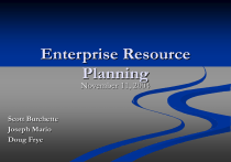 Enterprise Resource Planning November 11, 2004 Scott Burchette Joseph Mario Doug Frye Objectives 1. 2. 3. 4. 5. Convey an understanding of what ERP stands for and is. Understand the underlying benefits of ERP Understand the evolution of ERP. Recognize the major suppliers of ERP. Apply to real-world examples. Outline Introduction of ERP ERP Vendors What is ERP? History of ERP? Future of ERP? Description/Financial Customer Profile/Perceived Value Vendor Future Critical Success/Failure Factors Case Studies Oregon Health & Sciences University Nestle USA Monsanto What is ERP? Enterprise Resource Planning (ERP) is a packaged business software system that allows a company to automate and integrate the majority of its business processes, to share common data and practices across the entire enterprise, and to produce and access information in a real-time environment. Source: http://www.datainstincts.com/glossary.htm Example… Starting a Lemonade Stand. Inputs Process Outputs Lemonade Stand Source: http://www91.homepage.villanova.edu/william.wagner/MBA8556/erplec1.ppt Lemonade Business Process Get approval from parents Buy supplies Collect cash Make lemonade Set-up stand Advertise Find a good location Source: http://www91.homepage.villanova.edu/william.wagner/MBA8556/erplec1.ppt Lemonade Business Process Get approval from parents Is it feasible? Buy supplies What supplies do I need? Collect cash Am I making money? Make lemonade How much should I make? Set-up stand Advertise What should I sell it for? Find a good location Who am I selling to? Source: http://www91.homepage.villanova.edu/william.wagner/MBA8556/erplec1.ppt Business Partners Customers Friends Grocery Parents Source: http://www91.homepage.villanova.edu/william.wagner/MBA8556/erplec1.ppt In the Real World… Get approval from parents Buy supplies Make lemonade Advertise -Legal Issues -Suppliers -Inventory Control -Resource -Material Prices -Production -Advertising -Potential Market -Material Availability -Human Resource -Pricing Collect cash -Accounting -Financial Reporting Set-up stand Find a good location -Target Customer -Customer Relationships Source: http://www91.homepage.villanova.edu/william.wagner/MBA8556/erplec1.ppt Benefits of ERP What are the benefits of all the partners in this process having access to each other’s information in real-time……? -Single point of data entry -Accurate inventory management -Available vendor information -Pending purchasing information -Automatic data transfer and reconciliation -Accurate financial information ERP automates and integrates many of the tedious, common business practices. Source: http://www91.homepage.villanova.edu/william.wagner/MBA8556/erplec1.ppt ERP In Practice… Source: www.freequality.org/beta%20freequal/fq%20web%20site/ training/EnterpriseResourcePlanning2%5B1%5D.ppt Risks of ERP Survey of 600 companies(1) 57% finished 10% - 30% or more over budget 3% finished 10% to 30% under budget 45% took 10% - 30% or more time than planned to implement W.W. Grainger Inc(2) Experienced “substantial systems and transaction processing disruptions” that caused losses of $.24/share Stock dropped 2%/$100M in market value on the earnings announcement Hewlett-Packard Inc(3) $400M 3Q 2004 loss blamed on “Poorly executed” migration Hershey Foods Corp(2) Delayed customer order processing costing sales during Halloween Whirlpool Corp(2) Poor implementation led to series of shipment delays to customers (1) The Controller’s Report. New York: May 2004., Iss. 5; pg. 7, 1 pgs (2) James P. Miller. Wall Street Journal. (Eastern Edition). New York, N.Y.: Jan 10, 2000. pg. C.12 (3) Patrick Thibodeau, Don Tennant. Computerworld. Framingham: Sep 27, 2004. Vol.38, Iss. 39; pg. 14, 1pgs History Of ERP MRP Mathematical Programming techniques focused on planning 1920’s Inventory and time reduction with new production planning systems 1960/70’s MRP II Greater reduction due to integration with accounting and HR systems 1980’s ERP ERP II Focused on clients. Real time transactions. Asset management. 1990’s Optimizing the whole business network; including suppliers and clients. 2000’s Source: http://www.e-innovation.org/presentations/kick-off/mrp-erp.ppt History Of ERP 1. Manual Intensive 3. Non-Collaborative 2. Not real-time 4. Multiple Application Source: http://webprofesores.iese.edu/valor/Docs/EMBA/intro%20ERPS.pdf History Of ERP 1. Automated 3. Collaborate 2. Real-time 4. Single Application Source: http://webprofesores.iese.edu/valor/Docs/EMBA/intro%20ERPS.pdf Future Of ERP Enterprise Resource Planning II Shift from enterprise optimization to value chain/ecommerce. Manufacturing & distribution to all sectors/segments. Manufacturing, sales/distribution and finance processes to cross-industry, industry sector and specific industry processes. Source: http://webprofesores.iese.edu/valor/Docs/EMBA/intro%20ERPS.pdf Future Of ERP Enterprise Resource Planning II Shift from internal/hidden process to externally connected. Web-aware to web-based. Internally generated and consumed to internally and externally published and subscribed. Source: http://webprofesores.iese.edu/valor/Docs/EMBA/intro%20ERPS.pdf ERP Vendors SAP Oracle PeopleSoft/JD Edwards ERP Vendors SAP Stock Symbol: SAP “SAP is the world's largest inter-enterprise software company and the world's third-largest independent software supplier overall” Founded in 1972 – Headquartered in Waldorf, Germany 30,000 employees in 50 countries Known For: mySAP Business Suite open and flexible, supporting databases, applications, operating systems, and hardware from almost every major vendor Source: http://www.sap.com mySAP Business Suite Source: http://www.sap.com mySAP Business Suite Source: http://www.sap.com ERP Vendors Oracle Stock Symbol: ORCL “Our goal is to make sure that you spend less money on your systems while getting the most up-to-date and accurate information from them” Founded in 1979 – Headquartered in California 40,000 emp