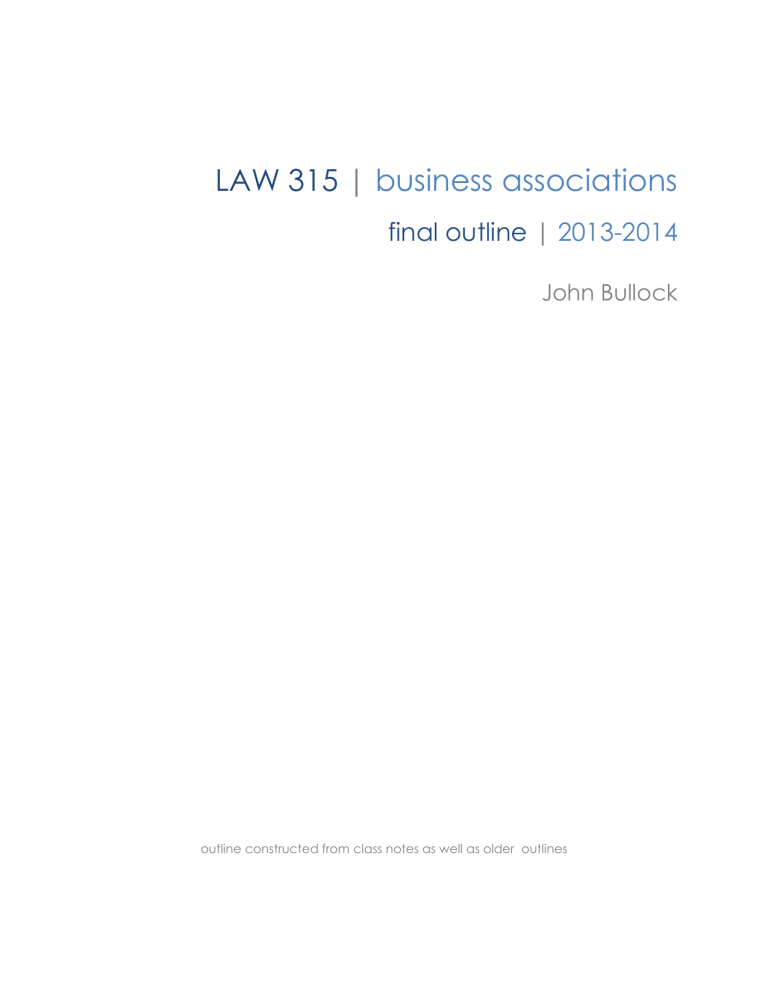 Business Associations o Shareholders have a large stake, more incentive to be involved; separation of ownership and control problem not as severe; and, there is a desire to control who one is in business with