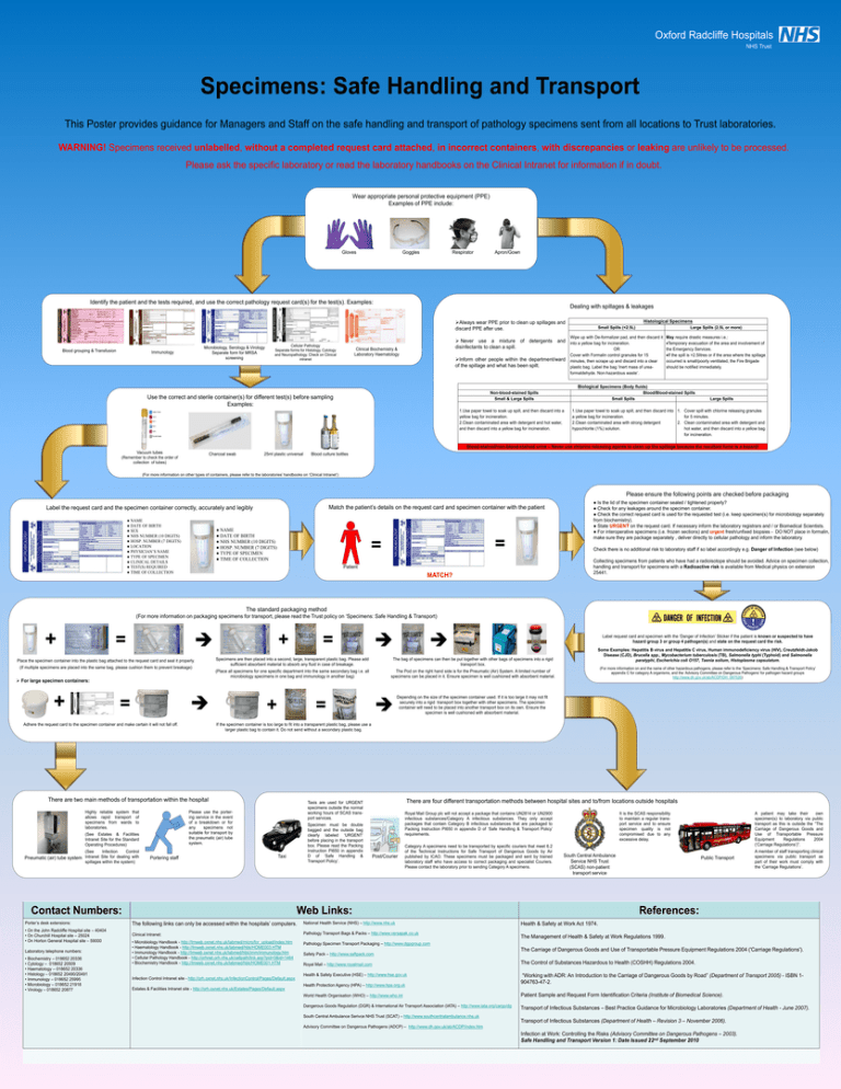This Poster provides guidance for Managers and Staff on the safe handling and transport of pathology specimens sent from all locations to Trust laboratories.