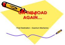 ON THE ROAD AGAIN… Final Destination – Quantum Mechanics Taking the Trip From Classical Physics to Quantum Mechanics What is Quantum Mechanics one may ask? Well, in a nutshell, quantum mechanics is: – The FUNdamental branch of physics replacing classical Newtonian Mechanics and Electromagnetism at the atomic and subatomic levels. – Quantum mechanics provides explanations for many phenomena that are unattainable through classical mechanics • Namely : quantization, wave – particle duality, the uncertainty principle, quantum entanglement Don’t be fooled, this will be no short trip… • • Quantum theory ideas did not originate overnight. There were numerous experiments and observed phenomena that eventually led to this modern way of thought. The move from General Relativity to Quantum mechanics is a huge step, since the two theories seemingly contradict each other. The two fundamental issues yielding this contradiction are; – Classical is essentially a deterministic approach while quantum mechanics is essentially indeterministic – General relativity relies mainly on gravity while quantum mechanics relies on three fundamental forces, the strong, weak, and electromagnetic. • (though these forces are imperative in Quantum Theory, we will leave out a discussion of them here, for they will be covered in a latter presentation) For the remainder.. We will look at the major players on the road to the discovery and development of this way of thought.) Why are we going here? Two fundamental discrepancies between experimental observations and classical physics were noticed in the late 1800’s. These two discrepancies (namely – the ultra violet catastrophe and the discrete spectral line phenomena) caused scientist to re-examine several established ideas and arrive at a new way of thought. EVERYONE JUMP IN THE VAN! We’re hittin the road! • Problem 1 : Energy and Blackbody radiation • Intro; – A black body is a surface which absorbs all radiation and at a given temperature T, can also emit radiation – Thus, using the ρ(λ,T) energy function, holding T constant, the individual wavelengths λ of the radiation can be analyzed – At the turn of the 20th century, this in fact was done and the observations were first recorded by Otto Lummer and Ernst Pringsheim and then again the following year by Heinrich Rubens and Ferdinand Kurlbaum • The results gathered are shown in the following figure Results Uh Oh! • According to the Equipartition Theorem (a non-quantum theorem) every degree of freedom of a system must share equally in the energy available to the system, – Take for example, a blackbody radiation of dimension l , then we know that wavelengths are given by λ = (2l )/ n, where n = 1,2,3 …. – Each of these represent a degree of freedom, and therefore, by the equipartition theorem, should share the energy equally. – Thus, since there are infinitely many waves as the wavelength gets shorter, it would be assumed that the majority of the light (ie radiation) would be at the short wavelength end of the spectrum, as shown by the dotted line; • Notice the dotted line… Why is this a problem? Lets do the math… • A major problem arises, since we know from derivations that follow directly from the equipartition theorem, done by Rayleigh and Sir James Jeans, that through classical analysis, the energy density function can be expressed as: where k is Boltzmann’s constant • • But it is easily seen that by applying basic calculus the limit of as λ approaches 0, is infinity. Obviously contradicting the observed results shown in the figure by the solid line. If this were indeed the case, the results would be described by the dotted line in the previous figure. This discrepancy and “blow – up” at short wavelengths is often referred to as the “ultra-violet catastrophe” and spurred much thought as to how to remedy it. FLAT TIRE!! Our classic car is getting old, time to trade it in • The discrepancy between the observational results and this equation is an intense problem. Since the energy density equation derived by Jeans in 1905, followed directly from the well established equipartition theorem, which was a consequence of general relatively. Thus because these do not correlate, it implies that the overlying theory must be inadequate. Problem 1 –Flat Tire now we have Problem 2 – running out of gas • The second phenomena leading to quantum theory stems from the pattern of spectral lines emitted by an element – When an electric arc passes through a sample of gas, it is observed that only certain frequencies of light are present. – When observing the spectral lines by separating them with a prism, it is observed that the wavelengths are distinct to the element emitting the spectrum • What’s so bad about that? This observation directly contradicts the predictions of classical physics – According to classical physics, accelerated particles must emit electromagnetic radiation, and thus if they were moving randomly within the atom, all the spectra would be emitted, thus producing a continuous spectrum, however the results showed a discrete distribution. – Due to this phenomena, scientist began associating these spectral emission with stable orbits, and an empirical formula was even discovered through trial and error efforts, to fit the observed reality. This equation is: v = R(1/m^2 +1/n^2) known as Balmer’s Eq. where v is the velocity of frequencies of the lines, R is a universal constant, m is a constant representing a particular series, and n is an integer representing a particular line What are we going to do? • Many models of the atom where constructed to try to describe this phenomena. However, they nearly all assumed a uniform distribution of the positive charge. – However, in 1909, Hans Greiger and Ernst Marsden disproved this theory through careful examination of the scattering of a beam of charged particles. What would be 