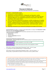 Research Methods Note: These notes relate to both Units 3 & 4 Psychology Dot point # 1: Experimental research Construction of research hypothesis Identification and operationalization of independent and dependent variables Identification of extraneous and potential confounding variables including individual participant differences, non-standardised instructions and procedures, order effects, experimenter effect, placebo effects Ways of minimising confounding and extraneous variables including type of sampling procedures, type of experiment, counterbalancing, single and double blind procedures, placebos, standardised instructions and procedures, evaluation of different types of experimental design including independent-groups, matched-participants, repeatedmeasures Reporting conventions as per American Psychological Association (APA) format Research Hypothesis put simply: is a statement of the predicted effect of a change in the Independent Variable (IV) on the value of the Dependent Variable (DV) It describes how the IV is manipulated & the procedures (operations) used to measure (& observe) the DV A Research hypothesis must have 1. statement of IV 2. statement of DV 3. statement of population (of interest) 4. A prediction Operationalised Independent & Dependent Variable Operationalising – means specifying exactly how something is going to be measured and exactly how the groups will be manipulated • Operationalised IV A variable manipulated to test the effect on the DV Operationalised DV A variable which measures the effects of the manipulation of the IV When asked to identify the Operationalised Independent Variable – look for 2 groups E.g. participants who drink caffeinated drinks vs. decaffeinated drinks When asked to identify the Operationalised Dependent Variable – look for the statistics – i.e. Memory ability as operationalised as number of 30 three letter non sense syllables recalled. www.epsychvce.com Page # 1 People between the ages of 18 and 40 who sleep fewer than 6.5 hours per night for 12 months will have a larger Body Mass Index than people who sleep more than 6.5 hours per night DV: Increase in Body Mass Index IV: Those who sleep fewer than 6.5 hrs or less vs. those who sleep more than 6.5 hours per night Population: 18 – 40 Year olds Prediction: Sleep deprived patients will have a higher BMI than non-sleep deprived subjects Extraneous variables (EV) (the word extraneous means ‘outside’ So an EV is any variable outside the experimental design that may affect the D.V, thereby having an unwanted effect on the results of the experiment and thus affecting the ability of the researchers to draw conclusions. So an EV is a variable other than the IV that may affect the DV They can occur at any stage of an experiment – e.g. how the D.V was measured, how the experimental group was treated (which may be different to treatment of control group) EV’s occur randomly rather than systematically – i.e. they occur at a point of the experiment Identification of extraneous potential confounding variables variable Description Example Alternatives Individual participant differences The composition of the control and experimental groups, may contain significant difference in terms of the intelligence, past experience, memory ability, gender mix, age spread, etc – which may influence the results Non This involves subjects standardised receiving different instructions, instructions conducting experiment in a & procedures different context (different time of day, different location – could affect results) Control group has 80% males, Experimental group has 80% females, gender may affect results Use a repeated-measures design to eliminate individual participant differences or a matchedpairs design to reduce individual participant differences Comparing results of Psych class A (experiment done Monday am, to results of Psych class B (experiment done Friday pm) Use standardised instructions and procedures: i.e. same experimenter, same context, etc. Order effect (see below) Experimenter (see below) effect Placebo (see below) effect www.epsychvce.com Page # 2 Placebo Effect & the use of a Placebo Placebo effect Explanation What is a placebo Use single blind procedure to overcome placebo effect Benefit of using a single blind procedure A tendency of participants expectations to influence their behaviour meaning that the IV is not the only variable influencing the value of the DV And/or – the subjects knowing what group they are in (control or experimental) which can alter change their behaviour A Placebo is a fake treatment often used in medical treatments e.g. a sugar tablet given to the control group - the real tablet is given to the experimental group. Neither group knows which one is receiving the placebo. The use/purpose of the placebo means that the difference in outcome between control and experimental conditions will be due to the independent variable & not the participants expectations Involves the experimenter allocating the subjects to the experimental and control groups So they (the subjects) are blind to the knowledge of which group they are in – i.e. experimental or control. To avoid participants expectations/bias that may affect the results (a placebo effect) as the participants are blind to whether they are in the control or experimental group. Experimenter effect Explanation Use double blind procedure to overcome experiment effect Benefit of using a double blind procedure Refers to the actions of the experimenter, rather than the I.V affecting the value of the D.V, hence the results of the experiment. An experiment effect can occur when the unconscious (or inadvertent) expectations, personal characteristics or treatment of the data (by the experimenter) may bias the results (particularly for the experimental group) 2 types of Experimenter Effect 1. Self-fulfilling prophecy – which occurs when subjects behave the way they think the experimenter, wants them 