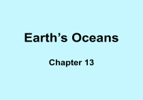 Earth’s Oceans Chapter 13 • In your science log, try to answer the following questions based on what you already know: 1) How have Earth’s oceans changed over time? 2) Name two ways scientists study the ocean without going underwater. 3) Name two valuable resources that are taken from the ocean Earth’s Oceans • Earth stands out from the other planets in our solar system primarily for one reason – 71 percent of the Earth’s surface is covered with water. Most of the Earth’s water is found in the global ocean, which is divided by the continents into four main oceans. How Did the Oceans Form? • About four and a half billion years ago, the Earth was a very different place. There were no oceans. Volcanoes spewed lava, ash, and gases all over the planet, which was much hotter than it is today. The volcanic gases, including water vapor, began to form the Earth’s atmosphere. While the atmosphere developed, the Earth was cooling. Sometime before 4 billion years ago, the Earth cooled enough for water vapor to condense and fall as rain. The rain began filling the lower levels of Earth’s surface, and the first oceans began to form. IS THAT A FACT!!! • The global ocean covers nearly 376 million square kilometers. The entire North American continent, by comparison, covers only a little more than 24 million square kilometers. SCIENTISTS AT ODDS • When Earth cooled about 4 billion years ago, the rains that resulted lasted for thousands of years. But some scientists do not believe all the water on Earth came from condensation as Earth cooled. Instead, they argue that some of the water came from “cosmic rain” – comets that struck Earth in its early history. Mnemonics • Create a mnemonic device that will help you remember the names of the world’s oceans. For example, you might write, Aunt Patty Ate Inchworms in order to recall Atlantic, Pacific, Artic and Indian. Share your ideas with the class. CONNECTION • Condensation is a physical change from a gas to a liquid. In the atmosphere, the amount of water vapor that the air can hold is dependent on temperature. As temperature decreases, the air can hold less water vapor, and the water vapor condenses, forming clouds. Characteristics of Ocean Water • You know that ocean water is different from the water that flows from the faucet of your kitchen sink. For one thing, Ocean water is not safe to drink. But, there are other characteristics that make ocean water special. Ocean Water is Salty • Have you ever swallowed a mouthful of water while swimming in the ocean? Most of the salt in the ocean is the same kind of salt that we sprinkle on our food. Scientists call this salt sodium chloride. • The most abundant dissolved solid in the ocean is sodium chloride, a compound of the elements sodium (Na) and chlorine (CI). Chock-full of Solids • If more water evaporates than enters the ocean, the ocean’s salinity increases. Salinity is a measure of the amount of dissolved salts and other solids in a given amount of liquid. Think of it this way: 1 kg (1,000 g) of ocean water contains 35 g of dissolved solids on average. Therefore, if you evaporated 1 kg of ocean water, about 35 g of solids would remain. Factors That Affect Salinity • Some areas of the ocean are saltier than others. Coastal water in areas with hotter, drier climates typically have a higher salinity than coastal water in cooler, more humid areas. Another factor that affects ocean salinity is water movement. Surface water in some areas of the ocean, such as bays, gulfs, and seas, circulates less than surface water in other parts. Science Humor • Question: Why is the ocean salty? •Answer: Because fish don’t like pepper Temperature Zones • The temperature of ocean water decreases as the depth of the water increases. Water in the ocean can be divided into three layers according to temperature. Surface zone • The surface zone is the warm, top layer of ocean water that extends to 300 m below sea level. Sunlight heats the top 100 m of the surface zone. Surface currents mix the heated water with cooler water below. Thermocline • The thermocline is a layer of water extending from 300 m below sea level to about 800 m below sea level. In this zone, water temperature drops with increased depth faster than it does on the other two zones. Deep zone • This bottom layer extends from the base of the thermocline to the bottom of the ocean. The temperature in this zone averages a chilling 2 degree C. IS THAT A FACT!! • The deepest water in the ocean is colder than 00 C, but it remains liquid because of its salinity and the increased pressure at that depth. WEIRD SCIENCE • The Amazon River feeds so much fresh water into the Atlantic Ocean that the ocean water has different salinity and color almost 160 km from shore! Surface Temperature Changes • Temperatures in the surface zone vary with latitude and the time of year. Surface temperatures range from 10 C near the poles to about 240 C near the equator. Areas of the ocean along the equator are warmer because they receive more sunlight per year than areas closer to the poles. The Ocean and the Water Cycle • If you could sit on the moon and look down at Earth, what would you see? You would notice that Earth’s surface is made up of three basic components – water, land, and air. All three are involved in an ongoing process called the water cycle. The water cycle is a cycle that links all of Earth’s solids, liquid, and gaseous water together. The ocean is an important part of the water cycle because nearly all of Earth’s water is found in the ocean. IS THAT A FACT!! • Twelve thousand years ago much of Earth’s water was frozen in glaciers and icecaps, and the Atlantic coast was miles farther out than it is today. Modern-day divers exploring the Chesapeake Bay found a mound of oyster shells – the remains of a longago picnic – 40 m below sea level! QUIZ 1. How is the global ocean divided, and what are