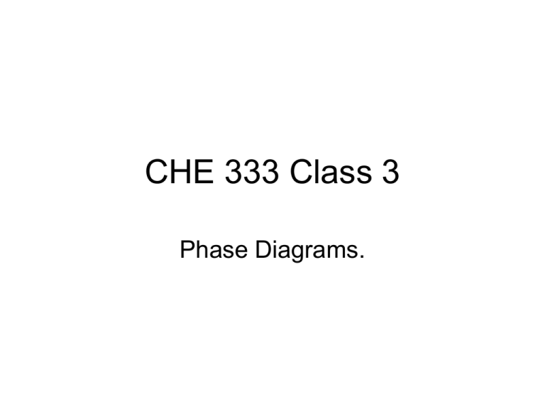 CHE 333 Class 3 Phase Diagrams. Why Phases? • Few materials used in pure state – gold, copper, platinum etc for electrical properties or coatings. • Most materials consist of mixtures of elements. Can be two, or a binary system that then has two components. Brass is a mixture of copper and zinc in a binary two component system. Another is steel which is a binary system of carbon and iron. • Mixtures of more are called ternary systems or quarternary systems, with three and four elements or components in them. Best example of a ternary system is stainless steels, containing iron, chromium and nickel. • Phases present control the “microstructure” of a material, which affects the chemical and physical properties. PHASES • Familiarity with phases exists. • H2O system • Ice – solid – below 0C, water – liquid 0 to 100C, steam – vapor- above 100C. • So COMPOSITION and TEMPERATURE important. • Engineers need to control phases for CONSTANT PROPERTIES. • Usually no phase change in service. • No transformation from solid to liquid. • Manufacturing may use phase changes for example casting, soldering, hardened steel, injection molding, slip casting. Copper Nickel Phase Diagram Phase Changes – Pure copper goes from solid to liquid at its melting point of 1084C. Pure nickel goes from solid to liquid at its melting point of 1455C. These are singular points in that all solid goes to all liquid at a unique temperature. Therefore on the phase diagram they can be represented by a single point. What happens in between? Add copper to nickel, say 47 gms of copper and 53 gms of nickel. This is then the “average composition”. If this block of material is analyzed it will show 47 gms of copper and 53 gms of nickel. What happens on heating . The phase diagram is a map of the phases present. Up to 1275C solid solution a is present which is a mixture of copper in nickel. At 1275 the dashed line showing the composition intersects a curved line joining the two single melting points. This line is called the solidus line and represents a phase boundary where solid a changes to two phases of solid a +liquid. Some of the a has melted. Below the solidus only one phase is present so the copper is completely soluble in the nickel or complete solid solubility Lead Tin Phase Diagram- Eutectic Consider a 90%Pb10%Sn average composition at 330C, it will be all liquid. At 300C it will have crossed the liquidus and so will be a mixture of solid and liquid. At 275 it will cross the solidus and become a single phase a solid. As the temperature decreases, another phase boundary occurs, the solvus where a second new solid phase forms, so at room temperature two solid phases, a and b exist. In This case, tin has limited solid solubilty in lead at room temperature as shown by the presence of the solvus lines. Consider the composition of 61.9% Sn38.9% Pb At 250c it is all liquid and at 182C it is all solid but with two phases, a and b, present. At 183C all the liquid goes to all solid, but the solid is in two phases. This is called a “Eutectic” reaction. Liquid Solid 1 + Solid 2. Compositions in Two Phases 1. 2. 3. 4. 5 6. Draw in horizontal temperature line at specified temperature, 1300c Draw in vertical average composition line, 53%Ni 47%Cu. Extend horizontal “tie line” to intersect both liquidus and solidus at the temperature. Intersection of temperature line with liquidus is the composition of the liquid in the two phase region at the temperature, 45%Ni 55% Cu, different from the average. Intersection of the temperature line with the solidus is the solid composition in the two phase region 58%Ni 42%Cu. The composition at a fixed temperature in a two phase region is where the temperature intersects the respective phase boundaries. So the boundaries provide the composition in two phase regions Eutectic Phase Change Consider composition 60%Pb 40% Sn. At temperature a, it is all solid; at b some solid will form and at c it is clearly in a two phase solid a + liquid region. The solid will have a composition which follows the solidus while the liquid will have a composition that follows the liquidus. So at 183C any liquid remaining will have the eutectic composition and will become solid of two phases a and b. On further cooling the solid a and b will follow the solvus lines for their phases for composition. At room temperature there will be two phases, a and b.