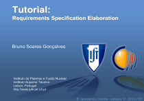 Tutorial: Requirements Specification Elaboration Bruno Soares Gonçalves Instituto de Plasmas e Fusão Nuclear Instituto Superior Técnico Lisbon, Portugal http://www.ipfn.ist.utl.pt B. Gonçalves | Lisboa , January 11, 2010 | IST Technical requirements specification purpose and description The technical requirements specification is a document through which a customer expresses his needs (or those that he is responsible for expressing) and the related environment and constraints in terms of technical requirements allowing for potential suppliers to propose the best technical and programmatic solutions. The requirements documents organize and communicate requirements to the customer and other stakeholders and the technical community. The intention of the technical requirements specification is not to assume or refer to specific solutions 2 | Place, Month 2007 || Event B. Gonçalves |Author’s Lisboaname , January 11, xx, 2010 IST Why focus on requirements? The hardest single part of building a system is deciding what to build... No other part of the work so cripples the resulting system if done wrong. No other part is more difficult to rectify later. Adapted from Brooks, Fredrick P., Jar. “No Silver Bullet: Essence and Accidents of Software Engineering”. IEEE Computer, 10-19, April 1987 3 | Place, Month 2007 || Event B. Gonçalves |Author’s Lisboaname , January 11, xx, 2010 IST Technical Requirements Definition Process Technical Requirements Definition Process transforms the stakeholder expectations into a definition of the problem and then into a complete set of validated technical requirements expressed as “shall” statements that can be used for defining a design solution for the Product Breakdown Structure (PBS) model and related enabling products. The TS is the technical reference for the qualification of the design and for the acceptance of the end product. 4 | Place, Month 2007 || Event B. Gonçalves |Author’s Lisboaname , January 11, xx, 2010 IST Technical Requirements Definition Process The process is recursive and iterative and develops the stakeholders’ requirements, product requirements, and lower level product/component requirements • e.g., PBS model products such as systems or subsystems and related enabling products such as external systems that provide or consume data. Requirements should enable description of all • Inputs, • Outputs • Required relationships between inputs and outputs. Technical requirements definition activities apply to the definition of all technical requirements from the project, and system levels down to the lowest level product/component requirements document. 5 | Place, Month 2007 || Event B. Gonçalves |Author’s Lisboaname , January 11, xx, 2010 IST Technical Requirements definition process 6 | Place, Month 2007 || Event B. Gonçalves |Author’s Lisboaname , January 11, xx, 2010 IST Requirements Process 7 | Place, Month 2007 || Event B. Gonçalves |Author’s Lisboaname , January 11, xx, 2010 IST Requirements Analysis Should result in a clear understanding of: • Functions: What the system has to do, • Performance: How well the functions have to be performed, • Interfaces: Environment in which the system will perform, and • Other requirements and constraints. 8 | Place, Month 2007 || Event B. Gonçalves |Author’s Lisboaname , January 11, xx, 2010 IST Structure Requirements should be communicated in a structured manner to ensure that the customer and technical community are able to: a) Identify requirements that are derived from other requirements; b) Organize requirements of different levels of detail into their appropriate levels; c) Verify the completeness of the set of requirements; d) Identify inconsistencies among requirements; e) Clearly identify the capabilities, conditions, and constraints for each requirement; f) Develop a common understanding with the customer of the purpose and objectives of the set of requirements; g) Identify requirements that will complete the SyRS. 9 | Place, Month 2007 || Event B. Gonçalves |Author’s Lisboaname , January 11, xx, 2010 IST Properties of a requirement Each requirement should possess the following properties: a) Abstract: Each requirement should be implementation independent. b) Unambiguous: Each requirement should be stated in such a way so that it can be interpreted in only one way. c) Traceable: For each requirement it should be feasible to determine a relationship between specific documented customer statement(s) of need and the specific statements in the definition of the system given in the SyRS as evidence of the source of a requirement. d) Validatable: Each requirement should have the means to prove that the system satisÞes the requirements. 10 | Place, Month 2007 || Event B. Gonçalves |Author’s Lisboaname , January 11, xx, 2010 IST Properties of the collection The collection of requirements should have the following properties: a) Unique set: Each requirement should be stated only once. b) Normalized: Requirements should not overlap (i.e, they shall not refer to other requirements or the capabilities of other requirements). c) Linked set: Explicit relationships should be defined among individual requirements to show how the requirements are related to form a complete system. d) Complete: An SyRS should include all the requirements identified by the customer, as well as those needed for the definition of the system. e) Consistent: SyRS content should be consistent and non-contradictory in the level of detail, style of requirement statements, and in the presentation of material. f) Bounded: The boundaries, scope, and context for the set of requirements should be identified. g) Modifiable: The SyRS should be modifiable. Clarity and non-overlapping requirements contribute to this. h) Configurable: Versions should be maintained across time and across instances of the SyRS. i) Granular: This should be the level of abstraction for the system being defined. 11 