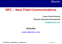 IDTechEx NFC – Near Field Communications Trevor Crotch-Harvey Director, Business Development tch@idtechex.com IDTechEx www.idtechex.com Consulting – Publications – Conferences © IDTechEx Ltd IDTechEx IDTechEx is an independent strategic analyst on RFID, printed electronics and smart packaging. We can help you by providing: Consultancy Publications/ Research Clients include: • Independent market and Global Conferences: USA, technology research reports Europe and Asia covering RFID, printed electronics & smart RFID Smart Labels packaging topics Active RFID Printed Electronics • RFID Analyst journal, & world’s largest RFID case study knowledgebase 2,800 RFID case studies Shell Oil Hewlett Packard Rexam Whirlpool Europe Guinness UDV Thin Film Electronics PolyTechnos Cazenove Schiphol Airport… Conferences and Exhibitions •Printed Electronics World – free daily newsletter Consulting – Publications – Conferences © IDTechEx Ltd NFC IDTechEx • Co-operation started 2002; public announcement by Nokia, Philips & Sony at RFID Smart Labels USA in March 2004 • First commercial product by Nokia in 2005 • Current status • Value chain & players • Issues - infrastructure, revenue sharing • IDTechEx assessment & forecasts Consulting – Publications – Conferences © IDTechEx Ltd IDTechEx Applications Reader mode Pass the gate Card emulation Pay without cash Get your Receipt Read a map from advertising (Smart posters) Access Control Physical Access Control Source: Inside Contactless Consulting – Publications – Conferences Exchange photos (Peer to peer) Pairing devices (Peer to peer) Device to device mode © IDTechEx Ltd IDTechEx Current Status Consulting – Publications – Conferences © IDTechEx Ltd DoCoMo/Suica, Japan • Based on Sony proprietary FeliCa technology IDTechEx DoCoMo • 21M users end 2006 • 100K payment locations – Train ,Subway – Payment Source: Inside Contactless Consulting – Publications – Conferences © IDTechEx Ltd IDTechEx Caen, France • Started in October 2005 with ~200 participants • Organised by France Telecom, Groupe LaSer, Orange, NXP, Samsung, Vinci Park • Secure payment in selected retail stores & access control to parking Consulting – Publications – Conferences © IDTechEx Ltd IDTechEx Hanau, Germany • Started in April 2005 with ~160 participants • Organised by RMV (Rhein-Main Verkehrsverbund), Nokia & NXP • E-ticketing & loyalty programmes at local restaurants, shops & attraction parks Consulting – Publications – Conferences © IDTechEx Ltd IDTechEx Update from China • Nokia NFC phones on sale in August in SE port city of Xiamen, site of China’s first NFC trial, June 2006 • Collaborators: Nokia, China Fujian Mobile Communications, Xiamen E-Tong Card, Philips • Nokia NFC phones also to be available in Guangzhou & Beijing • New phones come preloaded with transit purse for bus & ferry services, enabling subscribers to tap phones to pay fares & make retail purchases at ~100 merchant locations Consulting – Publications – Conferences © IDTechEx Ltd IDTechEx Taiwan • October 2005, commuters began trialling NFC on Taipei transport – 100 volunteers; mobile phones from BenQ in Taiwan – Building on existing MIFARE infrastructure – 1st step in Taiwan Proximity Mobile Transaction Service Alliance (PMTSA) programme to develop NFC; includes Acer, BenQ, Chunghwa Telecom, Far EastTone Telecom, Taipei Smart Card Co, Taiwan Cellular Corp, Asia Pacific Broadband Wireless Communications, ViVOTech, MasterCard International, Visa International, Philips – Govt heavily involved, pushing for creation of PMTSA & driving discussions • ViVOtech NFC infrastructure software part of joint initiative by MasterCard, Taipei Fubon Bank & Taiwan Mobile – Results of survey conducted of MasterCard Mobile with PayPass™: >75% of participants preferred using MasterCard PayPass on mobiles than traditional contact-based cards • Farglory, property developer, announced that residents of 4 new complexes in Taipei will begin using cell phones to open doors each home provided with 2 BenQ T80 handsets Consulting – Publications – Conferences © IDTechEx Ltd IDTechEx Philips Arena, Atlanta • Collaboration between Chase, Cingular Wireless, Nokia, Philips, Visa USA, & ViVOtech, with Atlanta Spirit, parent co of NBA’s Atlanta Hawks, NHL’s Atlanta Thrashers & Philips Arena – Trial designed to enable secure, wireless system that simplifies payment & services for arena visitors • Users purchase items by holding their NFC phones near a secure terminal – ~150 contactless POS readers deployed throughout Philips Arena – For mobile content downloads, Cingular Wireless is carrier • Key findings include: – Participants overwhelmingly embraced technology & expressed that the mobile device & applications significantly improved their arena experience – Data usage increased during game days; trial participants used their NFC-enabled mobile device more frequently to search for & purchase digital content – Participants indicated they would like to use their mobile devices for payment at a variety of merchant locations, for any purchase size, & see value in accessing multiple payment accounts on their mobile devices in future – Participants expressed interest in having multiple applications on a single mobile device, including transit, loyalty and digital content applications Consulting – Publications – Conferences © IDTechEx Ltd IDTechEx Where Do We Stand in 2007? • Working Groups – – – – • Standardisation – NFC-Forum – ETSI (SWP & HCI) – Global Platform NFC Forum GSMA working group StoLPaN French Transport/MNO • Awareness • Trials – Transport – Payment – +++ Moving along, not quite there yet Consulting – Publications – Conferences – CES – 3GSM – WIMA – SIMPosium – NFC Summits Source: Inside Contactless © IDTechEx Ltd IDTechEx Players & Issues Consulting – Publicat