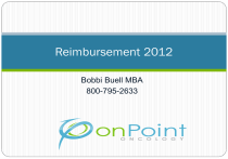 Reimbursement 2012 Bobbi Buell MBA 800-795-2633 Agenda What’s Going On Right Now Medicare PFS Final Rule 11-1-2011 PQRS and E-Prescribing 2012 Meaningful Use/ HIT 2012 Hospital Outpatient Prospective Payment System Final Rule New Payment Models Coding 2012 Your To Do List 2 onPoint Oncology LLC Disclaimer Payers differ on their guidelines. Please verify coding for each payer and claim. All Medicare and RAC information is literally changing on a daily basis. What is presented herein for 2012 is still being evaluated. This is not legal or payment advice. This content is abbreviated for Medical Oncology. It does not substitute for a thorough review of code books, regulations, and Carrier guidance. ICD-9-CM information is abbreviated and coders are urged to check the tabular lists of code books for correct coding. This information is good for the date of the information and may contain typographical errors. CPT is the trademark for the American Medical Association. All Rights Reserved. onPoint Oncology LLC 3 Medicare Physician Payment Basics Payments are based on RVUs for each code (WRVUs+PERVUs+MalRVUs) RVUs are multiplied times GPCIs for your area. There is a work GPCI floor in some areas of 1.00. (W*WGPCI+PE*PEGPCI+Mal*MalGPCI) The Medicare conversion factor determines the overall level of Medicare payments (W*WGPCI+PE*PEGPCI+Mal*MalGPCI) times CF = $Your Total Allowable for your area A formula spelled out in the Medicare statute determines the annual update to the conversion factor and that has been a disaster. onPoint Oncology LLC 4 SGR Update SGR is frozen for two months. With no fix, a 5 27.4% decline. GPCI floor is frozen for two months. The fee schedule CF has been adjusted for ‘budget neutrality’. So, the new allowables have nothing to do with the original one. But, RVUs are the same. Congress has looked at a longer fix, but expect a fight. Probable case = 1-2 year fix. onPoint Oncology LLC A Little History… Year Medicare Acts Conversion 1st Hour $ Drugs Other 1991 Proposed MPFS $30.00 $58.78 85% of AWP Drugs now paid at 2-3 times AWP 1993 Final MPFS $31.00 N/A 100% of AWP 99213 = $31.00 1994 Cancer Coverage Improvement Act $33.72 and $32.90 N/A 100% of AWP Off-label use approved; oral cancer drugs Part B 1996 HIPAA passed $35.42 and $34.63 N/A 100% of AWP False Claims Act for Medicare 1997 BBA of 1997 $36.69 N/A 95% of AWP Oral antiemetics passed 6 (c) onPoint Oncology LLC A Little History Year Medicare Acts Conversion 1st Hour $ Drugs Other 1998 None of Note $36.69 N/A 95% of AWP or inherent reasonableness LCA for LUPRON 1999 None of Note $34.73 N/A 95% of AWP 26 states have off label laws 2000 None of Note $36.61 $61.90 95% of AWP Drug pricing investigated 2001 None of Note $38.26 $62.00 95% of AWP Aredia goes generic 2002 Single Drug Pricer $36.20 N/A 95% of AWP under SDP Taxol goes generic 7 (c) onPoint Oncology LLC A Little History Year Medicare Acts Conversion 1st Hour $ Drugs Other 2003 Passed MMA for 2004 $36.79 $59.22 95% of AWP RACs approved 2004 MMA $37.34 $217.35 85% of AWP for some drugs 99211 denied with drugs 2005 Demo Project $37.90 $177.61 ASP, plus 6% $130 per visit for demo 2006 Demo Project $37.90 $172.81 ASP, plus 6% $26 per visit for demo 2007 PQRI $37.90 $165.99 ASP, plus 6% IVIG in shortage 2008 ESAs limited $38.09 $161.49 ASP, plus 6% 40% denial rate on ESAs beginning of the year 8 (c) onPoint Oncology LLC A Little History Year Medicare Acts Conversion 1st Hour $ Drugs 2009 ARRA, MIPPA $36.07 $147.51 (32.1% since 2004) ASP, plus 6% 2010 None of Note Many $140.72 ASP, plus 6% PQRS/ ERx = 4% incentive 2011 None of Note $33.98 $146.44 ASP, plus 6% MUEs, Drug Shortages 9 (c) onPoint Oncology LLC Other Medicare Physician Fee Schedule PFS Final Rule 2012 11/1/2011 MPFS 2012 On November 1, 2011, the Centers for Medicare & Medicaid Services (CMS) posted a proposed notice for Medicare payments in the physician fee schedule for calendar year (CY) 2012. Here are the highlights of Rule which becomes effective for dates of service on or after 1-1-2012. https://www.cms.gov/PhysicianFeeSched/PFSFRN/list.asp#TopOfPage 11 onPoint Oncology LLC Reductions Will Occur for Most Chemotherapy Administration Codes (1 of 2) Final 2011 CPT Code Descriptor 96401 96402 96405 96406 96409 96411 96413 96415 96416 Chemo antineopl sq/im Chemo hormon antineopl sq/im Chemo intralesional up to 7 Chemo intralesional over 7 Chemo iv push sngl drug Chemo iv push addl drug Chemo iv infusion 1 hr Chemo iv infusion addl hr Chemo prolong infuse w/pump Final 2012 Total RVUs MPFS Payment Total RVUs MPFS Payment* Difference Difference in RVUs in Payment* 2.14 $72.71 2.15 $53.04 0.47% -27.05% 1.03 $35.00 0.99 $24.42 -3.88% -30.21% 2.53 $85.96 2.49 $61.43 -1.58% -28.54% 3.48 $118.24 3.55 $87.58 2.01% -25.93% 3.32 $112.80 3.26 $80.43 -1.81% -28.70% 1.86 $63.20 1.83 $45.15 -1.61% -28.56% 4.31 $146.44 4.07 $100.41 -5.57% -31.43% 0.92 $31.26 0.90 $22.20 -2.17% -28.97% 4.75 $161.39 4.06 $100.17 -14.53% -37.94% Source: Centers for Medicare & Medicaid Services (CMS). Calendar Year 2012 Medicare Physician Fee Schedule Final Rule (CMS-1524-FC). Released November 1, 2011. *These payment rates reflect the 27.4% across-the-board cut that will occur if Congress does not pass an SGR fix. Assuming Congress acts to avoid the SGR cuts, the changes in RVUs are more reflective of the actual changes in payment rates for these codes in CY 2012. Reductions Will Occur for Most Chemotherapy Administration Codes (2 of 2) Final 2011 CPT Code Descriptor 96417 96420 96422 96423 96425 96440 96446 96450 96542 Chemo iv infus each addl seq Chemo ia push tecnique Chemo ia infusion up to 1 hr Chemo ia infuse each addl hr Chemotherapy infusion method Chemotherapy intracavitary Chemotx admn prtl cavity Chemotherapy into cns Chemotherapy injection Total RVUs MPFS Payment 2.13 Final 2012 Total RVUs MPFS Payment Difference in RVUs Difference in Payment $72.37 2.09 $51.56 -1.88% -28.75% 3.21 $109.06 3.15 $77.71 -1.87% -28.74% 5.16 $175