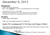 Update TOC. (in Science nb) P.47/48 States and Changes of Matter