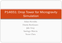 P14651: Drop Tower for Microgravity Simulation Adam Hertzlin Dustin Bordonaro Jake Gray Santiago Murcia Yoem Clara Week 3 Review – Open Items How many pumps are needed? Benchmark NASA Drop Tower components Research designs to hold vacuum pressure Determine location for Drop Tower Create working design w/o cost considerations Meet with Deans Meet with Grad Students Agenda Background Problem Statement Stakeholders Customer Requirements Engineering Requirements System Analysis Requirements Matrix Benchmarked Components Functional Analysis Concept and Architecture Development Engineering Analysis Risk Assessment Test Plan New Focus as of Sep 30 BACKGROUND Problem Statement Current State Ex) NASA Space Flight Center 100 meter – 4.5 sec drop Ultimate Pressure: 10-9 Torr Limited Visibility Desired State P14651 Drop Tower 9-12 meter ~ 1.5 sec drop 15-30cm diameter tube Object visible during drop Continuous Lift / Release System Appropriate pump(s) for required pressure Educational and fun for all ages Problem Statement Cont’d Project Goals: Fast Cycle Time Cost efficient Aesthetically pleasing Precision in measurements (1% estimation of standard gravity) Adaptability for multiple / future uses Minimal vacuum loss Constraints: Location and design approval from the Dean(s). Material availability/size (ex. tube, pump) Budget $3,000 Additional Deliverables User’s Guide for operation Designed Lab Experiments: Determine gravity in the vacuum within 1% error Compare drag at different pressures and drag vs. acceleration Additional vacuum related experiments Project Stakeholders MSD Team Dr. Kandlikar Middle School Students RIT Graduate and Undergraduate Students RIT Faculty Middle School Teachers RIT College Dean(s) RIT Prospective Students Customer Needs Importance Description 9 Minimal Down Time of Tower 9 Clear Visibility of Entire Drop 9 Capable of Dropping more than (1) object 9 Educational, but exciting for middle school students 9 Calculate Drag Coeffecient 9 Calculate Gravity (within 1% error) 9 9 Effective Data Collection Safety 3 3 Maximum Justified Drop Tower Height Multiple Use Capabilities 3 3 Intuitive Operation Adjustable Pressure (Atmospheric to High Vacuum) 3 Minimize Production Cost Engineering Specifications Importance Main Source 9 CR7 Measure Relative Object Position 9 CR7 9 Engr. Requirement (metric) Unit of Measure Comments/Status m With postion/time sensor Measure Relative Object Drop Time sec With postion/time sensor CR12 Measure Pressure kpa Pressure gage 9 CR1 Cycle Run Time min Time from one test to another 9 CR1 Continuous Lift Mechanism Yes / No Tower runs on its own 9 CR10 Pressure Leak Rate Minimized kpa / sec 9 CR14 Aesthetic Structure with Supports Yes / No Seal all gaps Visually Pleasing, permanent structure 9 CR7 No Horizontal Motion 3 CR9 Tower Height m Tall as possible in chosen location 3 CR3 Tower Cross - Section (Diameter) cm 3 CR12 Pump Flow Rate m3/sec 3 CR7 Measure Temperature Celcius Availaility and least view distortion Value determined by tube size and desired time Thermocouples, inside or outside environment mm No horizontal motion SYSTEM ANALYSIS Requirements Matrix Benchmarked Components Microgravity Device NASA Marshall Space Flight Center (100m drop~4.5sec) Existing Technologies Description/Notes Feasibility 1) Good feasibility of detachable base and CAM locks 1) Detachable base has integrated catch 2) Isolation valves may not be system, and is attached via CAM locks 1) Detachable Base feasible for budget constraints 2) Isolation valves allow for section off of 2) Isolation Valves 3) Vacuum pump feasibility pipe sections 3) Drop Tube depends upon pump 3) Multiple vacuum pumps for uniform 4) Vacuum Pumps availability and budget vacuum within the tube, roughing pumps 5) Control Panel constraints due to high cost of for starting from atmospheric pressure 6) Gaskets/ Connections turbo molecular pumps and turbo molecular pumps for higher 4) We can use the same vacuum surface finish and gasket material potentially in our design 1) Inside 142m long 6.1m diameter vacuum NASA Zero chamber Gravity Research 2) 5 Stage Vacuum Pump Facility (132m Process 3) Overhead Crane drop~5.18sec) 4) Release Mechanism 5) Catch Mechanism 1) Vacuum reaches 0.05 Torr. 2) Drag is reduced to less than 0.00001g 3) ~ 1 hour to evacuated chamber 4) Experiment vehicle protects hardware 1) Catch mechanism/beads 5) Catch mechanism is composed of could be a possible solution polystyrene beads which dissipate the 2500 lb. experiment vehicle's kinetic energy Picture Benchmarked Components Cont’d Microgravity Device Existing Technologies Description/Notes NASA Glenn 1) Drag Shield System 1) Drag shield removes air resistance Research Center 2) Rectangular Frame 2) Airbag dampens force of impact and 3) Lift Mechanism protects components (24m 4) High Speed Cameras 3) Cameras and onboard computer 5) Airbag Catching System monitor drop drop~2.2sec) Dryden Drop Tower (22.2m drop~2.13 sec) 1) Cable Guided Drag Shield 2) Open Enclosure 3) Magnetic Field/Eddy Current Deceleration 4) Air Collet Release Mechanism 5) Single Floor/ Single Person Operation 6) Aesthetically Pleasing 7) Usuable for PSU students, grad students, and k-12 level activities 1) Tower height is 31.1m 2) Can routinely drop in 10 minutes 3) Deceleration takes 3.5m 4) Automated retrieval takes 5 min Feasibility 1) Drag shield is not feasible, we are using a vacuum tube 2) Lift mechanism may have possible similarities 3) Catching system may not work in a vacuum environment 1) Can take design cues for aesthetics 2) Could use some ideas for educational aspect for students, grad students and k12 3) Release mechanism could have merit 4) Deceleration method probably not feasible Picture Functional Decomposition Demonstrate Microgravity Concepts Remove / Load Items Pressurize Chamber Access Chamber Add Air Molecules Open Chamber Open Valve Break Seal Isolate Chamber Section Demonstrate Microgravity Concepts Depressurize Chamber R