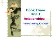 Book Three Unit 1 Relationships “I didn’t recognize you.” Lead-in Activity Warm-up Listening Task Real World Listening Interaction Link Useful Expressions Additional Listening Homework Conversation Lead-in Activity Read the poem by Robert Frost with emotion. What do you think is it about? The Road Not Taken TWO roads diverged in a yellow wood And sorry I could not travel both And be one traveler, long I stood And looked down one as far as I could To where it bent in the undergrowth Then took the other, as just as fair And having perhaps the better claim Because it was grassy and wanted wear Though as for that the passing there Had worn them really about the same 未选之路 林中两路分, 可惜难兼行, 游子久伫立, 极目望一径。 蜿蜒复曲折。 隐于丛林中。 我选另一途, 合理亦工整。 草密人迹罕, 正待人通行。 足迹踏过处, 两路皆相同。 Poem About Life Choices And both that morning equally lay In leaves no step had trodden black Oh, I kept the first for another day Yet knowing how way leads on to way I doubted if I should ever come back 两路林中伸, 落叶无人踪。 他日选另路, 深知路无穷。 我疑从今后, 能否转回程。 I shall be telling this with a sigh Somewhere ages and ages hence: Two roads diverged in a wood, and I— I took the one less traveled by, And that has made all the difference. 多少年以后, 谈起长叹息。 林中两路分, 一路人迹稀。 我独选此路, 境遇乃相异。 A narrator makes a decision that has changed the direction of his life from what it may have otherwise been. It allows all readers from all different experiences to relate to the poem. Part I Warm-up Language Points calling n. 志向,职业 science fiction n. 科幻小说 apprentice n. 学徒 v.当学徒, 见习 chef n. 厨师 unique adj.无与伦比的; 独特的 conservative adj.保守的;保守党的;稳健的;谨慎的 n.保守派 be into sth (inf) 对…感兴趣 He’s into surfing in hot summer days. drift apart n. (两者)漂移; 疏远 As children we were very close, but as we grew up we just drifted apart. Warm Up Read about some important life choices. Write the missing words and phrases. my thing into sports a free spirit true calling my own unique style my junior graduate school a flower shop cooking show an exchange student get married drifted apart as an apprentice different colleges Warm Up Joe 1. When I was in high school, I was really ____________. In college I found out that my ____________ is to be a science fiction writer! After high school, my girl friend, Melissa, and I went to ________________. After a while, we just _________________. 2. _________ year of college I lived in Europe as ___________________. I ended up going back to New York for ________________. Lindsay Warm Up 3. My dad owns ________________. He always wanted me to take over for him when he retired, but flowers really aren’t_____________. Right now I’m working ____________________ to a famous chef. Someday I hope to have my own television________________. 4. As a teenager, I had ______________________ and way of thinking. I was ______________, while my boyfriend, Brad, was very conservative. Everyone was really surprised when Brad and I decided to _____________. I guess they thought we’d eventually break up. Chris Allison Warm Up Now listen and check Joe 1. When I was in high school, I was really into sports ____________. In college I found out that true calling is to be a science fiction my ____________ writer! After high school, my girl friend, different colleges Melissa, and I went to ________________. drifted apart After a while, we just _________________. My junior year of college I lived in 2. _________ Europe as ___________________. an exchange student I ended up going back to New York graduate school for ________________. Lindsay Warm Up a flower shop He always 3. My dad owns ________________. wanted me to take over for him when he retired, but my thing flowers really aren’t_____________. Right now I’m working ____________________ as an apprentice to a famous chef. Someday I hope to have my own television________________. cooking show 4. As a teenager, I had ______________________ my own unique style and way of thinking. I was ______________, a free spirit while my boyfriend, Brad, was very conservative. Everyone was really surprised when Brad and I decided to get _____________. married I guess they thought we’d eventually break up. Chris Allison Pair Work Pretend you haven’t seen your partner for five years. Talk about what you’ve been doing. Part II Listening Task Language Points No kidding? 不开玩笑吧? homestay n. (国外访问者)居住在当地居民家 cook up a storm 擅长烹调 take one’s pick 随时 calculus n. 微积分 a good match 天生一对 brunette n. 浅黑肤色的女人 Look at the pictures. These people haven’t seen each other for a long time. What are they talking about? First Listening: What has each person been doing? Check (√ ) the true activities. √ traveling in Europe √ living in Boston studying European history √ apprenticing as a chef getting a business degree √ learning how to run a restaurant Look at the pictures. These people haven’t seen each other for a long time. What are they talking about? First Listening: What has each person been doing? Check (√ ) the true activities. √ working as an accountant going to business school studying medicine becoming a judge √ working as a lawyer styling hair Second Listening How does the other person react? 1 . √ He isn’t surprised that Jake lived abroad. 2 He thinks Jake should stay in the U.S. 3 √ He doesn’t remember 4 much about high school. He thinks Ken should have studied art. She didn’t know Terry’s family owned a restaurant. √ √ She wants to eat at Terry’s restaurant. She is surprised by Cindy’s physical appearance. She doesn’t think Cindy is a good lawyer. Third Listening Answ