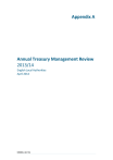 Appendix A Annual Treasury Management Review 2013/14 English Local Authorities April 2014 COUNCIL (24.7.14) 2 Contents Purpose .............................................................................................................. 3 Executive Summary .......................................................................................... 4 Recommendations ............................................................................................ 4 Introduction and Background ......................................................................... 5 1. The Council’s Capital Expenditure and Financing 2013/14 ...... 5 2. The Council’s Overall Borrowing Need ....................................... 6 3. Treasury Position as at 31 March 2014 ..................................... 8 4. The Strategy for 2012/13 ........................................................... 10 5. The Economy and Interest Rates............................................... 11 6. Borrowing Rates in 2013/14 ...................................................... 12 7. Borrowing Outturn for 2013/14 ................................................ 12 8. Investment Rates in 2013/14 ..................................................... 13 9. Investment Outturn for 2013/14 .............................................. 14 10. Other Issues ......................................................................... 17 COUNCIL (24.7.14) 3 Annual Treasury Management Review 2013/14 Purpose This Council is required by regulations issued under the Local Government Act 2003 to produce an annual treasury management review of activities and the actual prudential and treasury indicators for 2013/14. This report meets the requirements of both the CIPFA Code of Practice on Treasury Management (the Code) and the CIPFA Prudential Code for Capital Finance in Local Authorities (the Prudential Code). During 2013/14 the minimum reporting requirements were that the full Council should receive the following reports: an annual treasury strategy in advance of the year (Council 13/02/2013) a mid-year (minimum) treasury update report (Council 10/12/2013) an annual review following the end of the year describing the activity compared to the strategy (this report) In addition, Cabinet has received quarterly treasury management update reports. The regulatory environment places responsibility on members for the review and scrutiny of treasury management policy and activities. This report is, therefore, important in that respect, as it provides details of the outturn position for treasury activities and highlights compliance with the Council’s policies previously approved by members. This Council confirms that it has complied with the requirement under the Code to give prior scrutiny to all of the above treasury management reports by the Finance, Audit and Risk Committee before they were reported to the full Council. COUNCIL (24.7.14) 4 Executive Summary During 2013/14, the Council complied with its legislative and regulatory requirements. The key actual prudential and treasury indicators detailing the impact of capital expenditure activities during the year, with comparators, are as follows: Prudential and treasury indicators Capital expenditure 2012/13 Actual £000 2013/14 Original £000 2013/14 Actual £000 2,472 8,429 11,526 -32,982 -27,306 -23,322 External debt 4,265 3,660 3,060 Investments Longer than 1 year Under 1 year Total 7.00 40.33 47.33 0 41.4 41.4 7.75 29.78 37.53 Capital Financing Requirement: Capital spend was increased during the year from an original budget of £8.429M to an actual of £11.526M. This was mainly due to the purchase of the District Council Offices and the capitalised lump sum contribution to the pension fund. Other prudential and treasury indicators are to be found in the main body of this report. The Strategic Director of Finance also confirms that no borrowing was undertaken for a capital purpose and the statutory borrowing limit (the authorised limit) was not breached. The Council did exceed its Operational Boundary for external debt by £0.319M for nine days in December. This is the limit beyond which external debt is not normally expected to exceed but was breached due to a shortfall in cashflow. The shortfall is thought to have been bought about by the impact on annual cashflow trends of changes to local government finance in 2013/14, such as the retention of business rates and the option for taxpayers to pay council tax by 12 monthly instalments instead of 10. The financial year 2013/14 continued the challenging investment environment of previous years, namely low investment returns. Recommendations The Council is recommended to: 1. 2. Approve the actual 2013/14 prudential and treasury indicators in this report Note the annual treasury management report for 2013/14 COUNCIL (24.7.14) 5 Introduction and Background This report summarises the following: Capital activity during the year; Impact of this activity on the Council’s underlying indebtedness (the Capital Financing Requirement); The actual prudential and treasury indicators; Overall treasury position identifying how the Council has borrowed in relation to this indebtedness, and the impact on investment balances; Summary of interest rate movements in the year; Detailed debt activity; and Detailed investment activity. 1. The Council’s Capital Expenditure and Financing 2013/14 The Council undertakes capital expenditure on long-term assets. These activities may either be: Financed immediately through the application of capital or revenue resources (capital receipts, capital grants, revenue contributions etc.), which has no resultant impact on the Council’s borrowing need; or If insufficient financing is available, or a decision is taken not to apply resources, the capital expenditure will give rise to a borrowing need. The actual capital expenditure forms one of the required prudential indicators. The table below shows the actual capital expend