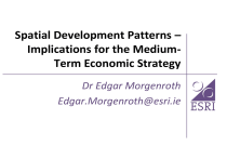 Spatial Development Patterns – Implications for the MediumTerm Economic Strategy Dr Edgar Morgenroth Edgar.Morgenroth@esri.ie Introduction Development is not evenly spread in any country - there is significant heterogeneity across Irish counties and regions. Spatial patterns have developed over a long period through the decisions of individuals, firms and government – the patterns are significantly shaped by market activity. An extensive research literature has shown that spatial patterns impact on macroeconomic performance. The objective of the paper is to identify the impact of these spatial patterns on overall economic performance. This is done with reference to the international and the more limited Irish literature. 2 Population and Job Densities, 2011 (Jobs scaled to the population) Job Density (No. per Sq.km) Population Density (No. per SQ. km) 1 - 10 11 - 50 51 - 150 151 - 1000 0 - 10 11 - 50 51 - 150 151 - 1000 1001 - 36909 1001 - 19575 3 Employment (location of Jobs) by County 2006 and 2011 Population Growth 1986-2011 ed_lcd 6% - 10% pd8691 11% - 15% -7% - 0% 1% - 5% 16%+ Index of Gross Value Added per Capita (100% =National Average) 6 Regional Share in the Recession (real GVA change as share of national) 7 Cavan Donegal Leitrim Louth Monaghan Sligo Laois Longford Offaly Westmeath Galway Mayo Roscommon Dublin Kildare Meath Wicklow Clare Limerick Tipperary NR Carlow Kilkenny Tipperary SR Waterford Wexford Cork Kerry Total Income per Capita, 1991, 2000 and 2010 (100% = National Average) 140% 120% 100% 80% 60% 1991 40% 2000 20% 2010 0% 8 What Drives Growth? Factor accumulation: - Population, - Private capital, - Public capital (infrastructure), - Human capital (education and skills), - Knowledge (R&D, innovation), - Social capital (institutions, laws, trust, leadership etc.). Factors that facilitate factor accumulation - Finance (needed to invest) Factors that increase the efficiency of production factors - Trade (scale and specialisation benefits) 9 Factors are not evenly distributed! What drives the location patterns? What are the macroeconomic implications? Maps (and graphs) cannot answer these questions – econometric analysis is required. 10 Firm Demography and Location Decisions Research on business start-up rates for Ireland including Irish counties found that fast growth in the 2001-2004 period did not lead to higher start up activity nationally but there was a degree of convergence across counties, particularly for counties close to Dublin (Anyadike-Danes et al, 2011). In 2011 49% of IDA supported jobs were located in the Dublin and Mid-East regions (population share is 39%) and this share has been steadily growing. Multinationals appear to have a positive impact on firm entry in manufacturing (Görg and Strobl, 2002) and the firm survival rate (Görg and Strobl, 2003), which suggests that these location patterns are reinforcing the overall spatial pattern of economic activity. 11 Firm Demography and Location Decisions New firm formation rates in the USA are higher in areas of higher industrial density (firms per capita) and faster population growth (Armington and Acs, 2002). There is a strong correlation between the location of venture capital firms and research-intensive biotech firms in the USA (Powell et al 2002). Headquarters cluster disproportionately in larger cities due to the availability of more differentiated business services in larger centres and also because of knowledge spillovers across headquarters (Davis and Henderson, 2008). 12 Density and Specialisation Areas with higher employment densities (cities) have higher productivity (e.g. Ciccone and Hall, 1996, Ciccone, 2002). This is due to the same type of production externalities that generate agglomeration economies e.g. shorter transport distance, increased supply and demand for skilled labour (competition). Firm selection is not a factor in explaining these productivity differences (Combes et al. 2012). Diversity leads to improved local supply linkages, which in turn leads to growth (Quigley, 1998). Regions with declining levels of specialisation tended to grow faster (Krieger-Boden, Morgenroth and Petrakos , 2008). 13 Impact of the Scale Urban Centres Doubling the size of a city increases productivity by between 3% and 8% (Rosenthal and Strange, 2004). Doubling industry scale increases productivity by 4.5% (Nakamura, 1985). Thus, the particular spatial configuration impacts on aggregate economic performance. Take a hypothetical country with one million workers equally distributed across two cities. The estimates by Rosenthal and Strange (2004) and Nakamura (1985) would suggest that if instead there were just one city, total productivity would rise by between 3% and 8%. 14 Rank-Size Relationship for Urban Centres in Selected European Countries Spatial Extent of Agglomeration Economies Agglomeration economies are subject to rapid spatial decay i.e. they are very localised. For example Graham (2009) found that such externalities are confined to a 10 kilometre radius. This implies that agglomeration economies, or critical mass (NSS), cannot be achieved by including the employment or population of a wide hinterland. It also means that simply aggregating a number of urban centres that are some distance apart, such as the Midlands gateway, will not generate the additional productivity due to increased scale. What really matters is the contiguously dense part of the agglomeration. 16 Innovation, R&D Knowledge spillovers are spatially restricted and thus create agglomeration economies (Audretsch, 1998) Industries in which knowledge spillovers are important have a greater propensity to cluster (Audretsch and Feldman, 1996). Informal contacts are an important source for knowledge spilover - the volume and range of such contacts is significantly greater in agglomerations (e.g. Dahl & Pedersen, 2004). Research intensive sectors tend to locate close to universities (Zucker et al, 1998). Innovation per capita ha