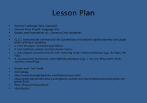 Lesson Title: “Parts of Speech- Singular and Plural Nouns”