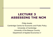 LECTURE 3 ASSESSING THE NCM Philip Arestis Cambridge Centre for Economic and Public Policy University of Cambridge University of the Basque Country Department of Applied Economics V Presentation 1. Introduction 2. Assessing the New Consensus Macroeconomics 3. Summary and Conclusions Presentation 1. Introduction 2. Assessing the New Consensus Macroeconomics 3. Summary and Conclusions Introduction Most Central banks around the world have adopted the NCM in one form or another; It is thus imperative to provide an assessment of both its theoretical and economic policy aspects; We begin with the theoretical aspects. Presentation 1. Introduction 2. Assessing the New Consensus Macroeconomics 3. Summary and Conclusions Assessing the New Consensus Macroeconomics Main Problems (Theory): Liquidity Preference is absent in view of the transversality condition; Central Bank changes the rate of interest and influences the term structure in a stable fashion; But the term structure of interest rates is influenced by a host of other factors, most importantly the market power of the banking sector, i.e. liquidity preference; No banks or monetary aggregates in the model; Assessing the New Consensus Macroeconomics The absence of banks in the NCM implies serious problems; Since banks and their decisions play a significant role in the transmission mechanism of monetary policy; And since decisions by banks as to whether or not to grant credit play a major role in the expansion of the economy (in the sense that a failure of banks to supply credit would imply that expansion of expenditure cannot occur); There is a disjuncture between this analysis and the role of monetary policy; Assessing the New Consensus Macroeconomics And to quote Demosthenes “Commerce proceeds not from the borrower but from the lender, without whose assistance no vessel, no captain, no passenger can stir” (from William Keegan, “I kid you not, we should not make a dash for the exit strategy”, The Observer, 06/09/09); Recent research has exposed these problems further; Assessing the New Consensus Macroeconomics The ‘standard’ NCM model, with no banks and monetary aggregates, is compared with a similar ‘enlarged’ model, which is endowed by including banks that create deposits and make loans; The enlarged NCM model introduces real money balances (essentially cash and bank deposits, the M2 definition of money, which is used for transaction purposes); and real government bond holdings (on the assumption that economic agents use government bonds to manage their liquidity) in the representative household’s utility function. Assessing the New Consensus Macroeconomics Canzoneri et al. (2008) calibrate the two models in an attempt to ascertain the extent of the their differences; Impulse response functions are utilized to study how various shocks infiltrate through the model economies; Two conclusions are relevant for our purposes: Monetary indicators are useful in forecasting inflation in the enlarged NCM model; not so in the standard NCM model; Assessing the New Consensus Macroeconomics Still, the authors do not recommend M2-targeting monetary policy. This is so since a broader measure of liquidity is shown to be a more reliable indicator of inflation than simply M2. The authors readily admit that this is in fact a controversial proposition that deserves more careful scrutiny. The inevitable conclusion from this more recent work is that bank lending to the private sector is more relevant than money for macroeconomic theory and policy. Assessing the New Consensus Macroeconomics The next compelling question is how credit variables should enter equation (1). This can be undertaken through the assumption that marginal utility of consumption depends on credit variables; The standard way is to resort to the utility function models, whereby credit variables are supposed to affect the marginal utility of consumption and, therefore, as such enter equation (1) in the above six-equation model; Assessing the New Consensus Macroeconomics This is the non-separability principle. A utility function is additively separable between consumption and credit variables if it can be separated into two functions, one containing only consumption and the other only credit. If the utility function is not additively separable then the credit variable will enter equation (1). The evidence is mixed when using narrow definitions of credit, which has led authors to argue that without “integrating the credit markets into both the theoretical and the practical analysis of monetary policy is going to be harder” (Friedman, 2003, p. 6). Assessing the New Consensus Macroeconomics In a recent EJ paper, we consider an (otherwise standard) New Consensus Macroeconomics theoretical framework that allows a role for money. We depart from the static money demand formulation and posit a forward-looking money demand function instead. The implication is that money can become an information variable that can help produce more precise estimates about the unobserved variables of the model; Money in our model has an informational role which consists of facilitating the estimation of the unobserved shocks that drive potential output and thus the state of the economy; Assessing the New Consensus Macroeconomics For this purpose we estimate a small-scale sticky price model using Bayesian techniques; Our findings support the view that money has information value. This is reflected in higher precision in terms of unobserved model concepts such as the natural rate of output; We pose an important question in terms of the kind, and the broadness, of monetary aggregates upon which policy makers should focus. Assessing the New Consensus Macroeconomics Price stability has been associated with benefits to the economies pursuing it; but there are problems: Price stability might not be sufficient to avoid serious macroeconomic downturns; and history is replete with examples of periods of relative