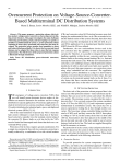 406 IEEE TRANSACTIONS ON POWER DELIVERY, VOL. 22, NO. 1, JANUARY 2007 Overcurrent Protection on Voltage-Source-ConverterBased Multiterminal DC Distribution Systems Mesut E. Baran, Senior Member, IEEE, and Nikhil R. Mahajan, Student Member, IEEE Abstract—This paper proposes a protection scheme which utilizes modern voltage-source converters as fast-acting current-limiting circuit breakers. This paper investigates the main challenges of detecting and localizing a fault, and interrupting it as quickly as possible in a multiterminal dc system. A system protection scheme consisting of smart relays associated with converters has been developed. The protection relays monitor local quantities to detect and isolate disturbances/faults. It is shown that overcurrent-based schemes can be adopted for these relays to meet the fast response requirements. The effectiveness of the proposed protection scheme is illustrated through simulations. Index Terms—DC distribution, power-electronic converters, protection. NOMENCLATURE CDCCB ETO PEBB SES VSC Capacitor dc circuit breaker. Emitter turnoff device. Power-electronic building block. Shipboard electrical system. Voltage-source converter. (CBs) and converter action [6]. Protection becomes more challenging for multiterminal dc lines, as dc CBs are needed to isolate the faulted section of the system. Recently, there have been advances toward the development of dc CBs [7]–[10]. In a recent HVdc application [1], an insulated-gate bipolar transistor (IGBT)-based dc CB was utilized. Furthermore, the new semiconductor devices used in the new converters have the capability to limit and interrupt fault currents [8]. Therefore, it is possible to integrate fault-current handling capability within the new converters and have them behave similar to fast-acting current limiting CBs (i.e., limit and interrupt the fault current [11]). With this new functionality for converters, a new challenge emerges, that the protection scheme should also be able to detect and locate faults more quickly. To achieve this goal, this paper proposes a new protection system using relays embedded into the converters. The application considered is power distribution on a ship. It is shown that by adopting overcurrent-based schemes for these relays, this type of system can be protected against faults on the dc lines. It is also shown that these converter-based relays can detect and isolate faults quite fast, on the order of a few milliseconds. II. DC SYSTEM PROTECTION I. INTRODUCTION T HE emergence of voltage-source converters (VSCs) that use self turnoff power-electronic devices makes dc distribution an attractive alternative for medium- and low-voltage distribution in special applications. Present day applications include dc ties between two systems at medium-voltage levels [1], [2], and dc distribution for industrial parks, space, and shipboard electrical systems (SESs) [3], [4]. One of the main limitations of present day VSCs is that their fault current withstand is much lower than that of thyristorbased converters, typically twice the nominal current rating of the converter [5]. Hence, faults on a dc line fed by the VSCs must be limited and interrupted much faster than those on a conventional HVdc system. Protection of the dc lines requires special consideration. For a simple two-terminal dc line with two converters, protection is usually achieved by a combination of ac-side circuit breakers Manuscript received May 25, 2005; revised January 24, 2006. This work was supported by the Office of Naval Research (ONR) under Award N000014-00-10475. Paper no. TPWRD-00315-2005. The authors are with the Department of Electrical and Computer Engineering, North Carolina State University, Raleigh, NC 27695 USA (e-mail: baran@ncsu. edu; nikhilmahajan@ieee.org). Digital Object Identifier 10.1109/TPWRD.2006.877086 The basic task of the protection scheme proposed here is the same as any other protection scheme—detect and locate any disturbance that can occur on the system and isolate the affected area quickly. The prototype system considered for this study is shown in Fig. 1. It is a revised version of the system considered by the U.S. Navy for SES [12], [13], and it represents a generic multiterminal dc distribution system. The system has two ac sources (generators) feeding the dc line through rectifier converters. The boost-type voltage-controlled bridge rectifiers are rated at 4 MW each, and they convert the 4160-V, three-phase ac voltage to 7 kV dc. In this system, the dc line is a short cable (100 m). Sectionalizers have been placed on the middle of the line so that only one side of the line would be out of service during a fault on the dc line. The loads are supplied through the dc buck converters or inverters. For protection of such a system, relays and protection devices should be placed on the system to detect faults, interrupt fault current, and isolate the faulted part of the system. These design issues are addressed in the following subsections. A. Protection Devices To provide protection for system components (generators, converters, and loads), the conventional approach would be to put CBs at the input and output of the converters in order to facilitate unit protection for each device. 0885-8977/$20.00 © 2006 IEEE Authorized licensed use limited to: IEEE Xplore. Downloaded on April 8, 2009 at 14:03 from IEEE Xplore. Restrictions apply. BARAN AND MAHAJAN: VSC-BASED MULTITERMINAL DC DISTRIBUTION SYSTEMS Fig. 1. Prototype dc distribution system with CBs. The alternative approach, which has been considered here, is to use the converters themselves for fault current interruption. In [11], for example, it has been shown that VSCs used for dc distribution can limit fault current and interrupt it and, hence, they can be used as current-limiting CBs. Furthermore, converters have overcurrent protection on the power semiconductor switches to protect the switches when the current through a switch 