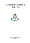 A Guide to Developing a Travel Plan Regeneration & Environment Department Blackburn with Darwen Borough Council Tel: 01254 585 776 Fax: 01254 585 599 Travel Plans – An Introduction Congestion has increased significantly over the past twenty years and with it has come an increase in pollution and growing concerns about the contribution that transport makes to climate change. Businesses and organisations are now being encouraged to consider their own impact on climate change and a Travel Plan can be a very positive way for a company to improve its environmental performance. This document is intended to give an overview of Business Travel Plans, how you can develop a Plan to meet your needs, and the benefits that a Travel Plan could bring to your organisation. Travel Plans are aimed at promoting more sustainable travel to work, they are not anti-car but highlight all the various travel options that are available and offer staff and visitors a real choice in how they travel. A Business Travel Plan seeks to: • Achieve a shift away from single-occupancy car use towards more sustainable forms of transport • Reduce the environmental impact of travel • Encourage healthy active travel • Reduce the need to travel at all An effective Business Travel Plan can: • Reduce the cost of providing and maintaining car parking spaces, releasing land for other uses • Reduce business mileage costs • Reduce fleet management costs • Resolve friction with neighbours – enable and encourage employees, visitors and delivery drivers to park appropriately • Ease recruitment difficulties – ease of access, a clear commitment to staff and cost savings to the employee can make you an employer of choice • Improve the health of staff and reduce stress • Help companies to achieve environmental management certification A good Travel Plan can offer real cost savings for the business and employees, reduce the costs of congestion, improve the quality of employees’ journeys to work and reduce the area of the site given over to car parking. The annual cost of maintaining a parking space can be £300 - £500, the cost of running a Travel Plan is typically £47 for each full time employee. Changes in planning guidance mean that local planning authorities will often require planning applications to be accompanied by a Business Travel Plan where a proposed development is above a certain threshold. Whatever the reason for preparing one, it is better to think of a Travel Plan in terms of an ongoing process rather than a document that sits on the shelf. Travel Plans work best when they are integrated with other management systems, well thought out, sufficiently resourced and promoted on an ongoing basis. Components of a Travel Plan: In order for an effective and successful strategy to be implemented key Travel Plan components are required and these include: Background: Prior to any attempt to influence travel choices information should be collated concerning the travel behaviour of employees, what barriers to modal change exist and what other modes of transport are people willing to consider. Travel surveys and site assessments enable you to set the scene and identify the context into which the Travel Plan must fit. (See example Travel Survey in Appendix A) Objectives: At this stage we need to ask ourselves ‘what are we trying to achieve from our Travel Plan?’ Once you have identified your existing conditions and identified your requirements, realistic, attainable, unambiguous measures and objectives can be developed. Measures: Suitable measures need to be highlighted in order to help attain the set objectives. This process will be very organic and continue to evolve. The selection of measures may be dependent upon budgets and subsequently the influence of diminishing return will apply. It is therefore recommended that long and short term policies and initiatives be developed. It is considered a good idea to put some easy, highly visible measures in place to launch the Travel Plan. (See example Action Plan in Appendix B) Awareness Raising & Marketing: In order to achieve any level of success employees must be made aware of what is happening and become actively involved. By allowing staff/visitors at a site to take ‘ownership’ of the plan it is hoped that a great deal of interest will be generated. A whole range of marketing techniques and awareness raising strategies can be used and an outline approach must be detailed in the plan, but emphasis should be placed upon its flexibility. Monitoring & Target Review: Monitoring is essential, as this will tell you if your Travel Plan is working, and if you are going to reach your targets. It is important to monitor and review the Travel Plan as a whole and each individual initiative. The level of success attained and the need to adopt new tactics or target new sub groups can only be recognised if attitudes to transport and the measures used are monitored from the Travel Plans inception. There are lots more ideas for Travel Plan initiatives at: www.dft.gov.uk/pgr/sustainable/travelplans/ APPENDIX A – Sample Staff Travel Survey Appendix B - Example Action Plan Travel Plan Measures The following are some ideas for actions that can be included within your Business Travel Plan. This list is not exhaustive but the following table is a good guide to how the various measures can be implemented: To promote and encourage public transport use → information on public transport routes available to all staff and visitors → negotiate reduced price tickets with local bus & rail service providers → provision of works buses → interest free loans for purchase of season tickets To promote and encourage cycling → secure covered cycle parking → showers and changing facilities → mileage allowance for short business trips → participate in the national cycle2work scheme To promote and encourage walking → improved walking access → promote the health benefits of w