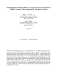 Modeling Spatial Interdependence in Comparative and International Political Economy with an Application to Capital Taxation Robert J. Franzese, Jr. Associate Professor of Political Science The University of Michigan, Ann Arbor franzese@umich.edu Jude C. Hays Assistant Professor of Political Science The University of Michigan, Ann Arbor jchays@umich.edu April 1, 2005 Work in Progress. Comments Welcome. Prepared for presentation at the 63rd Annual Meetings of the Midwest Political Science Association, April 7-10, 2005, Chicago, IL.This research was supported in part by NSF grant #0318045. Earlier or related versions were presented at the 61st and 62nd Annual Meetings of the Midwest Political Science Association in 2003 and 2004 respectively, at Tulane and Harvard Universities in 2003, the University of Texas at Austin and the Wissenschaftszentrum-Berlin in 2004, the 21st Annual Summer Meetings of the Society for Political Methodology, the 100th Annual Meeting of the American Political Science Association in 2004, and at Yale University in 2005. We thank Chris Achen, James Alt, Kenichi Ariga, Kerwin Charles, John Dinardo, John Freeman, Mark Hallerberg, Mark Kayser, Hasan Kirmanoglu, Xiaobo Lu, Megan Reif, and Frances Rosenbluth for useful comments. We are grateful to Mark Hallerberg and Duane Swank for giving us their data. Xiaobo Lu also provided excellent research assistance. We alone are responsible for any errors. Introduction This paper examines globalization and capital taxation, emphasizing the implied strategic dependence among countries in fiscal policymaking and the resultant spatial interdependence (contemporaneous correlation) of capital tax rates in time-series-cross-sectional data. Methodologically, we evaluate common strategies for modeling empirically this interdependence and propose our own alternatives. Substantively, we find that several recently published studies understate the degree of spatial interdependence in capital taxes. Our arguments, which apply broadly to empirical studies in comparative and international political economy, will help applied researchers better assess the relative importance of internal (domestic) versus external (international) determinants of tax policy as well as other important political and economic variables. There are currently two basic approaches to addressing spatial interdependence. Some scholars treat the interdependence as “substance” to be modeled using spatial lags as right-handside variables. Great care is taken to identify the nature of the spatial dependence and the underlying mechanisms that create it (e.g., Basinger and Hallerberg 2004, Simmons and Elkins 2004). These studies use theoretically informed spatial weights to generate their spatial lags, which then are used to test hypotheses about strategic interdependence or policy diffusion more generally. Others treat the spatial interdependence in their data as a “nuisance.” Most often the spatial interdependence is relegated to the stochastic component of the regression model and standard error estimates are corrected to account for non-spherical disturbances (e.g., Garrett and Mitchell 2001, Swank and Steinmo 2002). Some studies employ spatial lags but treat them solely as nuisance controls, rather than interpreting them (also) as models of diffusion, which is analogous 1 to using (temporally) lagged dependent variables as nuisance controls for serial correlation and ignoring their implications as models of dynamics. Simple, arbitrary spatial weights such as 1/(N-1) are used frequently is these studies (e.g., Franzese 2002, Hays 2003). We argue scholars should not confine the spatial dependence in their data to the error term because it is likely to be ignored when it comes to interpreting their regression results.1 If spatial dependence is overlooked, studies will be biased toward finding domestic, internal factors are more important that international, external ones. Moreover, scholars who use spatial lags as “nuisance” controls should provide some theoretical and (or) empirical justification for their spatial weights. Arbitrary weights produce lags that fail to capture adequately the spatial interdependence in the data. For those whose expertise or interests lie primarily in the relationships between domestic variables, and are therefore inclined to treat spatial interdependence as a “nuisance”, we offer a simple middle-of-the-road approach to generating empirically grounded spatial lags that can be used to implement either the spatial-OLS or spatial-2SLS estimators (Franzese and Hays 2004). We recommend this to the standard “nuisance” estimator: non-spatial OLS with panel corrected standard errors (Beck and Katz 1995). Spatial OLS (S-OLS) with PSCE’s often outperforms non-spatial OLS with PCSE’s (OLS-PCSE) in terms of efficiency with very little cost in terms of overconfidence. The advantages of the spatial estimators over non-spatial OLS are much more pronounced under other conditions. For those who are already estimating models with spatial lags (e.g., Franzese 2002, Hays 2003, Basinger and Hallerberg 2004), we evaluate and, under most circumstances, recommend the use of spatial 2SLS (Franzese and Hays 2004).2 1 For a similar argument about temporal dependence, see Beck and Katz (1996). 2 See Franzese and Hays (2004) for a lengthy discussion of the spatial 2SLS estimator. In short, this estimator uses spatially weighted X’s as instruments for the endogenous spatial lag. 2 Our paper is organized as follows. We begin with a brief review of the empirical debate over the relative importance of internal and external determinants of capital tax policy. Then, in the second section, we present one of Persson and Tabellini’s models of capital tax competition to illustrate the strategic interdependence in fiscal policymaking and to motivate our concern with spatial dependence. Section three briefly discusses the performance of non-spatial OLS to SOL