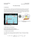 University of Michigan February 2005 Physics 441-442 Advanced Physics Laboratory X-ray Spectroscopy 1. Introduction X-rays are KeV photons. Atomic X-rays are emitted during electronic transitions to the inner shell states in atoms of modest atomic number. These X-rays have characteristic energies related to the atomic number, and each element therefore has a characteristic X-ray spectrum. In this experiment you will use a high resolution solid-state X-ray detector to record the characteristic spectra of several elements, repeat the pioneering work of Moseley relating X-ray energies to atomic number, and also explore the use of X-rays as a diagnostic tool for sample identification. Fig. 1b – The Alpha Particle X-Ray spectrometer on the Mars Rover Figure 1a – X-rays from Mars 2. X-Ray Spectra of the Elements Required reading: Haken & Wolf, Chapter 18. Recommended: Eisberg & Resnick 9.8; McGervey 4.1 2.1 Energetic electronic transitions In the simplest model of electronic transitions in hydrogen-like atoms, an electron loses energy by moving between states with principle quantum numbers ninitial and n final , and a photon is emitted with energy E! = E(ni ) " E(n f ) = % 1 me4 Z 2 % 1 1( 1( 2 " = 13.6 + Z " eV ' * ' 2 2* 2(4#$ 0 )2 h 2 & n2f ni2 ) & n f ni ) 2 May, 2005 X-Ray Spectroscopy In complex atoms, the inner shells remain hydrogen-like, so we may continue to use this formula as long as ni and n f are small. The single necessary correction is to account for the fact that electrons of a given ni do not see the full charge of the nucleus because it is obscured by the electrons in lower lying shells. This reduces the Z by some effective screening factor s, thus: 2$ 1 1' E! = E(ni ) " E(n f ) = 13.6 # Z " s & 2 " 2 ) eV % n f ni ( ( ) (1) If s is small and Z is greater than 10, the typical photon energy is of order 1 KeV, these are X-rays. There is also a well-defined relationship between the photon energy and the atomic number. As a specific example, for the transitions from ni = 2 to n f = 1 (which are otherwise known as the K! transitions), we expect E! = 3E0 Z " s ; E0 = 13.6 eV 4 ( ) (1a) Given measurements of the K! X-ray energies for a series of elements, a plot of the square root of the energy vs. Z should be a straight line with slope that measures the ionization energy of hydrogen, and intercept which measures the screening factor for 2 ! 1 transitions. Once the screening factor is known, the K! X-ray energy can be used to calculate the Z of any unknown sample. The logic of this regularity in the X-ray spectra was first laid out by H. G. Moseley in 1913, and he used it to establish the existence of the atomic numbers, resolve the inconsistencies in the placement of Co vs. Ni, and Ar vs. K in the periodic table (which, prior to this point, had been arranged by atomic weight), and predict the existence of new unseen elements at Z=43, 61, 72, and 75. Moseley also discovered the expected arrangement of the X-ray lines into families reflecting the combinatorics in n f and ni . A chart of the K, L, and M families is shown at the top of the next page. The K X-rays are the various transitions to n f = 1 : K! is the 2 ! 1 transition, K ! 1 is the 3 ! 1 transition, K ! 2 is the 4 ! 1 transition. The L lines are transitions to n f = 2 , and the M lines are transitions to n f = 3 . Note that with very high resolution it is possible to see the spin-orbit splittings. For instance, as you can see in Fig. 2, with sufficiently precise detectors, the K! line could be resolved into the separate K! 1 and K! 2 lines, which measure the energy difference between the J = 3/2 and J=1/2 orbitals for n=2. 2.2 Induced X-ray Emissions The energetic transitions described above will occur when a vacancy appears in an inner shell and an outer shell electron falls into the open state. The inner shell vacancy can be artificially induced in two ways: 3 May, 2005 X-Ray Spectroscopy Figure 2 – X-ray Nomenclature (from Feldman & Mayer, Fundamentals of Surface and Thin Film Analysis) a) The sample can be irradiated with some kind of high energy particles, which literally knock electrons from their orbitals, creating the vacancies, and allowing the processes above. This is called Particle Induced X-ray Emission, or PIXE. In this experiment, we will use a radioactive alpha source to provide the bombardment. Alpha-PIXE plus solid-state X-ray detection is one of the chemical analysis techniques used on the Mars Rover missions. See: http://athena.cornell.edu/the_mission/ins_apxs.html http://athena.cornell.edu/pdf/tb_apxs.pdf b) Alternatively, if there is another source of X-rays, these can be used to irradiate a sample and provide the induced X-rays. This is called X-ray fluorescence. 2.3 Other X-ray sources A number of radioactive nuclei are fortuitous X-ray sources. Co-57 decays to Fe-57 by inverse betadecay, capturing an electron from an inner orbital. The new Fe nucleus finds itself in an unstable spin state and decays electromagnetically to lower energy states, emitting 122 KeV and 14 KeV photons (see decay scheme on next page). In addition, since it was born via electron capture, the new Fe atom is missing an inner shell electron, and thus will also emit characteristic Fe X-rays, such as the prominent K! line at 6.4 KeV. Cd-109 is a similar electron capture source, May, 2005 4 X-Ray Spectroscopy Figure 3 – Co-57 Decay Scheme emitting an 88 KeV photon from the nuclear excitation in addition to Ag X-rays. Fe-55 is also a familiar X-ray source, which also decays by electron capture, and emits Mn X-rays. Note that it is more usual to find radioactive nuclei that emit gamma rays (MeV photons) rather than X-rays. Finally, note that X-rays can be easily created by boiling electron off of a filament, accelerating them across a gap of a few KeV, and stopping them with a target, where the rapid deceleration causes stopping radiation or bremsstrahlung in the X-ray region. The typical energy spectrum of these X-rays is 
