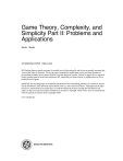 Game Theory, Complexity, and Simplicity Part II: Problems and Applications Martin Shubik SFI WORKING PAPER: 1998-04-028 SFI Working Papers contain accounts of scientific work of the author(s) and do not necessarily represent the views of the Santa Fe Institute. We accept papers intended for publication in peer-reviewed journals or proceedings volumes, but not papers that have already appeared in print. Except for papers by our external faculty, papers must be based on work done at SFI, inspired by an invited visit to or collaboration at SFI, or funded by an SFI grant. ©NOTICE: This working paper is included by permission of the contributing author(s) as a means to ensure timely distribution of the scholarly and technical work on a non-commercial basis. Copyright and all rights therein are maintained by the author(s). It is understood that all persons copying this information will adhere to the terms and constraints invoked by each author's copyright. These works may be reposted only with the explicit permission of the copyright holder. www.santafe.edu SANTA FE INSTITUTE 1 October 30, 1997 GAME THEORY, COMPLEXITY AND SIMPLICITY PART II: Problems and Applications Martin Shubik In Part I an expository overview of the basic concepts of the theory of games was presented. The different forms for representing a game were noted and the various solutions were discussed and illustrated. Here we examine the highly different approaches adopted by those who regard themselves as game theorists and by those others who utilize game theory We examine the four most important distinctions in the many approaches to the uses and development of the theory of games. We consider: 1. Game theory as mathematics; 2. Game theory as science; applied science and social engineering, 3. Game theory as philosophy; 4. Game theory as prescience and as advocacy. Game theory as mathematics Mathematics may be the handmaiden of both science and philosophy when utilized in conjunction with these activities. But it stands alone as an art form which can (but need not ) be pursued with no immediate application in mind. The primitives accepted or the basic axioms postulated may often be based upon some individual's model of some aspect of activities and institutions in the surrounding world. However, the mathematical development of the basic models postulated need not reflect a scientific concern with any particular set of observable phenomena. The mathematically oriented game theorist may devote his or her time and abilities to the development of analytical`or computational tools to solve game theoretic problems in abstracto caring little about empirical relevance or even metaphor between the results obtained and the relevance of the results to a scientific study. (1) Preference and utility theory Several subfields have developed along with the analysis of games of strategy. In . particular the study of preferences and utility is a virtually independent subject. Daniel Bernouilli (1738, 1954) first suggested that an individual’s subjective valuation of wealth increases at a diminishing rate. Over two hundred years later von Neumann and Morgenstern (1944) provided the precise axioms establishing the existence of a utility function given an individual with a complete preference ordering over a set of riskless options who is permitted to gamble over “lottery 2 tickets” or risky combinations involving the options. Shapley (1975) produced a different set of axioms for measurable utility based on the comparison of intensity of preferences. A comprehensive survey by Fishburn (1994) provides an overview of utility theory including some of the debate on the psychological basis for different approaches. However the point stressed here is that the seminal work of von Neumann and Morgenstern heralded the widespread utilization of formal axiomatic models1 in the social sciences and led to the growth of a large formal literature on the study of a variety of preference structures. Among the preference structures which have been investigated are fully ordered preferences (any order preserving transformation leaves them uninfluenced); preferences represented by a utility function (where only linear transformations do not influence the valuation); preferences anchored to an absolute zero; preferences which are partially ordered (this means that there are some pairs of outcomes which cannot be ranked with each other); lexicographic preferences where the valuation is made in several dimensions; for example speed of typing may be the most important desired talent for a secretary, but if there are two secretaries with equal talent , one goes to the next dimension, say his ability to take dictation. This secondary attribute is used as the tie breaker. The formal definition of a game requires a way to describe “payoffs” or the worth of the outcomes of the game. Preference and utility theory provide the needed valuation. An enormous simplification of the mathematics of all cooperative solutions theories can be had by assuming that not only are preferences representable by a utility function defined up to a linear transformation, but that there exists a special commodity which we could call “manna” or “soma” or “transferable utility” or “ideal gold” or “money” such that the preferences of all players are linear for this commodity. If such a commodity exists in sufficient quantity and is appropriately distributed among all agents, then it can serve as a side payment mechanism among the players in any coalition2. (2) The extensive and strategic forms of a game Among the many seminal contributions of von Neumann and Morgenstern(1944) was the provision of a set theoretic description of the fine structure or extensive form of a game. Their notation and description was improved on by Kuhn (1953). The key observation is that an Although there had been earlier axiomatizations of subjective probability (See Fishburn, 1994, p.1401) 1 