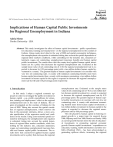 2007 M. Jarvin Emerson Student Paper Competition. JRAP 37(3):279-286. © 2007 MCRSA. All rights reserved. Implications of Human Capital Public Investments for Regional Unemployment in Indiana Adela Nistor Purdue University - USA Abstract: This study investigates the effect of human capital investments - public expenditures for education, training and employment - on the regional unemployment in the counties of Indiana. Using county-level data for the year of 2000 and spatial econometric techniques, the unemployment rate equation is estimated taking into account the spatial dependence of regional labor markets conditions, while controlling for the industry mix, education attainment, wages, net commuting, unemployment insurance benefits and human capital public investments. The results show that the county-level applied human capital investments can be a policy that decreases the regional unemployment rate. Evaluated at the sample mean value of net commuting rate of -0.15, the regional unemployment rate is expected to decrease by 0.33 percentage point with a ten million dollars human capital investment in a county. The greatest impact of human capital investments is in counties with very low net commuting rates. A county with minimum commuting benefits more from human capital investments than a county with maximum commuting: a ten million dollars investment in human capital in the region is expected to decrease the regional unemployment rate by 0.46 and 0.10 percentage point respectively. 1. Introduction In this study I adopt a regional economic approach in order to investigate the public investment in human capital - e.g., public expenditures for education, training and employment - effect on the regional unemployment rate in the state of Indiana. The regions investigated are the counties of Indiana for the year of 2000. Taking into account the spatial correlation of regional unemployment, which removes the bias in the parameter estimates, allows a more accurate specification of the regression model and confidence in the results. Using cross-sectional spatial econometric techniques, the unemployment rate equation is estimated taking into account the spatial dependence of regional labor market conditions, while controlling for the industry mix, education attainment, wages, net commuting, unemployment insurance benefits and human capital public investments. The results show that county-level applied human capital investments can be a policy that decreases the regional unemployment rate. Evaluated at the sample mean value of net commuting rate of –0.15, a ten million dollars human capital investment in a county is expected to decrease the regional unemployment rate by 0.33 percentage point. The greatest impact of human capital public investments is in counties with very low net commuting rates. A county with minimum commuting benefits more from human capital investments: a ten million dollars investment in human capital in the region is expected to decrease the regional unemployment rate by 0.46 percentage point. The role played by human capital in fostering regional growth is a major topic for research (Lucas 1988; Nijkamp and Poot 1988; Martin and Sunley 1998) as current growth theories stress the role of educational investments in promoting regional economic growth. Human capital investments - expenditures on education, training, health information and labor mobility (Weisbrod 1961) – has been acknowledged as generating spillover effects, increasing the regional 280 labor force and regional capital stock productivity (Lucas 1988). In order to understand the relationships between human capital investments and the geography of growth, it is necessary to consider and understand the links between human capital investments and employment both within and between regions, in order to ensure that public policy regarding human capital can be effective as means of promoting regional economic development. The effect on unemployment of human capital investments is relevant in relation to labor market policy and individual welfare, throwing light on the unemployment rate, which is one of the most used indicators of the socio-economic balance of a country or region. 2. Literature review There is an extensive literature estimating the impact of education expenditures on personal income (Bensi at al. 2004); economic growth (Keller 2006); income inequality (Sylwester 2002; Biggs and Jayasri 1999); school enrollment (Lopez-Acevedo and Salinas 2000) and poverty (Gustafsson and Li 2004). Other studies look at the impact of public investment in particular support program on firm level productivity (Bhorat and Lundall 2004; Marshall et al. 1993; Smallbone et al. 1993); individual earnings, employment probabilities (Lechner 2000; Jenkins et al. 2003) and welfare of the disabled (Chatterjee and Mitra 1998). The empirical evidence of firm-sponsored investment in its employees‟ human capital (on-the job training) and off-the job training find a negative correlation between on-the-job training and job mobility and a positive correlation between off-the-job training and job mobility (Loewenstein and Spletzer 1999; Lynch 1991; Zweimuller and Winter-Ebmer 2000); negative relationship between firm-sponsored training and starting wages but positive relationship to wage growth (Veum 1999). The empirical work on the relationship between public investments in human capital and regional unemployment is scarce and do no provide consistent results. Doeringer et al. (1987), Sander and Schaeffer (1991) find a weak and insignificant effect of education expenditures on employment in the areas within Massachusetts and US urban counties respectively. Quan and Beck (1987) find positive and significant effects of education expenditures on the level of wages and employment for the Northeast US states and the reverse for the Southeast and Southwest US states. Other studies find a positive relationship between education expenditur