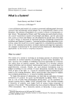 25, Social Networks, 3(1981) @Elsevier Sequoia 29-40 S.A., Lausanne - Printed in the Netherlands What is a System? Frank Harary and Mark F. Bate11 University of Michigan ** A new definition and model of a system is presented utilizing graph theoretic concepts and introducing nested graphs. By a comprehensive search of the literature, this abstract formulation of a system is shown to incorporate extant theory. The approach of Emery and Trist using open and closed systems, the system-environment model of Cartwright and Harary, and the structural role system of Oeser and Harary are all subsumed as special cases. The value of such a theory is discussed in statistical terms by considering correlational problems and Simpson’s paradox. A general problem-solving algorithm is presented, using this model of a system, suggested by a simultaneous generalization of the statistical procedures of cluster analysis and stagewise regression. An example is interpreted in the nested network framework, illustrating the applicability of the model to empirical situations. What is a system? The notion of a system is receiving an increasing amount of attention from researchers in several branches of sociology as well as other disciplines. To date, however, the problem of definition has been approached in a descriptive rather than an analytic manner. Our objective is to develop a precise logical definition and an abstract mathematical model of a system based on graph-theoretic concepts. Clearly, any such abstract formulation must be judged according to two criteria. It must adequately describe the existing body of data in the field, i.e., it must be consistent with the definitions proposed in the existing literature. Also it must provide a firm basis for realistic and verifiable predictions, i.e., it must be testable empirically. To begin this process of abstraction, we look first at a selection of extant definitions of a system. To quote von Bertalanffy (in Miller 1965), “A system is a set of units with relationships among them”. In his exposition on general systems theory, Miller (1965) proposed that “The universe contains a hierarchy of systems, each higher level of system being composed of systems of low levels”. This sentiment has been echoed by Simons’ (in Miller 1965) description: “By a hierarchic system, or hierarchy, I mean a system *Research supported in part by NSF grant SOC 76-16824. **Research Center for Group Dynamics, Institute for Social Research, Ann Arbor, MI 48106, U.S.A. The University of Michigan, 30 b1 Hararlj and M. I? Bate11 that is composed of interrelated subsystems, each of the latter being, in turn, hierarchic in structure until we reach some lowest level of elementary subsystem”. On the other hand, McConnell (1977) states, “Anything that is itself alive - or that is made up of living things - can be thought of as a living system of some kind. You are alive; so you are a living system. But your family is made up of living organisms, hence your family is also considered a living system”. In each of the ideas presented above, two common themes emerge. First, all conceptions of ‘system’ involve a set of units and their interrelationships. Since any binary relation has a natural representation as a graph or digraph, the points being the units (people, groups, or larger aggregations) and the lines the relations between them, a graph-theoretic approach immediately suggests itself. Secondly, systems are viewed in all of the above quotations as possessing a hierarchical or nested structure. These two ideas are precisely the motivating forces of our approach. Following Harary ( 1969), a graph consists of a finite nonempty collection of objects called points (or vertices) together with a collection of unordered pairs of points called &es (or edges). Letting the points represent people and the lines stand for recognized genealogical relationships, we obtain a convenient diagrammatic expression for a kinship system. A diugraph is a set of points, with ordered pairs of points called urcs. A communication system can be illustrated with digraphs by letting the points stand for people and the arcs for the flow of interpersonal communication. By attaching a positive or negative sign to each line of a graph, a signed graph is obtained. Signed graphs have been fruitfully utilized in a representation of Heider’s balance theory in an interpersonal relations system. In addition to the three examples of the types of graphs mentioned above, we allow any combination of these types in a single model which we group under the generic term ‘graph’. To accommodate the desired hierarchical structure we define a ‘nested graph’ in which the points of a graph at a given level are graphs of lower levels. This notion of hierarchically nested structure is prevalent throughout the literature. In Table 1 we have present a few illustrations indicative of the range and variety of the occurrence of this idea. The theory of sets provides an exceptionally clear picture of this type of structure. In his pioneering work, Bertrand Russell was prompted to endow sets with a similar structure to avoid the ‘Spanish barber paradox’. (In a certain small Spanish town, usually called Seville, the only barber shaves all those and only those people who do not shave themselves. Who shaves the barber?) Russell developed the theory of types of sets to resolve in general all paradoxes of this type. According to Russell: A set of type 0 is just a single element of a nonempty set of elements U, f..> V > .‘.> sometimes called points. A set of type 1 is a nonempty set of points, i.e., of sets of type 0. A set of type 2 is a nonempty set whose elements are sets of type 1. In general, the members of a set of type i are themselves sets of type i - 1. 3 4 5 6 7 8 9 10 11 12 13 14 0 1 2 Levels Table 1. quarks particles atoms molecules Physics species genus family order class phylum kingdom Biology matter stars gala