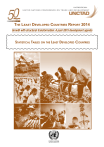 UNCTAD/LDC/2014 U N I T E D N AT I O N S C O N F E R E N C E O N T R A D E A N D D E V E L O P M E N T The Least Developed Countries Report 2014 Growth with structural transformation: A post-2015 development agenda Statistical Tables on the Least Developed Countries New York and Geneva, 2014 Statistical Tables on the Least Developed Countries 152 The Least Developed Countries Report 2014 Annex table 1. Indicators on LDCs’ development Country GNI per capita (Current dollars)a 2013 Afghanistan Angola Bangladesh Benin Economic Vulnerability Indexb (EVI) Human Assets Indexc (HAI) Income level Human Development Index (HDI) Value CDP 2012 review Rank 2013 Multidimensional Poverty Index (MPI)d Value 2013 700 38.8 22.5 Low income 0.47 169 5,010 51.3 31.6 Upper middle income 0.53 149 0.29 .. 900 32.4 54.7 Low income 0.56 142 0.24 790 36.2 41.1 Low income 0.48 165 0.40 2,460 44.2 59.0 Lower middle income 0.58 136 0.13 Burkina Faso 670 37.5 29.2 Low income 0.39 181 0.51 Burundi 280 57.2 20.8 Low income 0.39 180 0.44 Cambodia 950 50.5 57.9 Low income 0.58 136 0.21 Central African Republic 320 35.7 21.6 Low income 0.34 185 0.42 1,020 52.8 18.1 Low income 0.37 184 .. Comoros 880 49.9 45.3 Low income 0.49 159 .. Democratic Republic of the Congo 400 35.4 21.7 Low income 0.34 186 0.40 1565e 46.3 42.4 Lower middle income 0.47 170 0.13 14,320 43.7 43.0 High income: non-OECD 0.56 144 .. Eritrea 490 59.0 35.6 Low income 0.38 182 .. Ethiopia 470 33.5 28.2 Low income 0.44 173 0.54 Gambia 510 67.8 49.2 Low income 0.44 172 0.33 Guinea 460 28.6 36.8 Low income 0.39 179 0.55 Guinea-Bissau 520 60.5 34.2 Low income 0.40 177 0.49 Haiti 810 47.3 35.6 Low income 0.47 168 0.24 Kiribati 2,620 82.0 86.9 Lower middle income 0.61 133 .. Lao People's Democratic Republic 1,460 37.1 61.4 Lower middle income 0.57 139 0.19 Lesotho Bhutan Chad Djibouti Equatorial Guinea 1,550 45.9 62.1 Lower middle income 0.49 162 0.23 Liberia 410 61.0 38.5 Low income 0.41 175 0.46 Madagascar 440 38.0 52.5 Low income 0.50 155 0.42 Malawi 270 51.9 44.1 Low income 0.41 174 0.33 Mali 670 36.8 30.2 Low income 0.41 176 0.53 1,060 44.2 47.1 Lower middle income 0.49 161 0.36 590 44.4 30.7 Low income 0.39 178 0.39 994 e 45.0 68.8 Low income 0.52 150 .. Nepal 730 27.8 59.8 Low income 0.54 145 0.20 Niger 410 38.6 24.3 Low income 0.34 187 0.58 Rwanda 620 47.3 42.2 Low income 0.51 151 0.35 Sao Tome and Principe 1,470 46.1 74.9 Lower middle income 0.56 142 0.22 Senegal 1,070 36.1 47.0 Lower middle income 0.49 163 0.39 680 48.5 24.8 Low income 0.37 183 0.41 Solomon Islands 1,610 55.2 65.1 Lower middle income 0.49 157 Somalia 111 e 50.1 1.4 Lower middle income .. South Sudan 1,120 .. .. Lower middle income .. Sudan 1,130 44.4 52.6 Lower middle income 0.47 166 .. Timor-Leste 3,580 53.3 48.1 Lower middle income 0.62 128 0.32 166 0.26 0.36 Mauritania Mozambique Myanmar Sierra Leone Togo Tuvalu Uganda United Republic of Tanzania .. 0.50 .. 530 35.4 45.5 Low income 0.47 6,630 63.9 88.1 Upper middle income .. 510 36.2 45.8 Low income 0.48 164 .. 630 28.7 40.1 Low income 0.49 159 0.33 Vanuatu 3,130 46.8 77.7 Lower middle income 0.62 131 0.13 Yemen 1,330 38.5 52.3 Lower middle income 0.50 154 0.19 Zambia 1,480 53.0 36.9 Lower middle income 0.56 141 0.32 Source: United Nations Committee for Development Policy (CDP) database, 2012 review; World Bank, World Development Indicators database; United Nations, UNdata database; UNDP. Human Development Report 2014; World Bank Economies Income classification (accessed August 2014). Notes: a)GNI current dollars Atlas method, World Bank, World Development Indicators database (accessed August 2014); b) EVI: higher values indicate higher vulnerablity. See explanotory notes at http://www.un.org/en/development/desa/policy/cdp/cdp_ publications/2008cdphandbook.pdf c) HAI: lower values indicate weaker human asset development. See explanotory notes at http://www.un.org/en/development/desa/policy/cdp/ cdp_publications/2008cdphandbook.pdf d) MPI: higher values indicate population multidimentionally poor. See explanatory notes for HDR composite indices at http://hdrstats.undp.org/images/explanations/PSE.pdf e) Average 2010-2012 for Djibouti, Myanmar and Somalia. Source: UNdata, National Accounts Main Aggregates Database (accessed August 2014). 153 ANNEX: Statistical Tables on the Least Developed Countries Annex table 2. Real GDP growth rate for individual LDCs, 2008–2014 (Annual growth rates, per cent) 2008 2009 2010 2011 2012 2013 Afghanistan 3.9 20.6 8.4 6.5 14.0 3.6 Angola 13.8 2.4 3.4 3.9 5.2 4.1 Bangladesh 6.0 5.9 6.4 6.5 6.1 5.8 Benin 5.0 2.7 2.6 3.3 5.4 5.6 Bhutan 10.8 5.7 9.3 10.1 6.5 5.0 Burkina Faso 5.8 3.0 8.4 5.0 9.0 6.8 Burundi 4.9 3.8 5.1 4.2 4.0 4.5 Cambodia 6.7 0.1 6.1 7.1 7.3 7.0 Central African Republic 2.1 1.7 3.0 3.3 4.1 -36.0 Chad 3.1 4.2 13.6 0.1 8.9 3.6 Comoros 1.0 1.8 2.1 2.2 3.0 3.5 Dem. Republic of the Congo 6.2 2.9 7.1 6.9 7.2 8.5 Djibouti 5.8 5.0 3.5 4.5 4.8 5.0 Equatorial Guinea 12.3 -8.1 -1.3 5.0 3.2 -4.9 Eritrea -9.8 3.9 2.2 8.7 7.0 1.3 Ethiopia 11.2 10.0 10.6 11.4 8.5 9.7 Gambia 5.7 6.5 6.5 -4.3 5.3 6.3 Guinea 4.9 -0.3 1.9 3.9 3.8 2.5 Guinea-Bissau 3.2 3.0 3.5 5.3 -1.5 0.3 Haiti 0.8 3.1 -5.5 5.5 2.9 4.3 Kiribati 2.8 -0.7 -0.5 2.7 2.8 2.9 Lao People's Dem. Republic 7.8 7.5 8.1 8.0 7.9 8.2 Lesotho 5.1 4.5 5.6 4.3 6.0 5.8 Liberia 6.0 5.1 6.1 7.9 8.3 8.0 Madagascar 7.2 -3.5 0.1 1.5 2.5 2.4 Malawi 8.3 9.0 6.5 4.3 1.9 5.0 Mali 5.0 4.5 5.8 2.7 0.0 1.7 Mauritania 3.5 -1.2 4.3 4.0 7.0 6.7 Mozambique 6.8 6.3 7.1 7.3 7.2 7.1 Myanmar 3.6 5.1 5.3 5.9 7.3 7.5 Nepal 6.1 4.5 4.8 3.4 4.9 3.6 Niger 9.7 -0.7 8.4 2.3 11.1 3.6 Rwanda 11.2 6.2 7.2 8.2 8.0 5.0 Sao Tome and Principe 9.1 4.0 4.5 4.9 4.0 4.0 Senegal 3.7 2.4 4.3 2.1 3.5 4.0 Sierra Leone 5.2 3.2 5.3 6.0 15.2 16.3 Solomon Islands 7.1 -4.7 7.8 10.7 4.9 2.9 Somalia .. .. .. .. .. .. South Sudan .. .. .. .. .. 24.4 Sudan .. .. .. .. .. 3.4 Sudan (former) 3.0 4.7 3.0 -1.2 -3.0 .. Timor-Leste 14.6 12.8 9.5 12.0 9.3 8.4 Togo 2.4 3.5 4.1 4.8 5.9 5.6 Tuvalu 8.0 -4.4 -2.7 8.5 