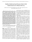 Submission to The Proceedings of the IEEE, Special Issue on Recent Advances in Distributed Multimedia Communications 1 Quality-Optimized and Secure End-to-End Authentication for Media Delivery Qibin Sun, Member, IEEE, John Apostolopoulos, Senior Member, IEEE, Chang Wen Chen, Fellow, IEEE, and Shih-Fu Chang, Fellow, IEEE Abstract—The need for security services, such as confidentiality and authentication, have become one of the major concerns in multimedia communication applications, such as video on demand and peer-to-peer content delivery. Conventional data authentication can not be directly applied for streaming media when an unreliable channel is used and packet loss may occur. This paper begins by reviewing existing end-toend media authentication schemes, which can be classified into stream-based and content-based techniques. We then motivate and describe how to design authentication schemes for multimedia delivery which exploit the unequal importance of different packets. By applying conventional cryptographic hashes and digital signatures to the media packets, the system security is similar to that achievable in conventional data security. However, instead of optimizing packet verification probability, we optimize the quality of the authenticated media, which is determined by the packets which are received, decodable, and authenticatable. The quality of the authenticated media is optimized by allocating the authentication resources unequally across streamed packets based on their relative importance, thereby providing unequal authenticity protection (UAP). The effectiveness of this approach is demonstrated through experimental results on different media types (image and video), different compression standards (JPEG, JPEG2000, and H.264) and different channels (wired with packet erasures and wireless with bit errors). Index Terms—media authentication, media security, streaming media authentication, stream authentication, video streaming I. M INTRODUCTION EDIA communication over heterogeneous networks is continuing to increase in practical importance, enabled by the rapid growth of network bandwidth, improved compression formats [1], and advanced delivery technologies such as content delivery networks [2] and peer-to-peer systems [3][4][5]. This is also evident in many commercial services and applications like IPTV (i.e., Internet Protocol Television), multimedia messaging, video conferencing, video surveillance, and so on. However, security issues such as confidentiality, authentication and secure media adaptation [6][7] are also becoming serious concerns. For instance, the content sender wants to ensure that his content can only be viewed by authorized people, and the content viewer also wants to ensure that the received content is indeed from the right sender and that it has not been accidentally or maliciously altered. Confidentiality of the content, to limit user’s access, which is achieved by encryption has received considerable attention in recent years [8][9][10][11]. In this paper we examine the problem of authentication for media delivery. While data authentication is well understood and many practical solutions exist, authentication for streaming media is challenging because the media delivery is often over an unreliable channel where packet loss may occur. Specifically, when streaming over a lossy packet network individual packets in the stream could be lost or modified during transmission. Media authentication is a relatively new research area compared to other traditional research areas such as multimedia compression. Researchers in different areas and with different technical backgrounds may use different definitions for media “authentication”. For example, the biometrics community may use the term authentication to mean source (e.g., face, fingerprint) identification or verification; the multimedia watermarking community usually uses the term authentication to refer to content integrity protection; Note that content integrity protection based on digital watermarking [12][13] is another attractive research area with many potential applications such as video surveillance [14]. Throughout this paper, we define authentication as the process by which the authorized receivers, and perhaps the arbiters, determine whether a specified data has, with very high probability, been (1) sent by the authorized sender and (2) has not been subsequently altered or substituted for [15] (page. 382). In other words, authentication will answer two questions: (1) who sent the data (non-repudiation), and 2) whether the received data has been altered or not (data integrity). Therefore, in this paper the term authentication means both source and data authentication. To maintain the security performance at a computationally infeasible level for potential attackers, the above definition usually requires that the received media must be identical to what was sent, as in the case of conventional data authentication when the data is delivered over a reliable channel or transport protocol. However, this is not the case when streaming media over a lossy network. The problem context is illustrated in Figure 1. The original image is coded and packetized, using error resilient techniques, for delivery over the lossy channel. We assume that the transmission channel is neither reliable nor secure, where some data packets may be naturally lost (e.g., due to congestion) or maliciously modified before reaching the Submission to The Proceedings of the IEEE, Special Issue on Recent Advances in Distributed Multimedia Communications receiver. At the receiver, the corrupted image can be approximately recovered by error concealment techniques before displaying or further processing. From Fig.1, we see that the typical requirement assumed for data authentication, that the data at the receiver (either the received coded media or the decoded media) is the exact same as what was sent by the sender, is not appro