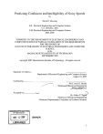 Predicting Confusions and Intelligibility of Noisy Speech by David P. Messing B.S. Electrical Engineering and Computer Science U.C. Berkeley, 2001 S.M. Electrical Engineering and Computer Science MIT, 2003 SUBMITED TO THE DEPARTMENT OF ELECTRICAL ENGINEERING AND COMPUTER SCIENCE IN PARTIAL FULFILLMENT OF THE REQUIREMENTS FOR THE DEGREE OF DOCTOR OF PHILOSOPHY IN ELECTRIAL ENGINEERING AND COMPUTER SCIENCE at the MASSACHUSETTS INSTITUTE OF TECHNOLOGY SEPTEMBER 2007 copyright 2007 Massachusetts Institute of Technology. All rights reserved Signature of Author:__ Department of Electrical Engineering and Computer Science August 16, 2007 Certified by: Prof. Louis D. Braida Pjrofesspr6fflectrical Engineering b isor es$'Xmi Accepted by: Dr. Arthur C. Sj* Professor of Electrical Engineering Chairman, Departmental Committee on Graduate Students MASSACHUSETTS INSTITUTE OF TEOHNOLO'y OCT 1 2 2007 BARKER LIBRARIES 1 Predicting Confusions and Intelligibility of Noisy Speech by David P. Messing Submitted to the Department of Electrical Engineering on August 31, 2007 in Partial Fulfillment of the Requirements for the Degree of Doctor of Philosophy in Electrical Engineering and Computer Science Abstract Current predictors of speech intelligibility are inadequate for making predictions of speech confusions caused by acoustic interference. This thesis is inspired by the need for a capability to understand and predict speech confusions caused by acoustic interference. The goal of this thesis is to develop models of auditory speech processing capable of predicting phonetic confusions by normally-hearing listeners, under a variety of acoustic distortions. In particular, we focus on modeling the Medial Olivocochlear efferent pathway (which provides feedback from the brain stem to the peripheral auditory system) and demonstrate its potential for speech identification in noise. Our results produced representations and performance that were robust to varying levels of additive noise and which mimicked human performance as measured by the Chi-squared test. Co-thesis Supervisor: Prof. Louis D. Braida Title: Professor of Electrical Engineering, MIT Research Laboratory of Electronics Co-thesis Supervisor: Dr. Oded Ghitza Title: Senior Research Scientist, Sensimetrics Corporation, Somerville, MA 2 Acknowledgements I thank all the members of the Sensory Communications group of MITs Research Laboratory of Electronics for their support and help. In particular, I thank Louis Braida and Oded Ghitza for the many hours they spent meeting with me, their guidance, advice, and instruction. I also thank Professors Kenneth Stevens and Jim Glass for being on my committee and providing me input. Thanks also go to my former office mates and coworkers Joe Desolge, Theodore Moallem, Joshua Bernstein, Michael Qin, and Courtenay Wilson for advice, numerous stimulating discussions, support, and conversation. Special thanks go to Edward Bruckert for generating our synthetic speech stimuli. Without his generous donation of personal time, much of this work would not have been possible. Special thanks also go to Lorraine Delhorne for helping conduct and recruit human subjects for the psychoacoustic tests we conducted. I thank my parents and two brothers for their support of my work and involvement at MIT. Lastly, I thank the Airforce Office of Scientific Research and also the NIH for supporting this work. 3 Table of Contents 7 1. Introduction .................................................................................. 2. 10 B ackground............................................................................... 10 2.1 The Human Peripheral Auditory System .................................. 11 2.1.1 The O uter E ar ............................................................. 12 2.1.2 The Middle Ear ....................................................... 2.1.3 The Inner Ear - Anatomy and Mechanics..........................12 2.1.4. The Hair Cells, Neural Innervation, and Transduction.............16 2.2 MOC Efferents and possible role in discrimination in noise..............17 2.2.1 MOC Efferents: morphology and physiology.........................17 2.2.2 Psychophysics: Evidence for Efferent involvement in noise........20 2.2.3 Summary and Link to Thesis Work......................................21 2.3 Speech: Characteristics and Acoustic Features ................................ 21 22 2.3.1 D iphones ................................................................ 2.3.2 Categorization of Phones ............................................. 23 2.3.2.1. Voicing........................................................24 2.3.2.2. Nasality........................................................27 2.3.2.3. Sustention........................................................29 2.3.2.4. Sibilation.........................................................32 2.3.2.5. Graveness......................................................34 2.3.2.6. Compactness..................................................36 2.3.3. Speech: Summary ...................................................... 38 2.4 Current predictors of speech intelligibility .................................. 38 39 2.4.1 A l ....................................................................... 39 2.4.2 STI ...................................................................... 40 2.4.3 Al and STI Shortcomings ........................................... 41 2.5 Human Phonetic Confusions: past studies ................................. 42 .......................................... Tie Back to our Approach 2.6 Recap and 3. Human Psychoacoustic Experiments..............................43 3.1. Overview and Goals......................................43 3.2. Background: Acoustic Features used in Database.....................................44 3.3. CVC Database description.................................................................45 46 3.3.1. Natural Spoken Corpus..................................