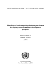 UNITED NATIONS CONFERENCE ON TRADE AND DEVELOPMENT The effects of anti-competitive business practices on developing countries and their development prospects HASSAN QAQAYA GEORGE LIPIMILE Editors UNITED NATIONS New York and Geneva, 2008 NOTE The views expressed in this volume are those of the authors and do not necessarily reflect the views of the UNCTAD secretariat. The designations employed and the presentation of the material do not imply the expression of any opinion whatsoever on the part of the United Nations secretariat concerning the legal status of any country, territory, city or area, or of its authorities, or concerning the delimitation of its frontiers or boundaries. Material in this publication may be freely quoted or reprinted, but acknowledgement is requested, together with a reference to the document number. A copy of the publication containing the quotation or reprint should be sent to the UNCTAD Secretariat. UNCTAD/DITC/CLP/2008/2 ii FOREWORD During the last decade, many developing countries have adopted or are in the process of enacting competition laws. There is growing awareness among developing countries of the adverse effects of anti-competitive practices on their economies as well as their populations. The effects of such practices are not easily quantifiable and may therefore not be obvious. Nevertheless, developing countries have come to recognize the potential benefits that can be derived from competition law enforcement. The drive to establish legal and institutional frameworks in order to fight anti-competitive practices has intensified in recent decades. In over three decades working with many developing countries across the globe, UNCTAD has accumulated a wealth of knowledge and expertise in making competition law and policy work for development. The Accra Accord (paragraph 104) recognizes that "UNCTAD is the focal point for the work on competition policy and related consumer welfare within the United Nations system. It provides to its Member States a forum for intergovernmental policy dialogue and consensus building in the area of competition laws and policies. … a forum to discuss competition issues on the multilateral level, … . UNCTAD's work in this area should promote competition law regimes that take into account the prevailing conditions in the developing countries." Within this framework, the current publication brings together studies by practitioners and academics focussed on identifying the effects of anticompetitive practices on developing countries and their development prospects. The various sections of this publication cover a wide range of cross-cutting competition issues. The publication highlights the synergies between competition and consumer laws and policies. It emphasizes the role of competition law and policy as a complementary policy tool in poverty alleviation. It also draws attention to competition concerns in commodity markets, which are of crucial importance to developing and least developed countries. Moreover, it provides lessons from a broad range of experiences from developed as well as developing countries, including economies in transition. The contribution iii of competition enforcement can often be indistinguishable from that of other economic policies in increasing efficiency and competition. Nonetheless, this publication upholds the view that competition law and policy are supportive of the overall process of economic development by curbing anti-competitive practices that negatively impact consumers and increase costs to business. It is my hope that this publication, which is being launched at the ninth session of the Intergovernmental Group of Experts on Competition Law and Policy in Geneva, in July 2008, will contribute to the enhanced understanding among government officials, private-sector stakeholders, consumer organizations and civil society of the necessity of competition law and policy and raise awareness on the damage caused by anti-competitive practices on the economies of developing countries. I would like to reiterate that UNCTAD will continue to support developing countries in their efforts in adopting competition and consumer laws and establishing and strengthening the capacities of their competition authorities through technical assistance and capacitybuilding programmes. Supachai Panitchpakdi Secretary-General of UNCTAD iv EXECUTIVE SUMMARY During the 1990s, many studies were undertaken to demonstrate the effects of anti-competitive practices on consumers and producers both in developing and developed countries. Damages caused by such practices to developing countries have implications for the purchasing power of consumers through increased prices. Producers in the developing world are also affected by anti-competitive practices through increased barriers to entry by restriction of information 1 on technology. A World Bank study shows that, in 1997, developing countries imported US$81.1 billion worth of goods from industries where companies were involved in price-fixing arrangements in the 1990s. These goods represented 6.7 per cent of imports and 1.2 per cent of GDP in developing countries. These figures reveal the significance of the economic impact of the damages of anti-competitive practices on developing economies. It is worth mentioning that the quantitative effects of anti-competitive business practices are not easy to demonstrate. The most obvious effect of such practices is seen in the form of price increases in markets involving output-restricting or pricefixing cartels and dominant firms abusing their market power. In such cases, consumers are the ones who suffer directly from restricted competition. One of the policy options available to governments to prevent or eliminate anti-competitive practices is the introduction and enforcement of competition law. The interrelationships between competition law and other government policies, such as consumer protection, macroeconomic policies and po