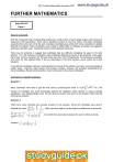 9231 Further Mathematics November 2007 www.studyguide.pk FURTHER MATHEMATICS Paper 9231/01 Paper 1 General comments Only the occasional script of outstanding quality and a small number of good quality scripts were received in response to this examination. There were a significant number of very poor scripts. The better candidates presented their work well, while the work of weaker candidates was untidy with many incomplete or deleted attempts at solutions. Many candidates were unable to differentiate or integrate accurately and algebraic technique was often weak. Numerical answers were frequently inaccurate. There was no evidence to suggest that candidates had any difficulty completing the paper in the time allowed. The vast majority of candidates made substantial attempts at nearly all the questions. Once again there were very few misreads and this year there were few rubric infringements. The occasional candidate, who could not fully attempt either of the two alternatives in the final question, would submit two partial solutions. It was felt that candidates had been well prepared for all parts of the syllabus and had a sound knowledge of certain areas. Induction, linear spaces and complex numbers, however, still remained problematical for many candidates. Recent improvements in vector work seem to have been maintained. Comments on specific questions Question 1 Many candidates were able to gain the first mark by producing the result S = 2πa 2 ∫ 0 2 t 4t 2 + 1 dt . The number of candidates who could successfully perform the integration, either directly, or using a suitable substitution, was disappointingly small. The fact that the answer was given in the question meant that full working was required. Question 2 There were many complete and accurate answers to this question. Almost all candidates were able to 2n + 3 3 1 = − . Many were then able to use the method of differences to show that establish the result n(n + 1) n n + 1 N 2n + 3 ⎛ 1 ⎞ ⎜ ⎟ n (n + 1) ⎝ 3 ⎠ n =1 ∑ Answers: n +1 = 1 1 ⎛ 1⎞ − ⎜ ⎟ 3 (N + 1) ⎝ 3 ⎠ N +1 , from which they were able to deduce the sum to infinity correctly. 1 1 1 , . − N +1 3 3 (N + 1) 3 1 www.xtremepapers.net 9231 Further Mathematics November 2007 www.studyguide.pk Question 3 This proved to be a most difficult question for a large number of candidates. Often only one or two marks were gained for stating inductive hypothesis and/or demonstrating that the result was true for n = 1. There seemed to be much confusion in the minds of candidates over what constituted a polynomial in x of degree n, so few were able to show that Hk is true ⇒ Hk+1 is true. The most concise solutions stated that 2 2 d ⎛ x2 ⎜ e Pk ( x ) ⎞⎟ = 2 xe x Pk ( x ) + e x P ′( x ) and explained that the first ⎠ dx ⎝ 2 term was the product of e x and a polynomial in x of degree k + 1, while the second term was the product of 2 2 e x and a polynomial in x of degree k – 1, thus producing e x Pk + 1(x). Occasionally a candidate, who did get to this stage, did not write a full conclusion and so dropped the final mark. Question 4 The proof of the first result was done well by many candidates. There were two common methods, both of which required forming a pair of simultaneous equations. Firstly: α is a root of the equation α³ – 8α² + 5 = 0 hence α²(α – 8) + 5 = 0. Also α + β + γ = 8 hence α − 8 = −(β + γ). The result is then obvious. Secondly: αβ + βγ + γα = 0 hence α(β + γ) = –βγ. 5 Also αβγ = −5 hence βγ = − . The result is again obvious. α Two strategies were evident in the second part of the question, but fewer candidates were able to complete this part of the question. Since the product of the roots is negative, there are one or three negative roots. Call a negative root α. Using the first result (β + γ) must be positive and from the product of the roots βγ must be positive also, so both roots β and γ must be positive. Alternatively, as before, there must be one or three negative roots, but because the sum of the roots is positive, it is impossible to have 3 negative roots, so the only possibility is one negative root and two positive roots. Question 5 There were many good solutions to this question, a large number of which scored full marks. The most successful candidates usually rewrote the given equation as y = x 2 + 2 ln x + 2 ln y . Hence dy 2 2 dy d2 y 2 2 = 2x + + and = 2− 2 − 2 2 dx x y dx dx x y and y = 1 to obtain the correct results. 2 2 d2 y ⎛ dy ⎞ . It is then straightforward to substitute x = 1 ⎜ ⎟ + y dx 2 ⎝ dx ⎠ Answers: −4, 32. Question 6 This question was done well by a large number of candidates. Using vector products to find the normals to the two planes was well known by nearly all candidates. The great majority were then able to use the scalar product to find the angle between these two normals, which is the angle between the planes. Answer: 16.1° or 0.280 radians. 2 www.xtremepapers.net 9231 Further Mathematics November 2007 www.studyguide.pk Question 7 Most candidates drew a reasonable sketch. Some lost a mark by making their curve symmetrical about π 1 π 2 θ sin2 θ dθ for the area. Replacing sin2 θ by θ = . Most were able to write down the correct integral 0 2 2 1 (1 − cos 2θ ) defeated a disappointingly large number. It then remained necessary to integrate by parts 2 twice, taking care over the signs, which caused problems for a good number of candidates who got this far. ∫ Answer: π3 12 − π 8 in any correct form. Question 8 (i) Almost all candidates obtained (e x + e − x )n + (n − 1)(e x + e − x )n − 2 (e x − e − x )2 . Very few knew that ( e x − e − x )2 = ( e x + e − x ) 2 − 4 . (ii) Without having completed part (i) many candidates could reverse the printed result and obtain the reduction formula. (iii) There was much good work on this final part and most knew that they required I4 . They were 2I2 then able 