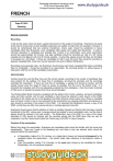 Cambridge International Advanced Level 9716 French November 2009 Principal Examiner Report for Teachers www.studyguide.pk FRENCH Paper 9716/01 Speaking General comments Recording In the last few years, there has been a great improvement in the quality of recordings. Examiners are aware of the need to ensure that not just candidate responses are audible, but also their own questions. However, it should be remembered that any external microphone, where used, should be positioned to favour candidates rather than Examiners, since candidates often speak more quietly than Examiners. In order to minimise disruption to candidates and possible loss of parts of an examination, since each examination should last approximately 20 minutes, only one candidate should be recorded per side of a 60 minute cassette and only two per side of a 90 minute cassette. If using CDs, please ensure that they are formatted to be played on a CD player. If there are candidates for both A and AS Level, they should be recorded on separate cassettes/CDs, since they may be required to be sent to different Moderators. Recordings were generally clear, but Examiners should always spot check cassettes/CDs before submitting them for moderation. During the recording of an examination, the recording should run without pause or interruption until the end of that candidate’s examination. Administration Centres should be sure that they have sent the correct sample, according to the number of candidates they have entered for the syllabus. For fewer than 6 candidates, all should be recorded, and the recordings submitted for moderation. If there are more than 6 candidates, a sample of 6 should be chosen, and this sample should cover the range of marks as evenly as possible, from the top to the bottom mark. It is important that cassettes and CDs are adequately protected by their packaging – there have been instances of CDs sent in a standard envelope which have arrived damaged. The Working Mark Sheet should be completed with the details of the Centre, syllabus, and each candidate’s name and index number, and for each candidate a mark should be entered in each column of the WMS, according to the criteria set out in the Speaking Test Mark Scheme (whole marks only). Where a candidate does not score a mark in one or more elements of the examination (e.g. seeking information and opinions), a zero should be recorded in that column of the WMS. It is important that Moderators receive a copy of the WMS, so that they can offer more precise advice on marking approach and pitch. Examiners should ensure that the addition of marks is carefully checked and that the total has been correctly transferred to the MS1, where used. Lozenges should be shaded for each candidate’s mark, and the total in figures should be entered in the mark column. The Moderator’s copy of the MS1 (or a copy of the marks submitted to CIE) should be included with the recorded sample and the WMS when they are sent for moderation, and the Centre should retain the Centre copy of the MS1 in case of enquiry. Conduct of the examination Before they begin the examination, Examiners and candidates alike should be familiar with the format and requirements. There are 3 parts to the Speaking test, and there is only one element which should be prepared before the examination: ● ● a Presentation, lasting 3 to 3½ minutes, on a single topic chosen and researched/prepared by the candidate before the examination – this should make clear reference to francophone culture or society; Topic Conversation, lasting 7 to 8 minutes, on the same topic chosen by the candidate for his/her Presentation, but not previously prepared; www.xtremepapers.net 1 © UCLES 2009 Cambridge International Advanced Level 9716 French November 2009 Principal Examiner Report for Teachers ● www.studyguide.pk General Conversation, lasting 8 to 9 minutes – the candidate cannot prepare this ahead as he/she does not know exactly what topics will be discussed, and they will certainly be different from the one chosen for the Presentation, and should differ from candidate to candidate. Candidates are expected to ask questions of the Examiner in both conversation sections – there are 5 marks available for this in each conversation section, and Examiners must prompt candidates to ask questions where there are none asked in the course of conversation, so that candidates are given the opportunity to work for the marks. Presentation Candidates chose a very wide range of topics, from those relating to society in general (Famille - including topics such as Polygamie; les Jeunes; Education - including Laïcité; Tabagisme; les Drogues), to technological advances, leisure, including Voyages and Tourisme, television & the media, and cultural topics. Sport was also popular, as was health in general, and healthy eating (Obésité, Végétarisme) – a number chose to talk about various aspects of gastronomie and regional cuisine. Pollution and the environment continue to appear, along with nuclear energy. This year there were a number of political topics as well, clearly of interest to the candidates who chose them (Les enfants soldats au Congo, la Crise Economique). It was clear that candidates had generally chosen something they were particularly interested in, and most remembered that they must make reference to francophone culture or society. It is not enough merely to say …et en France, c’est la même chose…, but candidates need to ensure that the theme is firmly rooted in francophone culture. They should also remember that the criteria reward ideas and opinions, so a strictly factual topic may not score particularly well for content. Candidates should certainly be choosing their own topics – Moderators would not expect all topics from a Centre to be the same – and they should be allowed to talk for 3 to 3½ minutes before Examiners begin asking any questions. If the presentation shows no signs of coming to an