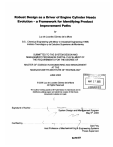 Robust Design as a Driver of Engine Cylinder Heads Evolution - a Framework for Identifying Product Improvement Paths by Luz de Lourdes G6mez de la Mora B.S., Chemical Engineering with Minor in Industrial Engineering (1998) Instituto Tecnol6gico y de Estudios Superiores de Monterrey SUBMITTED TO THE SYSTEM DESIGN AND MANAGEMENT PROGRAM IN PARTIAL FULFILLMENT OF THE REQUIREMENTS FOR THE DEGREE OF JUNE 2005 MASSAC L ' MASTER OF SCIENCE IN ENGINEERING AND MANAGEMENT AT THE MASSACHUSETTS INSTITUTE OF TECHNOLOGY 2005 MAY 27 LIBRARIES 2005 Luz de Lourdes G6mez de la Mora All Rights Reserved The author hereby grants to MIT permission to reproduce and to distribute publicly paper and electronic copies of this thesis document in whole or in part. I' Signature of Author............... . . . . . . . . . . . . . . .... . 1.. ... System Design and Man 7 Certified by ................. '....... ..... ....... .. ......... ement Program May 6th, 2005 Dan Frey Asst Professor of Mechanical Eng/& Engineering Systems Thesis Supervisor BARKER Robust Design as a Driver of Engine Cylinder Heads Evolution - a Framework for Identifying Product Improvement Paths by Luz de Lourdes G6mez de la Mora SUBMITTED TO THE SYSTEM DESIGN AND MANAGEMENT PROGRAM IN PARTIAL FULFILLMENT OF THE REQUIREMENTS FOR THE DEGREE OF MASTER OF SCIENCE IN ENGINEERING AND MANAGEMENT AT THE MASSACHUSETTS INSTITUTE OF TECHNOLOGY JUNE 2005 ABSTRACT The fundamental goal of Robust Design is to improve the quality of a product by minimizing the effects of variation. A key contributor to robustness over the long term is R&D. Therefore, a framework is desired to help managers to identify promising improvement paths that a system may undergo, thus helping out in deciding R&D resource allocation. The goal of this thesis is to contribute to a framework for robustness inventions. This contribution is sought by analyzing the evolution in robustness of a single component in a particular engineering system - the engine cylinder head. By analyzing a series of patents related to reliability and robustness of engine cylinder heads, the author identified generalizable inventive strategies for robust design. Thesis Supervisor: Dan Frey Title: Asst Professor of Mechanical Eng and Systems Engineering 3 4 Table of contents Chapter 1 - Introduction ....................................... 7 7 Reliability vs. robustness What is robust design 11 Thesis objective 12 Chapter 2 - Engineering system under study ........................ 15 Internal combustion engines 15 The cylinder head 21 Chapter 3 - Evolution of the engine cylinder head .................... 30 Combustion chambers 31 Overall structure 54 State of the art 67 Chapter 4 - A framework for Robustness Inventions ................... 71 Sources of creativity for "producing" inventions 74 Inventing strategies 77 Critical analysis of robustness inventions 82 Chapter 5 - Conclusions ........................................ 85 Index of figures ............................................... 87 B ibliog raphy ................................................... 89 5 6 Introduction Reliable, improved products are the result of robust design Reliability vs. robustness A system can be called reliable when one can expect with certain level of confidence that such system will perform the function for which it was intended within the possibilities provided by its design. In other words, a system can be considered a reliable one when it does what it is supposed to do. The level of reliability of a system can be defined as a function of the consistency with which the system performs its function to an acceptable extent. For example a system that sometimes exceeds expectations and others does not meet them is not a reliable one. Another system that meets expectations regularly, even when it does not exceed them, is a reliable one. A third system that exceeds expectations with the same frequency than the second meets them is also reliable system, and - arguably - as reliable as the second. Finally, an additional system which meets or exceeds expectations more frequently than the second and third systems is more reliable than such systems. Assuming that the four systems under consideration are intended to deliver the same function, what makes one more reliable than the others? The system's design does. Some designs result in systems that are more reliable than others, 7 which is one of the reasons for which someone may prefer a product made by one firm over other that it is supposed to perform the same function made by other firm. In that order of ideas, reliability is a function of system performance - more specifically of acceptable performance consistency - and can be increased (or unintendedly decreased) with design changes. Fig. I - Reliability as a function of performance Acceptable Lower Performance Frequency Higher Frequency A robust system is defined as 'one that performs as intended even under nonideal conditions such as manufacturing process variations or a range of operating situations'.' The uncontrolled variations of a system's environment are called noise. Thus, robustness is a function of the effect of noise in the system's performance. 1 Ulrich & Eppinger, 2003 8 Fig. 2 - Robustness as a function of the effect of noise on system performance Lower Effect of noise on performance Higher While reliability is a design intent, robustness could be seen as a design parameter. Systems are theoretically designed to deliver a determined function consistently under the assumed conditions without failing. In reality, systems fail due to considerations that were underestimated, neglected or unknown during the design phase. These considerations (or lack of considerations) are supported by assumptions that dictate the robustness of the end product. The more the design relies on the assumptions made, the less robust the product will be to differences between the reality and the assumed conditions. Fortunately, for most of the sy