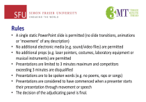 • A single static PowerPoint slide is permitted (no slide transitions, animations
