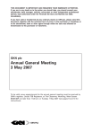 THIS DOCUMENT IS IMPORTANT AND REQUIRES YOUR IMMEDIATE ATTENTION. If you are in any doubt as to the action you should take, you should consult your stockbroker, bank manager, solicitor, accountant or other independent professional adviser, duly authorised under the Financial Services and Markets Act 2000, immediately. If you have sold or transferred all your ordinary shares in GKN plc, please send this document, together with the enclosed form of proxy, to the purchaser or transferee or to the stockbroker, bank or other agent through whom the sale was effected for transmission to the purchaser or transferee. GKN plc Annual General Meeting 3 May 2007 To be valid, proxy appointments for the annual general meeting must be received by GKN’s registrar, Lloyds TSB Registrars, at The Causeway, Worthing, West Sussex BN99 6BP not later than 11.00 am on Tuesday 1 May 2007 (see pages 9 and 10 for instructions). 27FEB200517255140 27FEB200517255140 GKN plc PO Box 55, Ipsley House, Ipsley Church Lane, Redditch, Worcestershire B98 0TL, England 28 March 2007 Dear Shareholder, 2007 Annual General Meeting The notice convening the annual general meeting of GKN plc, to be held at 11.00 am on Thursday 3 May 2007 at the Institution of Engineering and Technology, Savoy Place, London WC2R 0BL, is set out on pages 3 and 4. Much of the business of the meeting will be familiar to shareholders, but there are a number of items to which I would like to draw your attention. Full details of these, as well as all the other resolutions to be proposed, are set out in the explanatory notes provided in the Appendix to this letter. Re-election of Directors The explanatory notes contain biographical details of the Directors standing for re-election. We have also given an explanation of why the Board believes that they should be re-elected. This information is provided in accordance with the Combined Code on Corporate Governance. Power to allot shares and disapply pre-emption rights The two authorities relating to the Board’s power to allot shares were renewed last year for a period of up to 15 months in accordance with best practice. These authorities are therefore due for renewal this year. The authorities will empower the Board to allot the authorised but unissued share capital of the Company and also to allot unissued shares and shares held in treasury other than on a pro rata basis to existing shareholders in certain limited circumstances. We are seeking to renew the authorities for a further period which will expire no later than 15 months from the date of the annual general meeting. Your Directors have no present intention to exercise these authorities (other than in connection with the exercise of any options or awards granted under the Company’s share incentive schemes). Purchase of shares In common with many other companies, GKN seeks annually a limited authority from shareholders to purchase its own shares. Legislation permits shares purchased by the Company to be held in treasury, rather than being cancelled immediately, for future resale, for use in connection with employee share schemes or for cancellation at a later date. As at 19 March 2007, some 38.7 million shares, at a total cost of £100 million, have been purchased pursuant to a share buyback programme commenced in October 2004 and are held as treasury shares. GKN plc is registered in England No. 4191106 Registered office: PO Box 55, Ipsley House, Ipsley Church Lane, Redditch, Worcestershire B98 0TL, England 1 27FEB200517292779 9MAR200521440117 Political donations Shareholders approved at the AGM in 2006 an authority to enable the Group to support organisations which may fall within the definition of an ‘EU political organisation’ in the Companies Act 1985 and to incur ‘EU political expenditure’ within the meaning of that Act. In accordance with best practice, the authority was renewed for a period not exceeding 15 months after the date of the annual general meeting. This authority is therefore due for renewal this year. Amendment to articles of association – electronic communications New provisions in the Companies Act 2006, introduced on 20 January 2007, provide companies with wider powers to use electronic communications with shareholders. For a number of years, and in accordance with our articles of association, we have provided copies of shareholder documentation electronically to shareholders who have so requested and have provided us with an e-mail address. In future, subject to a minor amendment to the articles, we will be able to communicate electronically with shareholders who consent or who are deemed to have consented to this, whether or not they provide an e-mail address, by placing shareholder documents (including notices of meetings and copies of the annual report and accounts) on a website and notifying them in writing that such documents are available. By taking advantage of these new provisions, we will not only be able to reduce printing and mailing costs but also to reduce the impact of those activities on the environment. A letter containing details of the proposed new arrangements, which are conditional upon the resolution to amend the articles of association being passed, is included with this mailing. Shareholders who wish to continue to receive hard copy documents should notify the Company’s registrars in accordance with the instructions set out in the letter. Action to be taken by shareholders regarding the AGM You are requested to complete the enclosed form of proxy and return it in accordance with the instructions set out on the form and on pages 9 and 10 of this circular so as to be received by Lloyds TSB Registrars not later than 11.00 am on Tuesday 1 May 2007. You may, if you prefer, submit your proxy appointment electronically either via the internet or, if you are a CREST member, through the CREST system – please refer to the notes on page 10 for details. The appointment of a proxy will not prevent you f