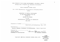 I CASE STUDIES OF LOW INCOME ENVIRONMENTS: CHIHUAHUA, MEXICO Surveys and a Proposal for Upgrading Settlements by EMILIO BENJAMIN GUERRA SOUSA Lic. Civil Engineering, Universidad de Chihuahua,Mexico (1974) SUBMITTED IN PARTIAL FULFILLMENT OF THE REQUIREMENTS FOR THE DEGREE OF MASTER OF SCIENCE at the MASSACHUSETTS INSTITUTE OF TECHNOLOGY MAY, 1978 Signature of Author........ Department of Architecture, May, 4, 1 1978 Certified by.................................. Horacio Caminos, Professor of Architecture, Thesis Supervisor Accepted by.................... Julian Beinart Professor of Architecture Copyright @ Kjhairman, rtment Comrittee for Graduate Students EMIL [0 BENJAMIN GUERRA SOUSA 1978 MASSACHUSETTS INSTITUTE OF TECHNOLOGY AUG 10 1978 LIBRARIES CASE STUDIES OF LOW INCOME ENVIRONMENTS: CHIHUAHUA, MEXICO Surveys and A Proposal For Up-grading Settlements by EMILIO BENJAMIN GUERRA SOUSA Submitted to the Department of Architecture on May, 1978 in partial fulfillments of the requirements for the degree of Master of Science ABSTRACT Three settlements for low income people are described and evaluated in terms of land use, layout, utilities and community facilities. A revised layout for a better vehicular and pedestrian circulation is proposed with emphasis on community participation. Horacio Caminos Professor of Architecture, Thesis Supervisor COwEN"s 3 CONTENTS INTRODUCTION 4 URBAN CONTEXT 7 CASE STUDIES 11 1. MARGARITA MAZA - BUROCRATICA 12 2. CERRO DE LA CRUZ 20 3. ROSARIO - DALE 28 EVALUATIONS 36 PROPOSAL 45 GLOSSARY 50 REFERENCES 54 4 CASE STUDIES OF LOW-INCOME ENVIRONMENTS INTRODUCTION Excessive public land causes several problems, for instance, when more streets and open spaces exist than are needed poor land use and bad physical control are the result. For the inhabitants the abundance of streets becomes an expensive and inadequate area and many times open spaces become rubbish dumps. For the public sector an abundance of public areas mean very expensive land to mantain and control. Provision of utilities, services and community facilities also becomes very expensive to provide. In Chihuahua city, after 1950 many of the low income settlements have being developed on rocky and slope land. The adopted grid layout in those settlements provides more public land than desired. The installation of water and sewage networks is mainly being done by the inhabitants who constructed their own houses essentially by self-help construction techniques,, The objective of this study is to describe and evaluate three low income settlements and to propose a revised layout for the Cerro de la Cruz and Rosario settlements. The proposal includes basic guidelines for the up-grading of the area in terms of layout, land use and population density. The proposal intents by the up-grading to direct the process of neighborhood improvement. This study is derived from the experience of the author working with the Centro de Estudios Generales A. C. -- CEG -- and Productividad Local S. C. -- ProL -- Which are two groups of educators who have being involved in non-formal education projects. Field surveys were carried out during the summer and winter of 1977 by the author, students of social work, architecture, CEG and other institutions in Chihuahua providing complete Physical information. The inhabitants background of community work for neighborhood improvement and the CEG and Prol activities provide the opportunity to direct the process of neighborhood improvement. NATIONAL CONTEXT CONTEXT NATIONAL creases suggest that enrollments will in- rises to 8,000 feet crease from 1.4 million in 1972 to as many level near Mexico City. President is Mexico's climate is generally more closely related to altitutde and rain fall The judicial system consists of local and federal courts and a supreme court. than to latitude. Supreme Court Justices are appointed by the President and approved by the Senate. as 2.5 million by 1980. Mexico The proportion of the 20 to 24 age group attending school dropped to 4.3 percent. Between 1959 and 1973, enrollments in institutions of higher learning increased from 62,000 to 307,000. (2,400 km.) INFORMATION 63 million 3.3% Ethnic Groups Indian-Spanish (mestizo) 60% 30% American Indian 10% Caucasian Religion Roman Catholic Language Spanish Literacy Life Expectancy Area 65% 61 years 1,978,750 sq. km. Government Federal Republic GDP US $78.6 billion US $1,267 (1976) GDP per capita Official Exchange Rate 22.9 pesos=US$l 2. PEOPLE Mexico is the most populous Spanishspeaking country in the world and the second 9.5 million. In 1970, nearly 70 percent 6. the Maya, Independence from Spain nearly 300 years. was proclaimed by Father Miguel Hidalgo on September 1C, 1810, and the republic was established on December 6, 1822. Prominent in the war for independence were Father Jose Maria Morelos, General Agustin de Iturbide, who vanquished the Spaniards and ruled as emperor for a short period; and General Antonio Lopez de Santa Ana, who controlled Mexican politics from 1833 to 1855. The presidential terms of Benito Juarez (1858-71) were interrupted by the Archduke Maximiliano period of the empire. GOVERNMENT The constitution of 1917 provides for a federal republic with a separation of powers into independnet executive, legislative, and judicial branches of government. The executive branch is dominant. Executive power is vested in the President, who promulgates and executes the laws of The executive also legislates the Congress. by executive decree in certain economic and financial fields, using powers delegated He is elected by universal adult suffrage for a 6-year term and There may not hold the office a second time. is no Vice President; in case of the removal from the Congress. Tij uana Juarez 0 ECONOMY Mexico is among the world's largest producers of silver, sulphur, lead, and zinc. Gold, copper, iron ore, and coal are also mined. Mexico has produced oil for decades, although not for many eyars in quantity suf