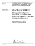 United States Government Accountability Office GAO Testimony Before the Strategic Forces Subcommittee, Committee on Armed Services, House of Representatives For Release on Delivery Expected at 1:00 p.m. EDT Tuesday, July 12, 2005 SPACE ACQUISITIONS Stronger Development Practices and Investment Planning Needed to Address Continuing Problems Statement of Robert E. Levin, Director, Acquisition and Sourcing Management GAO-05-891T July, 12 2005 DOD SPACE ACQUISITIONS Accountability Integrity Reliability Highlights Highlights of GAO-05-891T, a report to Strategic Forces Subcommittee of the Committee on Armed Services, U.S. House of Representatives Why GAO Did This Study GAO was asked to testify on problems relating to the Department of Defense’s (DOD) space system acquisitions. In doing so, we drew on our previous reports related to the causes of acquisition problems, underlying incentives and pressures, and potential solutions. Stronger Development Practices and Investment Planning Needed to Address Continuing Problems What GAO Found Our work on the acquisition of space-based capabilities over the last several years has been conducted on two levels. First, we have reviewed most of the major space system acquisitions to determine their status at different points in time. The results are discouraging—systems cost more and take much longer to acquire than promised when initially approved. In some cases, the justification or business case for the system when initially approved is far different from the current status, so DOD has had to re-assess the need to acquire that particular system and the soundness of its acquisition strategy. What GAO Recommends DOD has attempted to address its problems in space system acquisitions. However, our reports have recommended that DOD adopt practices that would: • Separate technology development from an acquisition program; • Employ evolutionary approaches that pursue incremental increases in capability; and • Guide program start decisions with investment strategies that identify (1) overall capabilities and how to achieve them, that is, what role space will play versus other air-, sea-, and land-based assets and (2) priorities for funding. www.gao.gov/cgi-bin/getrpt?GAO-05-891T. To view the full product, including the scope and methodology, click on the link above. For more information, contact Robert E. Levin at (202) 512-4841 or levinr@gao.gov. Second, we have analyzed the common and causal factors for these poor acquisition outcomes. Overall, we have found that DOD has been unable to match resources (technology, time, money) to requirements before beginning individual programs, setting the stage for technical and other problems, which lead to cost and schedule increases. Specifically: • Requirements for what the satellite needed to do and how well it must perform are not adequately defined at the beginning of a program or are changed significantly once the program has begun. • Technologies are not mature enough to be included in product development. • Cost estimates are unreliable—largely because requirements have not been fully defined and because programs start with many unknowns about technologies. We also have reported on cross-cutting factors that make it more difficult for DOD to achieve a match between resources and requirements for space acquisitions. These include: a diverse array of organizations with competing interests; a desire to satisfy all requirements in a single step, regardless of the design or technology challenge; and a tendency for acquisition programs to take on technology development that should occur within the S&T environment. On a broader scale, DOD starts more programs than it can afford in the long run, forcing programs to underestimate costs and over promise capability. As a result, there is pressure to suppress bad news about programs, which could endanger funding and support, as well as to skip testing because of its high cost. One key to success is closing the gaps between available technologies and customer needs before beginning an acquisition program. This puts programs in a better position to succeed because they can focus on design, system integration, and manufacturing. DOD has recently revised its space acquisition policy, in part to attain more knowledge about technologies before starting an acquisition program. However, we remain concerned that the policy still allows programs to begin before demonstrating technologies in an operational or simulated environment. United States Government Accountability Office Mr. Chairman and Members of the Subcommittee: I am pleased to be here today to discuss DOD’s efforts to acquire spacebased capabilities. In fiscal year 2006 alone, DOD plans to spend almost $20 billion to develop and procure satellites and other space systems. Our work on the acquisition of space-based capabilities over the last several years has been conducted on two levels. First, we have reviewed most of the major space system acquisitions to determine their status at different points in time. The results are discouraging—systems cost more and take much longer to acquire than promised when initially approved. In some cases, the justification or business case for the system when initially approved is far different from the current status, so DOD has had to reassess the need to acquire that particular system and the soundness of its acquisition strategy. Second, we have analyzed space system acquisitions to identify the common and causal factors for these poor outcomes. Overall, we have found that DOD has been unable to match resources (technology, time, and money) to requirements before beginning individual programs, setting the stage for technical and other problems, which lead to cost and schedule increases. Moreover, on a broader scale, DOD starts more programs than it can afford, creating a set of incentives and pressures that invariably have negative effects on individual programs an