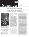 PNW Pacific Northwest Research Station I N S I D E Correlation and Causation . . . . . . . . . . . . . . . . . . . . 2 Sharing Warmth . . . . . . . . . . . . . . . . . . . . . . . . . . . . 3 Devising a Budget . . . . . . . . . . . . . . . . . . . . . . . . . . . 4 From Science to Policy . . . . . . . . . . . . . . . . . . . . . . . 5 F I N D I N G S issue seventy three / june 2005 “Science affects the way we think together.” Lewis Thomas KEEPING IT COOL: UNRAVELING THE INFLUENCES ON STREAM TEMPERATURE living organism—from caddisflies to the bacteria that cycle essential nutrients. Most notably, water temperature affects fish. In Pacific Northwest streams, where salmon and trout reign supreme, the proper temperature is cold, very cold. Water temperature in Pacific Northwest mountain streams regulates virtually every biotic component of the aquatic ecosystem. In the slanting sun of late afternoon the shadows of great branches reached across the river, and the trees took the river in their arms. I —Norman Maclean t would be difficult to overstate the importance of water temperature in regulating stream ecosystems. Temperature sets the pace of nearly every Fish are exothermic, or cold-blooded. The temperature of the water surrounding them acts as a throttle on their metabolism. From the very start, temperature controls how fast salmon eggs mature and the timing of emergence of larval salmon from the nursery gravels of the streambed. And at the end of their lives, when adult spring Chinook salmon return to their natal streams, temperature will control how fast they burn reserves of body fat and if they survive the warm summer months to spawn in the fall. Moreover, several diseases that infect fish are kept in check by cold water. When temperatures rise, all these adaptations are thrown off, and fish populations—some of which are already imperiled—are put at higher risk. Given this, it is not surprising that scientists and land mangers are so concerned with rising stream temperatures throughout the Pacific Northwest. “Stream temperature dynamics have been the focus of much controversy and have been at the center of a long-standing policy debate,” says Sherri Johnson, a research ecologist at the PNW Research Station in Corvallis, Oregon. “To add to the controversy, numerous contradictions exist in the published literature about the controlling factors of stream temperature, such as the role of air temperature, shade, substrate, and timber harvest.” When Johnson joined the station she inadvertently entered a debate over the controls I N S U M M A R Y Water temperature influences virtually every biotic component of stream ecosystems. Not surprisingly, increased summer temperatures in streams with coldwater species of fish such as salmon and trout have become a topic of concern regionally and internationally. Although stream temperature has been studied for many years, controversy continues over the relative influences of shade, air temperature, and substrate on temperature dynamics. Researchers at the PNW Station have recently conducted experiments and calculated heat budgets that itemize the relative influence of several factors on the water temperature of mountain streams in western Oregon. New technologies allow more detailed measurements of heat fluxes and more accurate determination of the factors affecting stream temperature, allowing management practices to be tailored to minimize their influence on stream ecosystems. Direct solar radiation is the primary contributor to daily fluctuations in water temperature. Managing for shade by maintaining streamside vegetation is an effective way to reduce heat flux. In addition, the type of substrate and the length of time that stream water spends below the stream channel is an important predictor of daily temperature variations. Much remains to be learned about how these factors vary across the landscape. on stream temperature. “Although it might seem like a ‘no-brainer,’ people were still arguing over the importance of shade associated with streamside vegetation on water temperature,” says Johnson. “I was able to conduct an experiment that can hopefully put that question to rest.” Johnson’s experiment involved a profusion of black plastic and more than a mile of parachute cord. But more on that later. Shade is just one factor—albeit an important one—in the debate on how to keep streams cold. Other factors, which have only recently gained attention, are the composition of the streambed and length of time that water spends flowing through the substrate. The region of streamflow that is beneath and adjacent to the stream channel is termed the hyporheic zone; it is the unseen portion of nearly every stream with a porous substrate. Steve Wondzell is an expert in hyporheic zones and a research ecologist at the PNW Research Station in Olympia, Washington. He and Johnson have been working together to unravel the myriad influences on stream temperature. K EY FI N DI NGS • Stream temperature has been studied for many years, yet until recently, there remained considerable uncertainty and controversy over the relative influence of shade, air temperature, and substrate in controlling stream temperatures. This research uses new technologies to make more accurate determination of the factors affecting stream temperature allowing management practices to be tailored to minimize their influence on stream ecosystems. • The type of substrate can influence stream temperature dynamics. Bedrock reaches have wide daily summer stream temperature fluctuations, with high maxima and low minima. In contrast, stream reaches with gravel bottoms and belowground flows have a much narrower range of daily fluctuations. • Air temperature was once thought to be a major factor influencing the water temperature in streams. A heat budget analysis, using data from streamside climate stations, showed that direct solar radiation, not air temperat