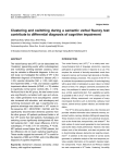 Neurosci Bull February 1, 2013, 29(1): 75–82. http://www.neurosci.cn DOI: 10.1007/s12264-013-1301-7 75 ·Original Article· Clustering and switching during a semantic verbal fluency test contribute to differential diagnosis of cognitive impairment Qianhua Zhao, Qihao Guo, Zhen Hong Department of Neurology, Huashan Hospital, Fudan University, Shanghai 200040, China Corresponding author: Qihao Guo. E-mail: dr.guoqihao@126.com © Shanghai Institutes for Biological Sciences, CAS and Springer-Verlag Berlin Heidelberg 2013 AbstrAct INtrODUctION The verbal fluency test (VFT) can be dissociated into “clustering” (generating words within subcategories) and “switching” (shifting between clusters), which may be valuable in differential diagnosis. In the current study, we investigated the validity of VFT in the differential diagnosis of Alzheimer’s disease (AD, n = 65), vascular dementia (VaD, n = 65), mild cognitive impairment (MCI, n = 92), and vascular cognitive impairment without dementia (VCIND, n = 76) relative to cognitively normal senior controls (NC, n = 374). We found that in the NC group, the total correct score was significantly correlated with age and education; males generated more subcategories; cluster size increased with education, and subcategory and switching decreased with age. A significantly progressive advantage was observed in VFT scores in the sequence NC > MCI/VCIND > AD/VaD, and this significantly discriminated dementia patients from the other groups. AD patients performed better in all four VFT scores than VaD patients. Subcategory and switching scores significantly distinguished AD from VaD patients (AD > VaD; mean difference, 0.50 for subcategory, P <0.05; 0.71 for switching, P <0.05). MCI patients scored higher than VCIND patients, but the difference did not reach statistical significance. These results suggest that semantic VFT is useful for the detection of MCI and VCIND, and in the differential diagnosis of cognitive impairment. The verbal fluency test (VFT) [1] is a widely-used neu- Keywords: Alzheimer’s disease; dementia; verbal fluency; mild cognitive impairment ropsychological test of language production, requiring participants to generate words in response to a cue. This requires the retrieval of lexically-associated words from long-term memory and involves high demands on frontallymediated strategic processes. The purpose of the VFT is to evaluate the spontaneous production of words beginning with a given letter or belonging to a given class in a limited amount of time. For category (semantic association) fluency, the participant is asked to produce as many items (e.g., animal, supermarket item, fruit, vegetable) as quickly as possible (in 60 or 30 s)[1]. The VFT is widely used in the diagnosis, efficacy assessment, and prognosis of many neurological disorders such as dementia, epilepsy, head trauma, central nervous system infection, and mental retardation. The VFT is time-saving (takes only a few minutes) and provides valuable information about semantic memory, executive function, naming, attention-shifting and sequencing. These functions involve cortical and subcortical structures, such as the frontal lobe, temporal lobe, and striatum[2]. The total number of correct words generated is most commonly used as the index of task performance. However, this index misses much of the information, and does not perform well in discriminating between dementia and cognitive impairment[3]. In addition to the total number of correct words generated, a qualitative analysis of the word sequence provides valuable information on the patient’s impaired cognitive components. Troyer, Moscovich and Winocur isolated two main components in VFT tasks: “clustering”, the ability 76 Neurosci Bull to produce words within phonetic and semantic subcategories; and “switching”, the ability to shift between clusters[3]. February 1, 2013, 29(1): 75–82 MEtHODs Clustering relies more on temporal lobe functions such as Participants word storage and semantic memory, while switching relies Five groups of participants were recruited: patients with AD, more on frontal lobe functions such as sorting and atten- VaD, MCI, VCIND, and cognitively normal controls (NC). tion-shifting[3,4]. Participants were consecutively selected from the Memory Previous studies reported that the neuropsychological Clinic of Huashan Hospital from 2008 to 2010. Normal deficits of Alzheimer’s disease (AD) are characterized by controls were obtained by random group sampling from the a breakdown in the organization and structure of semantic community. The inclusion criteria were: (1) fluency in Man- knowledge and impairments in executive function[5]. Vas- darin, (2) aged between 55 and 85 years, (3) underwent cular dementia (VaD), the second most common cause of physical, neurological, and neuropsychological evaluations, dementia, is characterized by subcortical dysfunction[6]. (4) underwent neuroimaging (magnetic resonance imaging Whether the VFT can differentiate between subtypes of or computed tomography) when indicated; and (5) good dementia has been widely studied[5-8]. Canning reported compliance and written informed consent. The exclusion that the total correct number of responses on the letter flu- criteria were: (1) diagnosis of depression or anxiety in the ency test was helpful in differentiating VaD from AD in a rel- past month, and (2) having visual or hearing problems. All atively small sample[9], but this test cannot be directly used in a Mandarin-speaking Chinese population. Besides, few studies have investigated whether clustering and switching can discriminate between AD and VaD. Mild cognitive impairment (MCI) and vascular cognitive impairment without dementia (VCIND) have been reported to represent preclinical stages and are potential treatment targets[10,11]. Murphy et al. reported that patterns of verbal fluency performance in amnestic MCI patients are characteristic of AD[12]. T