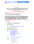 MATC Vision MATC is a premier, comprehensive technical college that provides excellence in education to enrich, empower and transform lives in our community PLEASE NOTE CHANGE IN MEETING DATE January 31, 2014 NOTICE TO RESIDENTS OF THE MILWAUKEE AREA TECHNICAL COLLEGE DISTRICT, WISCONSIN A regular open meeting* of the MILWAUKEE AREA TECHNICAL COLLEGE DISTRICT BOARD, WISCONSIN, will be held in the BOARD ROOM, ROOM M210, of MILWAUKEE AREA TECHNICAL COLLEGE, 700 WEST STATE STREET, MILWAUKEE, WISCONSIN, on TUESDAY, JANUARY 28, 2014 TUESDAY, FEBRUARY 4, 2014 beginning at 5:00 P.M. The agenda** for said meeting is presented as follows: A. Roll Call B. Compliance with the Open Meetings Law C. Approval of Minutes C-1 Regular Board Meeting: December 17, 2013 D. Comments from the Public E. Approval of Consent Agenda Items FPO-2 Bills – December 2013 Bills – By Check Number Bills – By Payee Bills - Checks Exceeding $2,500 Bills - Channels 10/36 Voided Checks Student Activities FPO-3 Financial Report – December 2013 FPO-4 Human Resources Report FPO-5 Procurement Report I. External Contracts None. II. Procurements Advertising Expenditures for Milwaukee Public TV December January February Actual Estimated Estimated $10,847.59 $10,235.73 TBD Advertising Expenditures for MATC December January February Actual Estimated Estimated $3585.38 $3585.38 $7985.38 Minority Media Percentage was 6% Minority Media Percentage is 10-12% Minority Media Percentage is 10-12% Minority Media Percentage was 0% Minority Media Percentage is 10-12% Minority Media Percentage is 10-12% MPTV Advertising Services Eichenbaum & Associates Milwaukee, WI $460, 000 ($230,000 per year/2 years) Recruitment Software NeoGov El Segundo, CA $102,500 E.F.P. Camera System VSA-Chicago Buffalo Grove, IL $145,665 AVID Edit System CineSys-Oceana Aurora, IL $245,953 TeamDynamix Software TeamDynamix Solutions Columbus, OH $53,512 III. Contracts for Services None. IV. Construction Contracts V. Lease Agreements None. None. F. Chairperson’s Report G. President’s Report 2 H. Student Government Report I. Legislative Matters Report J. Public Television Committee Report K. Education, Services, and Institutional Relations Committee Report L. Finance, Personnel, and Operations Committee Report Action Items FPO-6 Resolution (F0021-01-14) Authorizing the Sale of $1,500,000 General Obligation Promissory Notes, Series 2013-2014(H) of Milwaukee Area Technical College District, Wisconsin FPO-7 Resolution (F0022-01-14) Authorizing the Issuance of $1,500,000 General Obligation Promissory Notes, Series 2013-2014(I) of Milwaukee Area Technical College District, Wisconsin FPO-8 Resolution (F0023-01-14) to Approve FY2012-2013 Budget Modification Information Items M. N. FPO-9 Budget Variance Report Six Months Year-to-Date Ended December 31, 2013, FY2013-2014 FPO-13 Milwaukee Area Technical College District Other Post-Employment Benefits (OPEB) Trust Semi-Annual Report Miscellaneous Items 1. Communications and Petitions 2. Information Items Old Business/New Business 1. Future Agenda Items 2. Date of Next Meeting: Tuesday, February 25, 2014, 5:00 p.m. Regular Board Meeting, Downtown Milwaukee Campus, Board Room (M210) O. Consideration of Collective Bargaining Request From AFSCME, Local 587*** P. Consideration of Pending Litigation and Direction to Legal Counsel Regarding Related Terms of Employment**** 3 Q. President’s Quarterly Evaluation ***** R. Board may Reconvene into Open Session to Take Action on Matters Discussed in Closed Session under Items O, P or Q. * This meeting may be conducted in part by telephone. Telephone speakers will be available to allow the public to hear those parts of the proceedings that are open to the public. ** Action may be taken on any agenda item, whether designated as an action item or not. Agenda items may be moved into Closed Session for discussion when it becomes apparent that a Closed Session is appropriate under Section 19.85 of the Wisconsin Statutes. The board may return into Open Session to take action on any item discussed in Closed Session. *** It is anticipated that this item may be discussed in Closed Session pursuant to Section 19.85 (1)(e) of the Wisconsin Statutes. **** It is anticipated that this item may be discussed in Closed Session pursuant to Sections 19.85 (1)(g) of the Wisconsin Statutes. ***** It is anticipated that this item may be discussed in Closed Session pursuant to Sections 19.85(1)(c) of the Wisconsin Statutes. Reasonable accommodations are available through the ADA Office for individuals who need assistance. Please call 414-297-6610 to schedule services at least 48 hours prior to the meeting. 4 C-1 MILWAUKEE AREA TECHNICAL COLLEGE DISTRICT BOARD MILWAUKEE, WISCONSIN December 17, 2013 CALL TO ORDER The regular monthly meeting of the Milwaukee Area Technical College District Board was held in Open Session on Tuesday, December 17, 2013, and called to order by Chairperson Webber at 5:02 p.m. in the Board Room, Room M210, at the Downtown Milwaukee Campus of Milwaukee Area Technical College. ITEM A. ROLL CALL Present: David Dull; Melanie Holmes; Graciela Maizonet; José Pérez; Kurt Wachholz; Ann Wilson and Bobbie Webber Excused: Lauren Baker; Mike Katz José Pérez called in at 5:14 p.m. Ann Wilson arrived at 5:06 p.m. ITEM B. COMPLIANCE WITH THE OPEN MEETINGS LAW Discussion Chairperson Webber indicated that proper notice of the meeting had been given in compliance with the Wisconsin Open Meetings Law. ITEM C. APPROVAL OF MINUTES C-1 Regular Board Meeting: November 26, 2013 Motion It was moved by Ms. Holmes seconded by Mr. Wachholz, to approve the minutes of the Regular Board Meeting: November 26, 2013. Action Motion approved. Ann Wilson arrived at 5:06 p.m. Milwaukee Area Technical College District Board December 17, 2013 Page 2 ITEM D. COMMENTS FROM THE PUBLIC Cindy Konieczki, president, Local 587, and Christine Woda, executive board member, Local 587, expressed disappointment that request for con