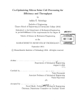 Co-Optimizing Silicon Solar Cell Processing for Efficiency and Throughput by Ashley E. Morishige Bachelor of Engineering Thayer School of Engineering at Dartmouth College (2011) Submitted to the Department of Mechanical Engineering in partial fulfillment of the requirements for the degree of AM4r)VF IMASSACHUSETTS INSTWE OF TECHNOLOGY Master of Science in Mechanical Engineering at the NOV 12 2013 MASSACHUSETTS INSTITUTE OF TECHNOLOGY LIBRARIES September 2013 @ Massachusetts Institute of Technology 2013. All rights reserved. A u th or .................................. .. ........ Department of Mechanical ngineering August 9, 2013 Certified by........... Tonio Buonassisi Associate Professor of Mechanical Engineering Thesis Supervisor A ccepted by ...................... David Hardt, ProfessoW'f'oi'chanical Engineering Chairman, Department Committee on Graduate Theses Co-Optimizing Silicon Solar Cell Processing for Efficiency and Throughput by Ashley E. Morishige Submitted to the Department of Mechanical Engineering on August 9, 2013, in partial fulfillment of the requirements for the degree of Master of Science in Mechanical Engineering Abstract Crystalline silicon solar cells are a proven renewable energy technology, but they have yet to reach low costs commensurate with subsidy-free, grid-scale adoption. To achieve the widespread adoption of photovoltaics, the cost per unit of electricity must be reduced by increasing solar cell efficiency. Parts per trillion concentrations of iron impurities in the silicon material can severely limit solar cell efficiency. Iron can be found in both precipitated and point defect form in silicon. Both forms are detrimental to final solar cell efficiency, but their negative impact can be mitigated during solar cell processing. In a standard solar cell process, the phosphorus diffusion step is the key opportunity to redistribute iron impurities because because it is the step with the largest thermal budget. Phosphorus diffusion process optimization for solar cell material so far typically consists of one or more isothermal steps followed by a cooling step. Iron silicide precipitates can be dissolved at high temperatures, whereas at lower temperatures, interstitially dissolved iron is driven to the phosphorus-rich layer. Previous optimizations typically maximize minority carrier lifetime without constraining process time and device parameters. This thesis explores a novel phosphorus diffusion process in which there are no isothermal steps. The goal of this work is to demonstrate simultaneous maximization of minority-carrier lifetime, while maintaining high process throughput and steady emitter sheet resistance. Predictive simulation, electrical characterization techniques, and synchrotron-based X-ray fluorescence were combined to compare this new processing approach to standard solar cell processing. This continuously ramped temperature processing may be a promising approach for maximizing solar cell performance, maintaining reasonable manufacturing rates, and achieving a target sheet resistance. Thesis Supervisor: Tonio Buonassisi Title: Associate Professor of Mechanical Engineering 3 4 Acknowledgements A number of people have supported me personally and professionally during the past two years. I want to thank my advisor, Professor Tonio Buonassisi, for the opportunity to do research in such an exciting and relevant field and for his enthusiasm and guidance along the way. Thanks especially to Jasmin Hofstetter and David Fenning for introducing me the numerous experimental techniques, simulations, and calculations that enable our research. David Berney Needleman and Mariela Castillo have provided critical support as lab research scientists. Thank you to Barry Lai for his expertise and assistance during synchrotron runs. Thank you to the enthusiastic, knowledgable, and friendly postdocs and graduate students in the PVLab, especially Austin Akey, Rafael Jaramillo, Christie Simmons, Joe Sullivan, Doug Powell, Sergio Castellanos, David Berney Needleman, Rupak Chakraborty, and Riley Brandt for their encouragement, assistance, and fruitful conversations. This research was made possible by funding from the U.S. Department of Defense's National Defense Science and Engineering Graduate Fellowship, the MIT School of Engineering SMA2 Fellowship, the National Science Foundation, and the U.S. Department of Energy. Many thanks to Kari Jo, Janie, and Thea for keeping grounded and to my friends and family for their love and support all along the journey. Finally, thank you, Kellie. 5 This page intentionally left blank 6 Contents A bstract . . . . . . . . . . . . .. . . . . . . .. . . ... . . . . . . . . . . 3 Acknowledgem ents . . . . . . . . . . . . . . . . . . . . . . . . . . . . . . . . . 5 List of Figures 9 . . . . . . . . . . . . . . . . . . . . . . . . . . . . . . . . . . . List of Tables . . . . . . . . . . . . . . . . . . . . . . . . . . . . . . . . . . . . 11 1 Introduction . . . . . . . . . . . . . . . . . . . . . . . . . . . . . . . . . . . 13 2 Crystalline Silicon Photovoltaics Theory and Background . . . . . . . . . . 17 2.1 Effect of Iron Impurities on Crystalline Silicon Solar Cell Efficiency 17 2.2 Mitigating the Negative Impact of Iron During the Solar Cell Fabrication Process ........ 3 4 . ................................ 2.3 Phosphorus Diffusion Gettering Mechanisms . . . . . . . . . . . . . . 2.4 Review of Approaches to Optimizing the Phosphorus Diffusion Time- 20 21 Temperature Profile for Gettering of Iron . . . . . . . . . . . . . . . . 25 Impurity-to-Efficiency Simulator . . . . . . . . . . . . . . . . . . . . . . . . 27 3.1 Solar Cell Process Design Principles from 12E . . . . . . . . . . . . . 29 3.2 Adding a Sheet Resistance Calculation . . . . . . . . . . . . . . . . . 29 Simulations of Standard and Continuously Ramping Phosphorus Diffusion Time-Temperture Profiles . . . . . . . . . . . . . . . . . . . . . . . . . . . 31 4.1 31 Defining the Tim