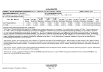 UNCLASSIFIED Exhibit R-2, RDT&E Budget Item Justification: PB 2011 Operational Test and Evaluation, Defense APPROPRIATION/BUDGET ACTIVITY 0460: Operational Test and Evaluation, Defense BA 6: RDT&E Management Support COST ($ in Millions) FY 2009 Actual DATE: February 2010 R-1 ITEM NOMENCLATURE PE 0605131OTE: Live Fire Test and Evaluation FY 2010 Estimate FY 2011 Base Estimate FY 2011 OCO Estimate FY 2011 Total Estimate FY 2012 Estimate FY 2013 Estimate FY 2014 Estimate FY 2015 Estimate Cost To Complete Total Cost Total Program Element 11.541 12.234 12.899 0.000 12.899 13.661 13.996 14.339 14.691 Continuing Continuing 2: LFT&E 11.541 12.234 12.899 0.000 12.899 13.661 13.996 14.339 14.691 Continuing Continuing A. Mission Description and Budget Item Justification This Program Element (PE) directly supports the Congressional statutory requirements for oversight of Live Fire Test and Evaluation (LFT&E). The primary objective of LFT&E is to assure that the vulnerability and survivability of Department of Defense (DoD) crew-carrying platforms and the lethality of our conventional munitions are known and acceptable before entering full-rate production. LFT&E encompasses realistic tests involving actual United States (U.S.) and foreign threat hardware or, if not available, acceptable surrogate threat hardware. The objective is to identify and correct design deficiencies early in the development process. A completed LFT&E program and test report is required before programs proceed beyond low-rate initial production (BLRIP). LFT&E also includes realistic modeling and simulation (M&S) to examine survivability and lethality attributes not assessed during testing. The LFT&E program is essential, especially in view of the escalating costs of technologically sophisticated weapons systems. This program element also supports DoD’s Joint Live Fire (JLF) Program and other LFT&E related initiatives. JLF was begun in 1984 under an Office of the Secretary of Defense (OSD) charter to test fielded front-line combat aircraft and armor systems for their vulnerabilities as well as fielded weapons, both U.S. and foreign, for their lethalities against their respective targets. Funds are also used to support other initiatives related to quick reaction requests from theater and other areas of personnel survivability. This program element includes funds to obtain Federally Funded Research and Development Center (FFRDC) expertise in performing analyses in support of described tasks, as well as travel funds to carry out the LFT&E program. This program element is budgeted in Budget Activity 6, RDT&E Management Support, to support LFT&E management activities for the oversight of RDT&E of new systems, as well as RDT&E of fielded systems. UNCLASSIFIED Operational Test and Evaluation, Defense R-1 Line Item #2 Page 1 of 7 UNCLASSIFIED Exhibit R-2, RDT&E Budget Item Justification: PB 2011 Operational Test and Evaluation, Defense APPROPRIATION/BUDGET ACTIVITY 0460: Operational Test and Evaluation, Defense BA 6: RDT&E Management Support B. Program Change Summary ($ in Millions) Previous President's Budget Current President's Budget Total Adjustments • Congressional General Reductions • Congressional Directed Reductions • Congressional Rescissions • Congressional Adds • Congressional Directed Transfers • Reprogrammings • SBIR/STTR Transfer • Program Adjustment R-1 ITEM NOMENCLATURE PE 0605131OTE: Live Fire Test and Evaluation FY 2009 11.541 11.541 0.000 0.000 0.000 0.000 0.000 FY 2010 12.285 12.234 -0.051 -0.051 0.000 0.000 0.000 0.000 0.000 0.000 0.000 UNCLASSIFIED Operational Test and Evaluation, Defense DATE: February 2010 R-1 Line Item #2 Page 2 of 7 FY 2011 Base 0.000 12.899 12.899 FY 2011 OCO 0.000 0.000 0.000 FY 2011 Total 0.000 12.899 12.899 12.899 0.000 12.899 UNCLASSIFIED Exhibit R-2A, RDT&E Project Justification: PB 2011 Operational Test and Evaluation, Defense APPROPRIATION/BUDGET ACTIVITY 0460: Operational Test and Evaluation, Defense BA 6: RDT&E Management Support COST ($ in Millions) 2: LFT&E FY 2009 Actual 11.541 DATE: February 2010 R-1 ITEM NOMENCLATURE PE 0605131OTE: Live Fire Test and Evaluation PROJECT 2: LFT&E FY 2010 Estimate FY 2011 Base Estimate FY 2011 OCO Estimate FY 2011 Total Estimate FY 2012 Estimate FY 2013 Estimate FY 2014 Estimate 12.234 12.899 0.000 12.899 13.661 13.996 14.339 FY 2015 Estimate Cost To Complete Total Cost 14.691 Continuing Continuing Quantity of RDT&E Articles A. Mission Description and Budget Item Justification This Program Element (PE) directly supports the Congressional statutory requirements for oversight of Live Fire Test and Evaluation (LFT&E). The primary objective of LFT&E is to assure that the vulnerability and survivability of Department of Defense (DoD) crew-carrying platforms and the lethality of our conventional munitions are known and acceptable before entering full-rate production. LFT&E encompasses realistic tests involving actual United States (U.S.) and foreign threat hardware or, if not available, acceptable surrogate threat hardware. The objective is to identify and correct design deficiencies early in the development process. A completed LFT&E program and test report is required before programs proceed beyond low-rate initial production (BLRIP). LFT&E also includes realistic modeling and simulation (M&S) to examine survivability and lethality attributes not assessed during testing. The LFT&E program is essential, especially in view of the escalating costs of technologically sophisticated weapons systems. This program element also supports DoD’s Joint Live Fire (JLF) Program and other LFT&E related initiatives. JLF was begun in 1984 under an Office of the Secretary of Defense (OSD) charter to test fielded front-line combat aircraft and armor systems for their vulnerabilities as well as fielded weapons, both U.S. and foreign, for their lethalities against their respective targets. Funds are also used to support other initiatives related to quick 
