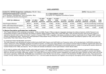 UNCLASSIFIED Exhibit R-2, RDT&E Budget Item Justification: PB 2011 Navy DATE: February 2010 APPROPRIATION/BUDGET ACTIVITY 1319: Research, Development, Test & Evaluation, Navy BA 7: Operational Systems Development COST ($ in Millions) FY 2009 Actual R-1 ITEM NOMENCLATURE PE 0204311N: Integrated Surveillance System FY 2010 Estimate FY 2011 Base Estimate FY 2011 OCO Estimate FY 2011 Total Estimate FY 2012 Estimate FY 2013 Estimate FY 2014 Estimate FY 2015 Estimate Cost To Complete Total Cost Total Program Element 28.677 26.225 23.464 0.000 23.464 23.938 24.318 24.864 25.373 Continuing Continuing 0766: IUSS Detect/Classif System 20.499 24.632 23.464 0.000 23.464 23.938 24.318 24.864 25.373 Continuing Continuing 8.178 1.593 0.000 0.000 0.000 0.000 0.000 0.000 9999: Congressional Adds 0.000 0.000 20.082 A. Mission Description and Budget Item Justification This Program Element (PE) comprises two projects - 0766 and 9999. Project 0766 provides for Integrated Undersea Surveillance Systems (IUSS) Research and Development Projects under the Maritime Surveillance Systems (MSS) Program Office (PEO LMW PMS 485). IUSS provides the Navy with its primary means of submarine detection both nuclear and diesel. A portion of project 0766 (FSS) is classified, with details available at a higher classification level. Project 9999 consists of three Congressional Adds: Autonomous Anti-Submarine Vertical Beam Array (FY09 and FY10), Distributed Maritime Surveillance System (FY09), and Low-Cost, Expendable, Fiber Optic Sensor Array (FY09). U) JUSTIFICATION FOR BUDGET ACTIVITY: The IUSS Research and Development project (0766) funds SURTASS Passive and SURTASS Low Frequency Active (LFA) developments. SURTASS provides the mobile, tactical arm of the Integrated Undersea Surveillance System, providing long range detection and cueing for tactical weapons platforms against both diesel and nuclear powered submarines. SURTASS LFA provides an active adjunct capability for IUSS passive and tactical sensors to assist in countering the quieter diesel and nuclear threats of the 1990s and beyond. The LFA tasks are directed at detection of slow quiet threats in harsh littoral waters. (U) In order to continue with reductions in life cycle costs and continue with system-wide consolidation, a short-term goal is to develop a common IUSS processor based on NAVSEA's Acoustic Rapid COTS Insertion (ARCI) program. The IUSS Integrated Common Processor (ICP) will have the capability to process and display data from all fixed and mobile underwater systems. The IUSS ICP will be used for all new system installations and replace the legacy systems as they reach end of life and require upgrading. Additionally, SURTASS has consolidated on the TB-29A Twin-line array, a variant of the Submarine TB-29A Long line array. This reduced the number of array variants employed by SURTASS from 3 to 1, and will enable development and logistics cost savings by leveraging off the submarine TB-29A program. UNCLASSIFIED Navy R-1 Line Item #171 Page 1 of 14 UNCLASSIFIED Exhibit R-2, RDT&E Budget Item Justification: PB 2011 Navy APPROPRIATION/BUDGET ACTIVITY 1319: Research, Development, Test & Evaluation, Navy BA 7: Operational Systems Development B. Program Change Summary ($ in Millions) Previous President's Budget Current President's Budget Total Adjustments • Congressional General Reductions • Congressional Directed Reductions • Congressional Rescissions • Congressional Adds • Congressional Directed Transfers • Reprogrammings • SBIR/STTR Transfer • Program Adjustments DATE: February 2010 R-1 ITEM NOMENCLATURE PE 0204311N: Integrated Surveillance System FY 2009 28.677 28.677 0.000 0.000 0.000 0.000 0.000 FY 2010 24.835 26.225 1.390 -0.110 0.000 -0.100 1.600 0.000 0.000 0.000 0.000 FY 2011 Base 0.000 23.464 23.464 FY 2011 OCO 0.000 0.000 0.000 FY 2011 Total 0.000 23.464 23.464 23.464 0.000 23.464 Congressional Add Details ($ in Millions, and Includes General Reductions) FY 2009 FY 2010 Project: 9999: Congressional Adds Congressional Add: AUTONOMOUS ANTI-SUB VERTICAL BEAN ARRAY 1.596 1.593 Congressional Add: DISTRIBUTED MARITIME SURVEILLANCE SYSTEM 1.596 0.000 Congressional Add: Low Cost, Expendable, Fiber Optic Sensor Array 4.986 0.000 Congressional Add Subtotals for Project: 9999 8.178 1.593 Congressional Add Totals for all Projects 8.178 1.593 Change Summary Explanation Technical: Not applicable. Schedule: Not applicable. FY11 from previous President's Budget is shown as zero because no FY11-15 data was presented in President's Budget 2010. UNCLASSIFIED Navy R-1 Line Item #171 Page 2 of 14 UNCLASSIFIED Exhibit R-2A, RDT&E Project Justification: PB 2011 Navy DATE: February 2010 APPROPRIATION/BUDGET ACTIVITY 1319: Research, Development, Test & Evaluation, Navy BA 7: Operational Systems Development COST ($ in Millions) 0766: IUSS Detect/Classif System Quantity of RDT&E Articles R-1 ITEM NOMENCLATURE PROJECT PE 0204311N: Integrated Surveillance System 0766: IUSS Detect/Classif System FY 2010 Estimate FY 2011 Base Estimate FY 2011 OCO Estimate FY 2011 Total Estimate FY 2012 Estimate FY 2013 Estimate FY 2014 Estimate 20.499 24.632 23.464 0.000 23.464 23.938 24.318 24.864 0 0 0 0 0 0 0 0 FY 2009 Actual FY 2015 Estimate Cost To Complete Total Cost 25.373 Continuing Continuing 0 A. Mission Description and Budget Item Justification (U) A. MISSION DESCRIPTION AND BUDGET ITEM JUSTIFICATION: A. (U) This project includes efforts for both FSS* and SURTASS. The SURTASS project comprises the mobile, tactical arm of the Integrated Undersea Surveillance System, providing long range detection and cueing for tactical weapons platforms against both diesel and nuclear powered submarines. SURTASS also provides the undersea surveillance necessary to support regional conflicts and sea-lane protection. SURTASS has experienced recent passive and active success against diesel submarines operating in shallow water. SURTASS is leveraging existing developments and reducing costs b